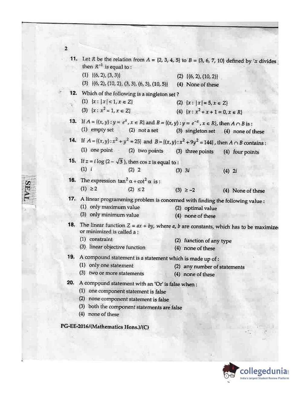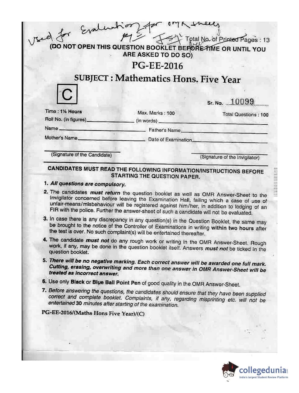 MDUCEE 2016 M.Sc. (Hons.) Mathematics 5-Years Integrated Set C Question paper with answer key pdf is available for download. The exam was successfully organized by Maharishi Dayanand University. The question paper comprised a total of 100 questions.
