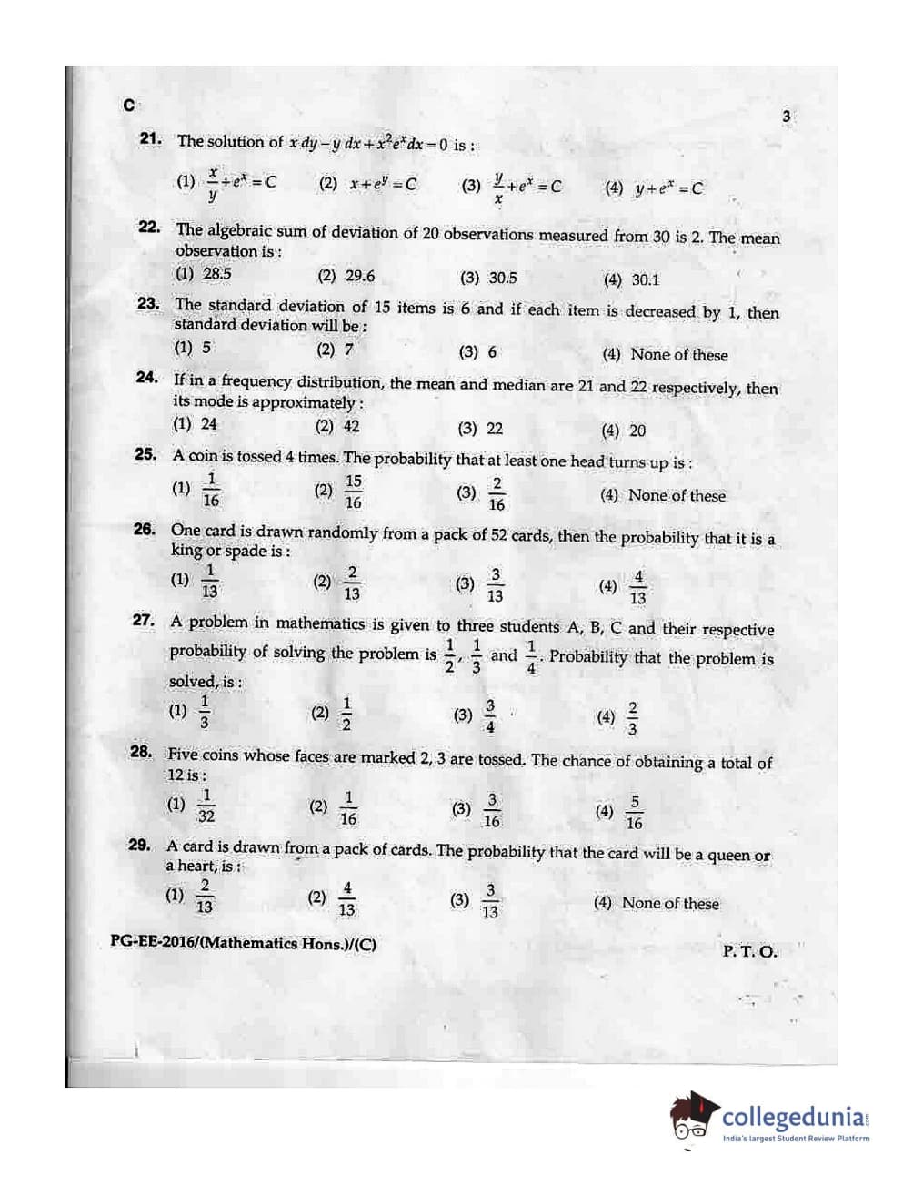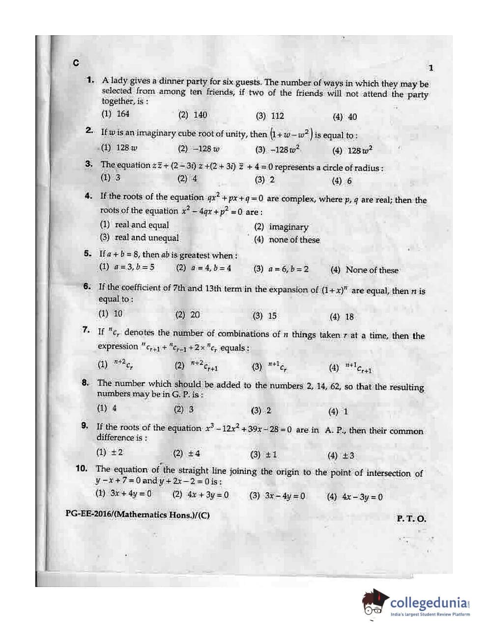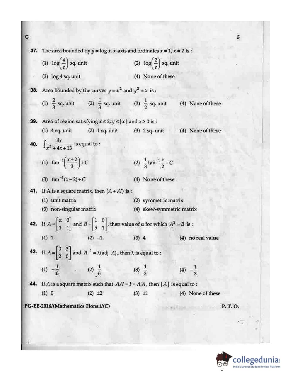 MDUCEE 2016 M.Sc. (Hons.) Mathematics 5-Years Integrated Set C Question Paper with Answer Key PDFs