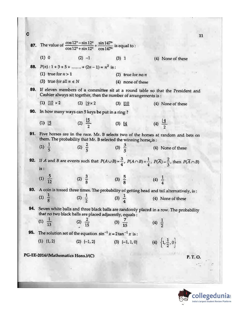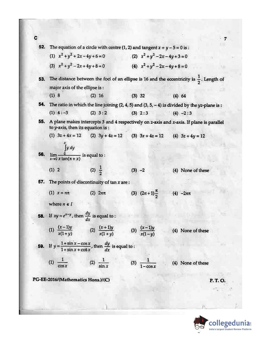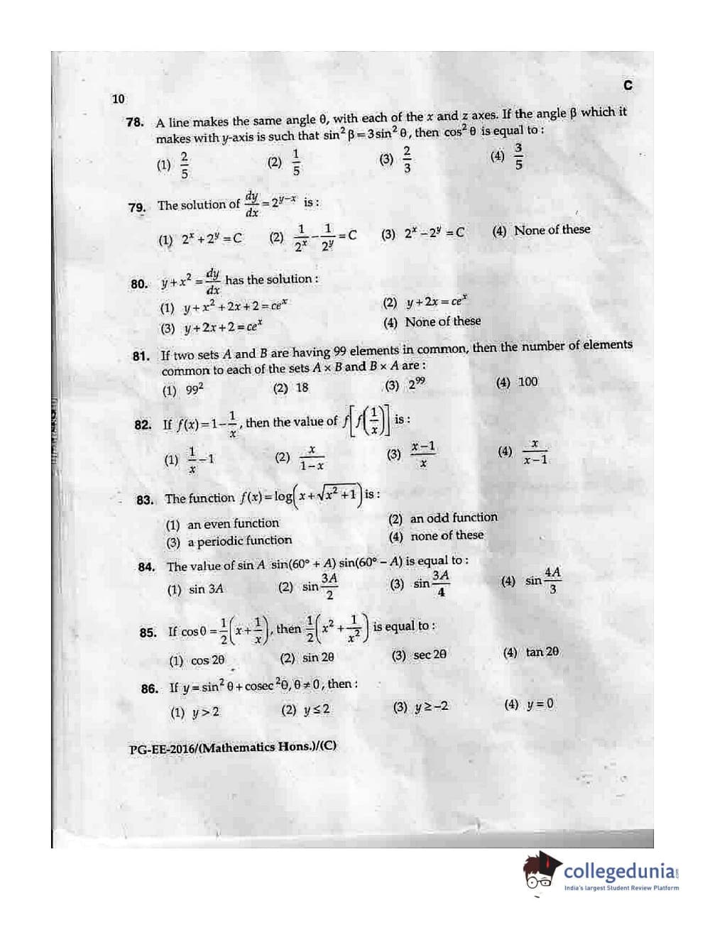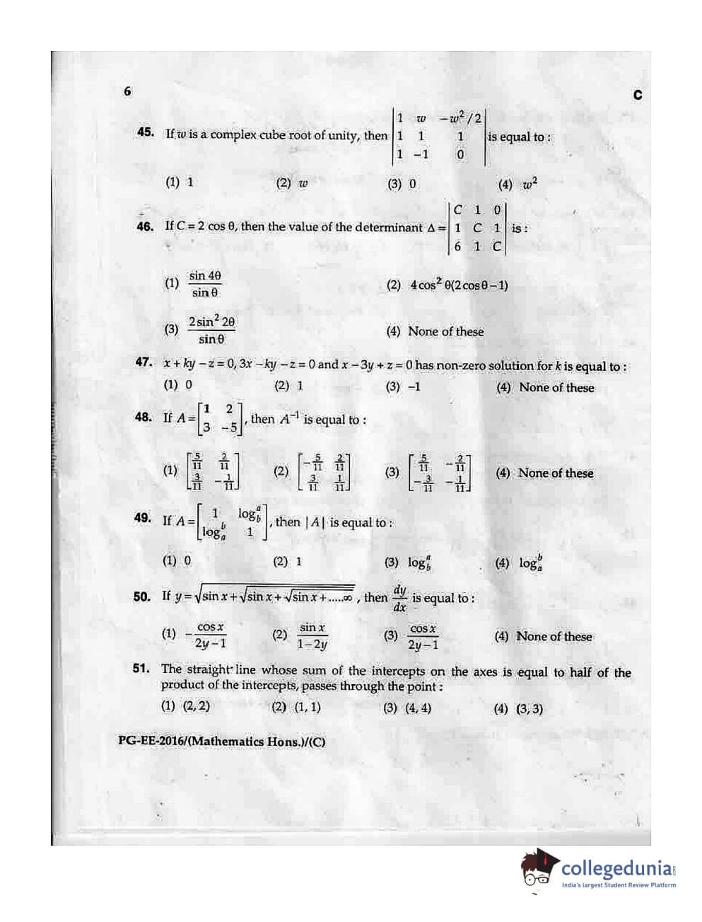 MDUCEE 2016 M.Sc. (Hons.) Mathematics 5-Years Integrated Set C Question Paper with Answer Key PDFs