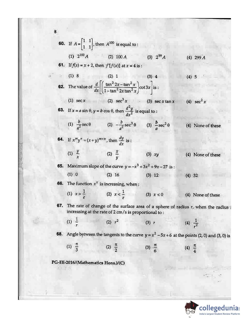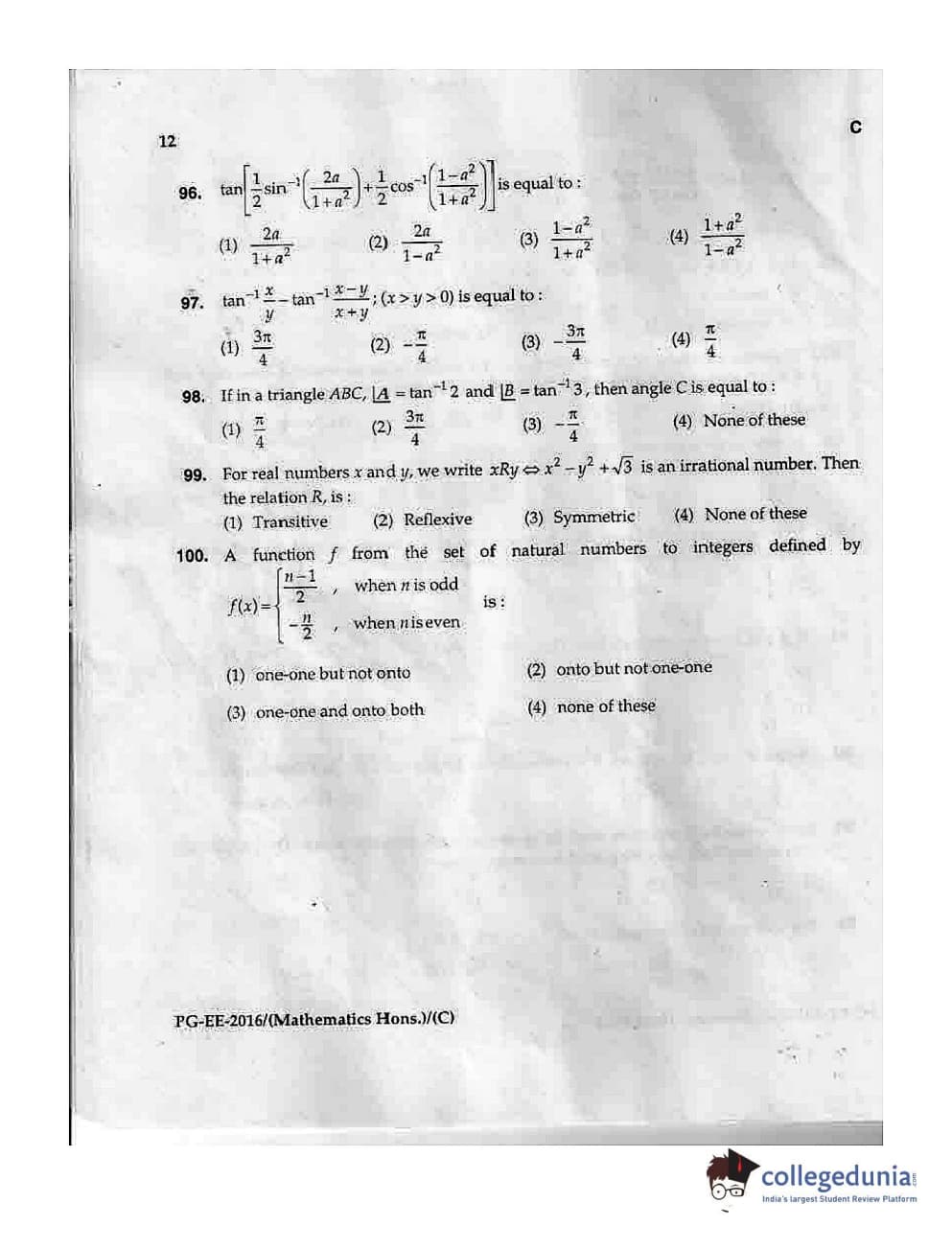 | MDUCEE 2016 M.Sc. (Hons.) Mathematics 5-Years Integrated Set C Question Paper PDF | MDUCEE 2016 M.Sc. (Hons.) Mathematics 5-Years Integrated Set C Answer Key PDF |