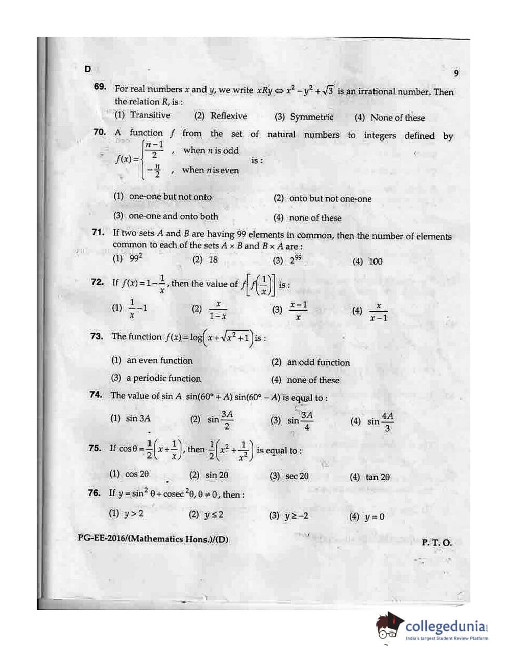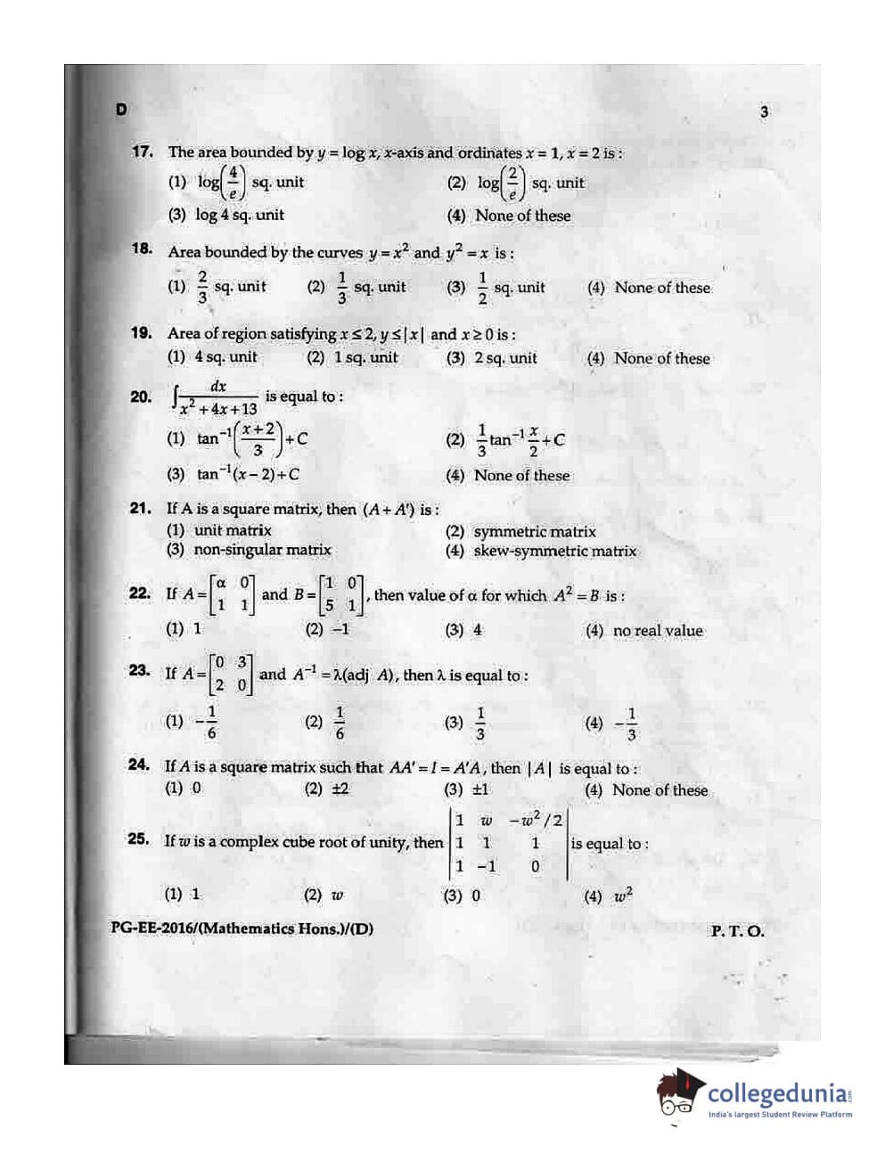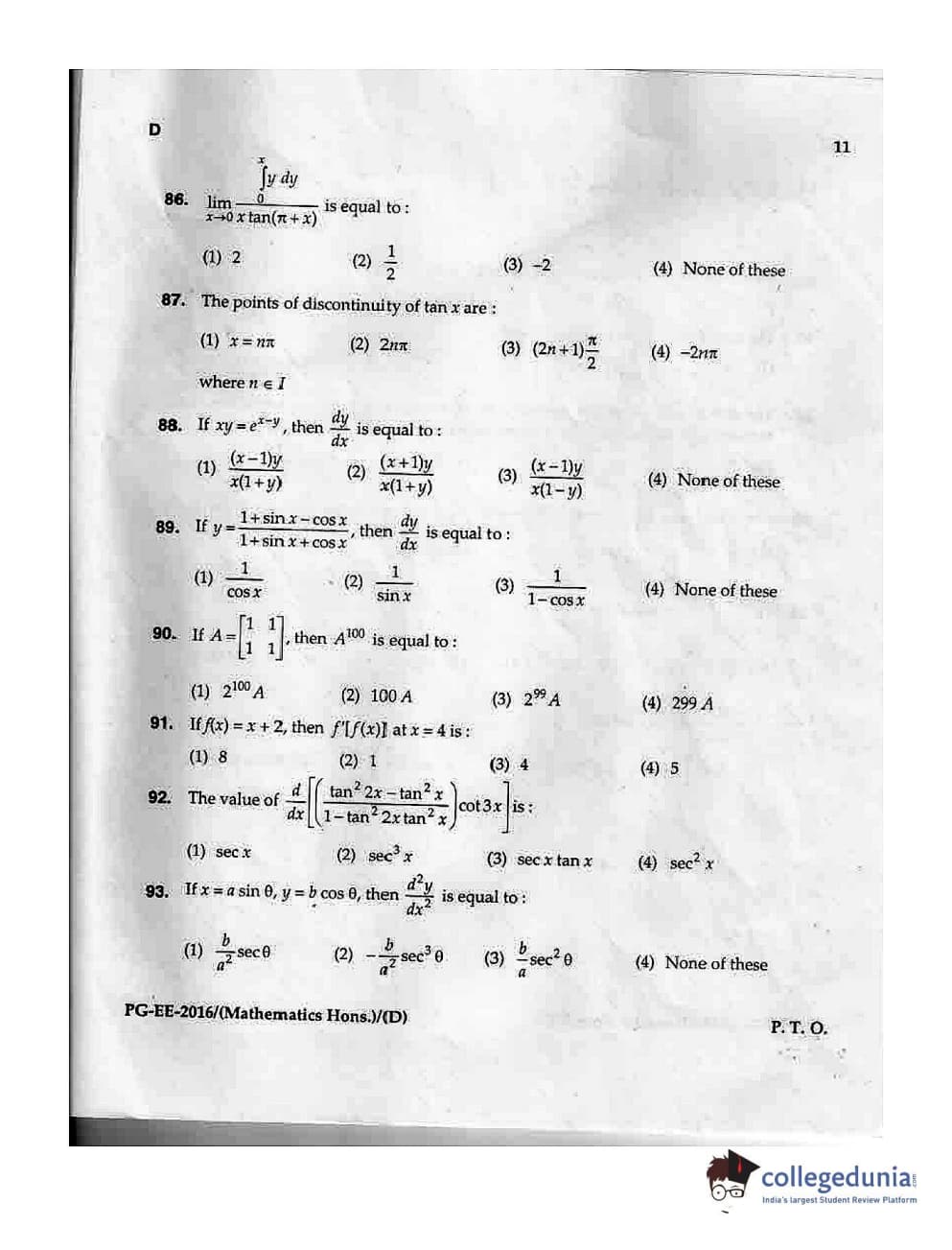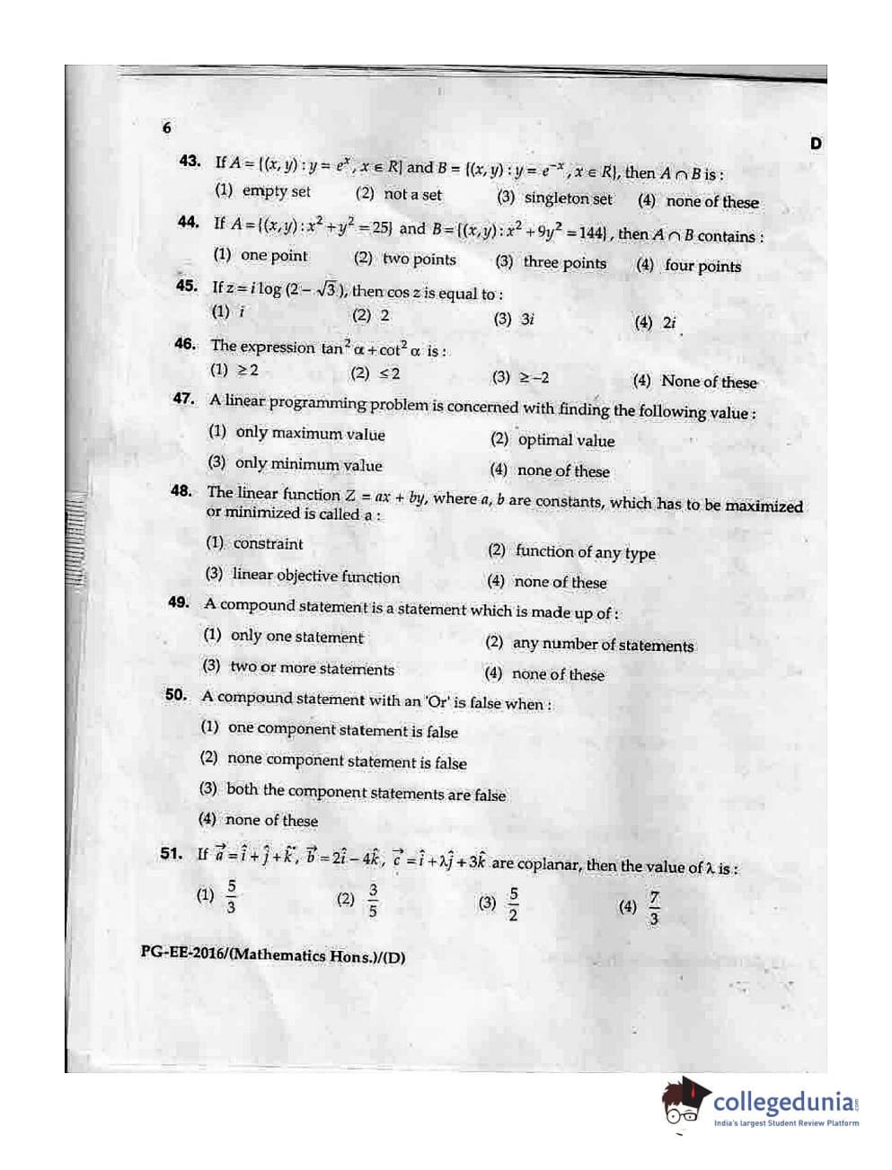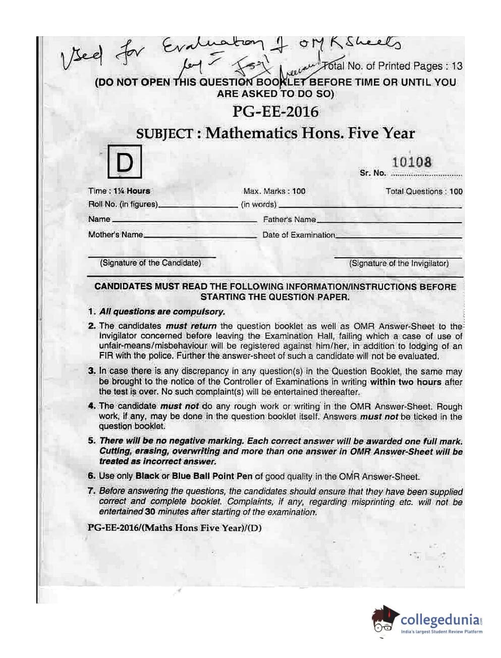 MDUCEE 2016 M.Sc. (Hons.) Mathematics 5-Years Integrated Set D Question paper with answer key pdf is available for download. The exam was successfully organized by Maharishi Dayanand University. The question paper comprised a total of 100 questions.