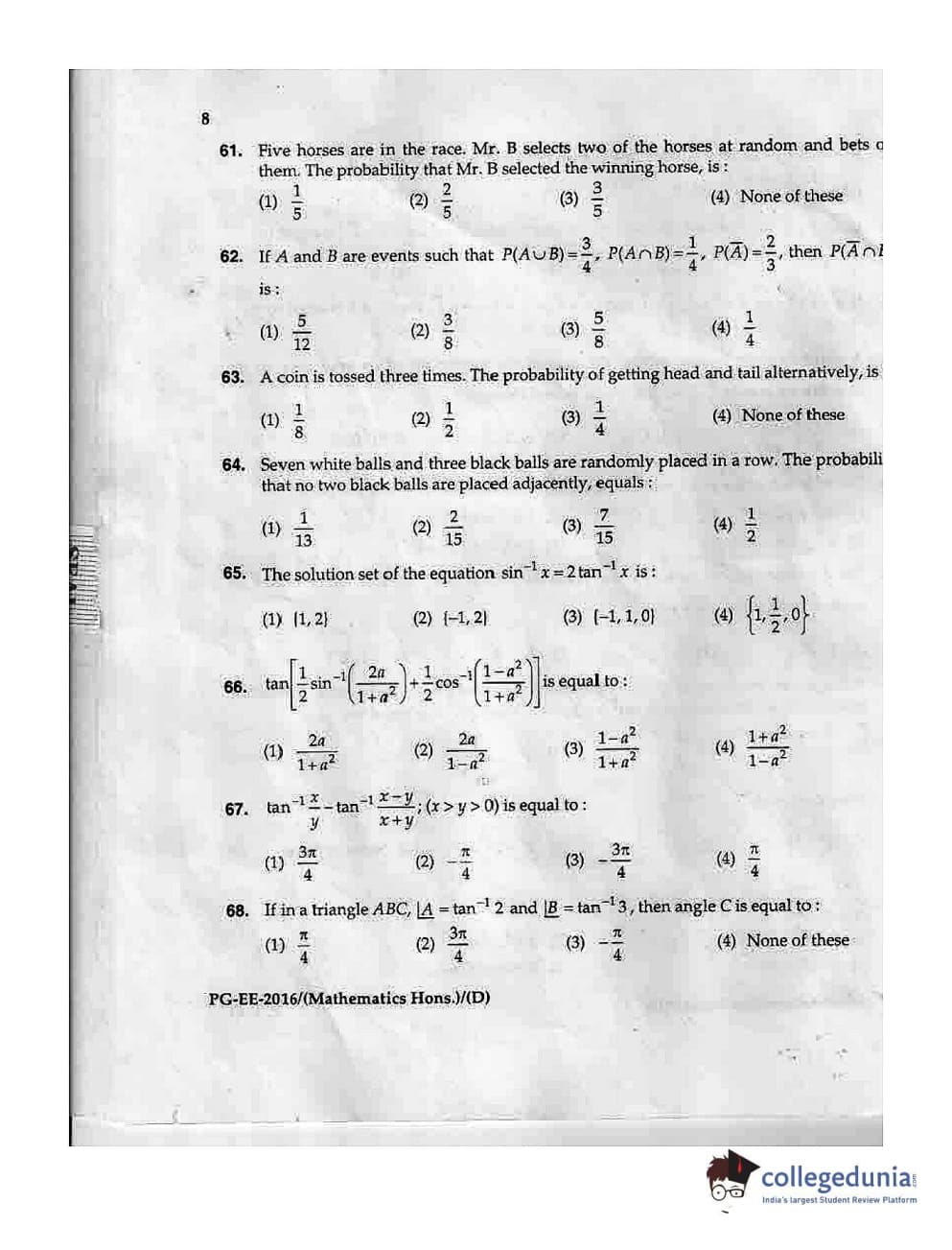 | MDUCEE 2016 M.Sc. (Hons.) Mathematics 5-Years Integrated Set D Question Paper PDF | MDUCEE 2016 M.Sc. (Hons.) Mathematics 5-Years Integrated Set D Answer Key PDF |