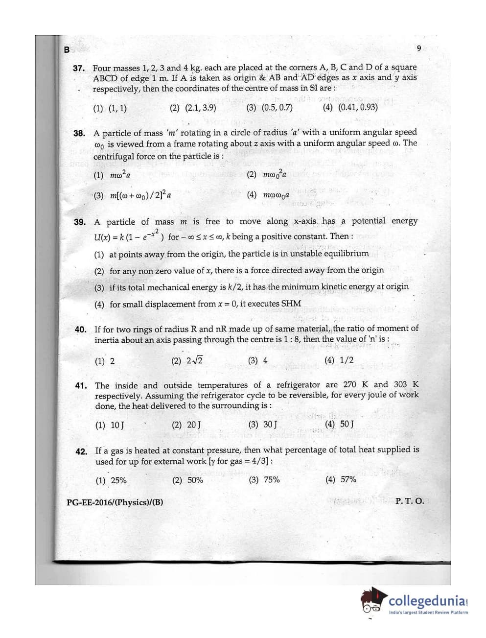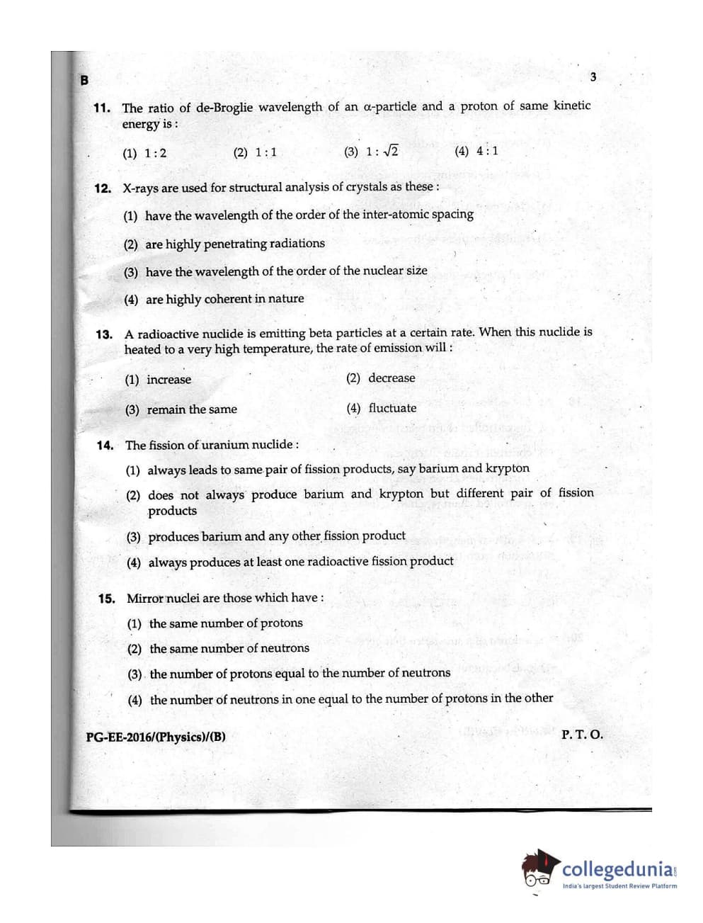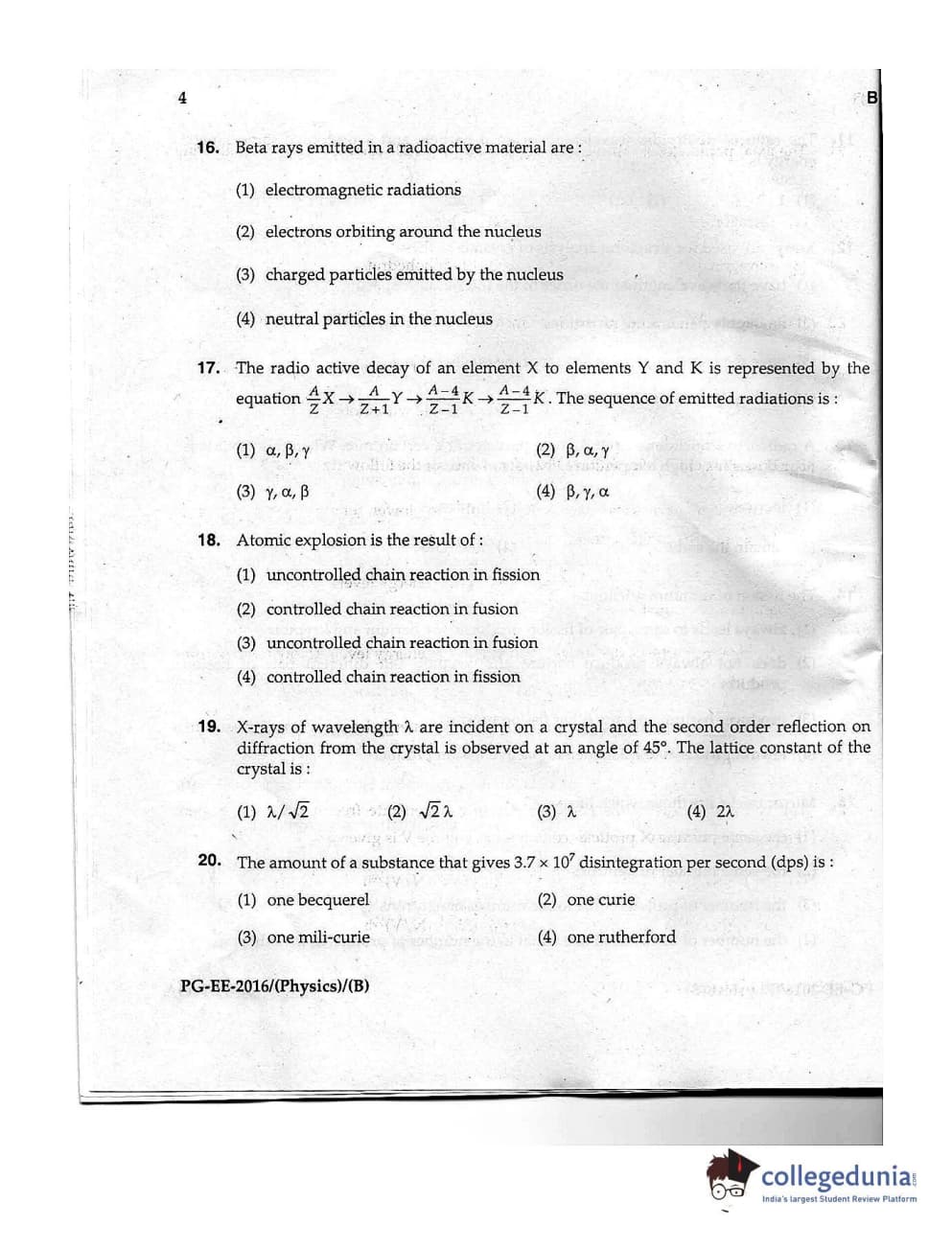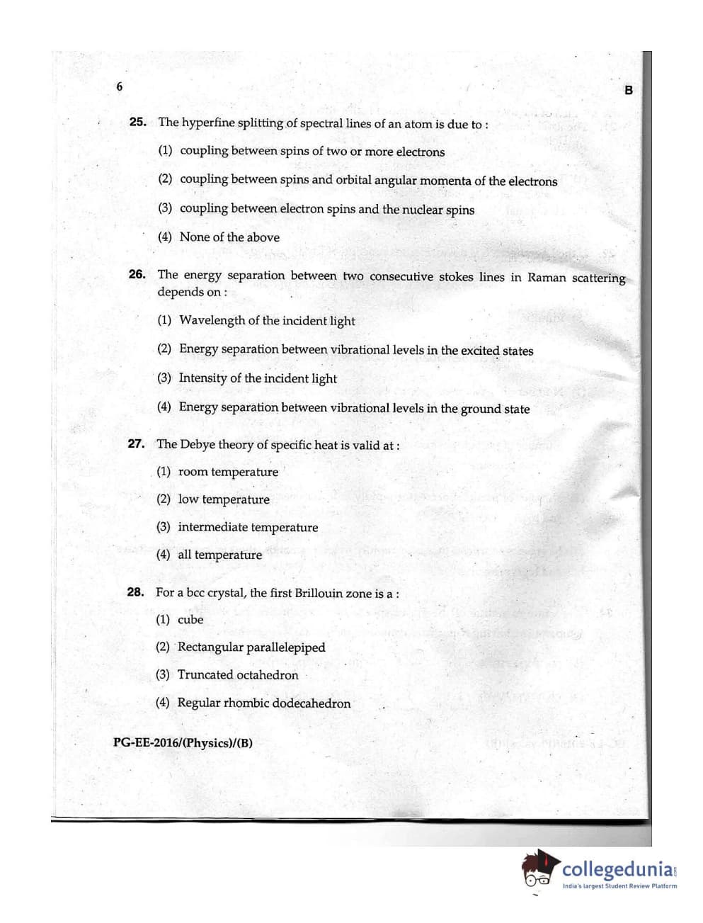 | MDUCEE 2016 M.Sc. (Physics) Set B Question Paper PDF | MDUCEE 2016 M.Sc. (Physics) Set B Answer Key PDF |