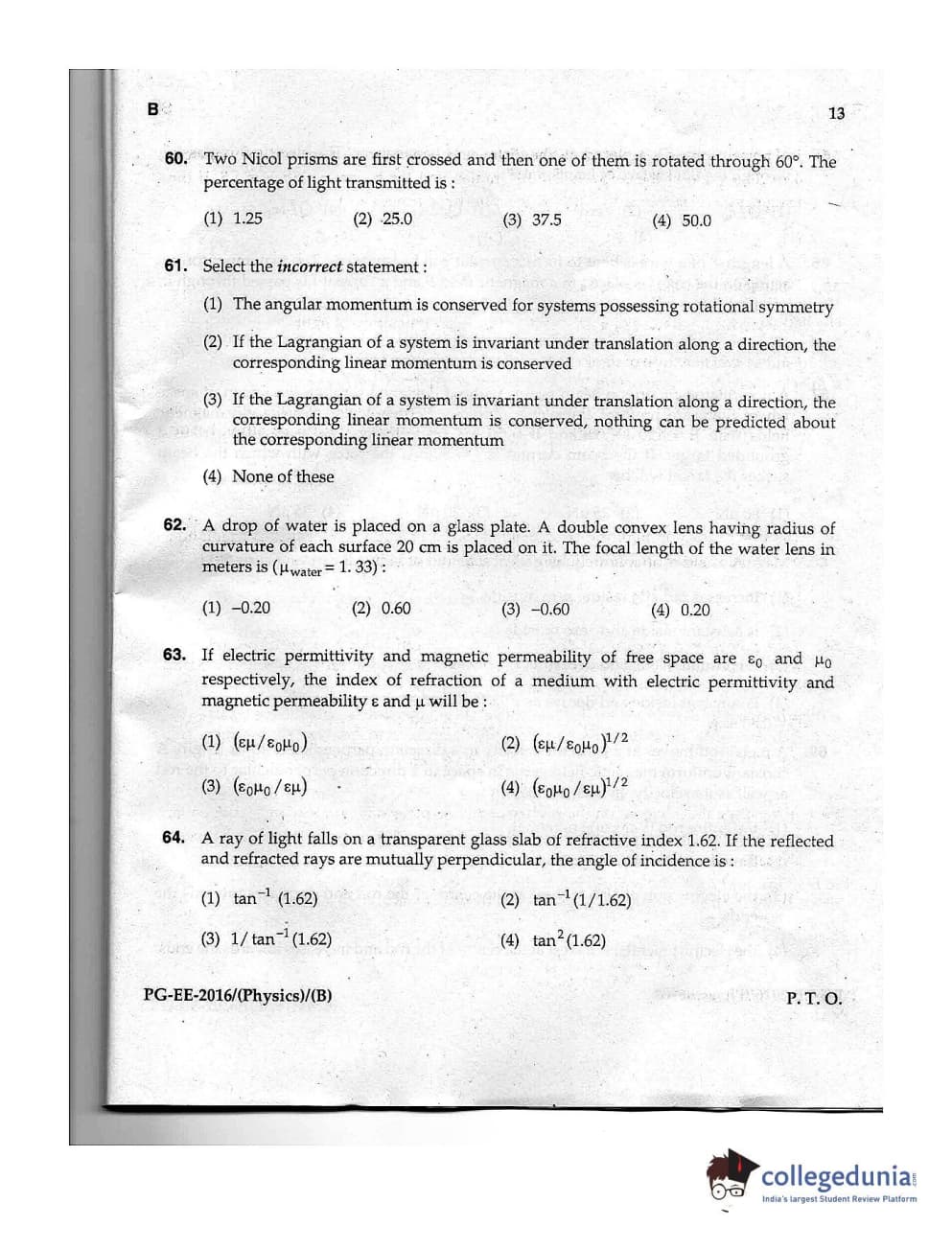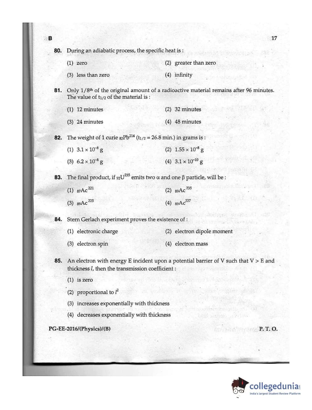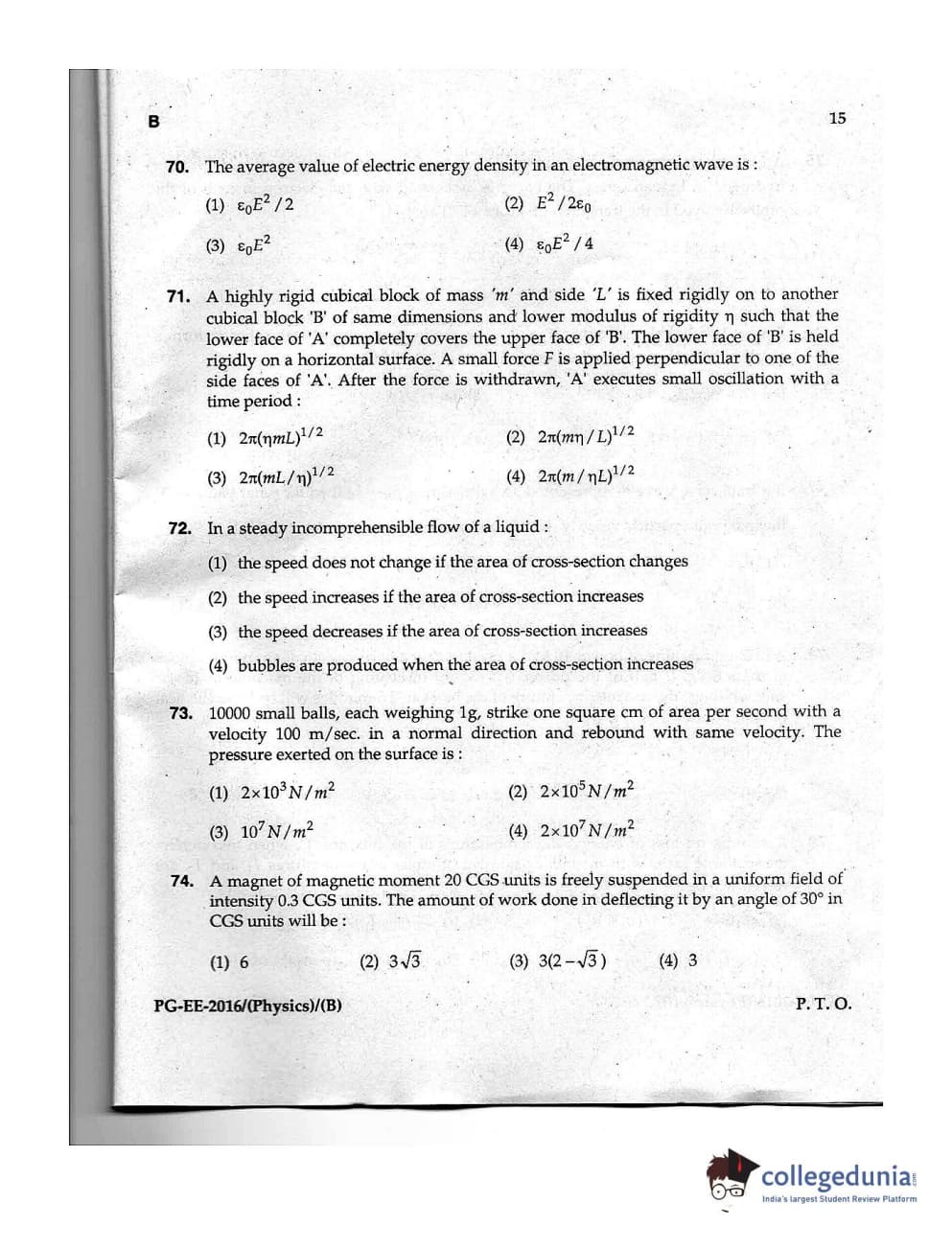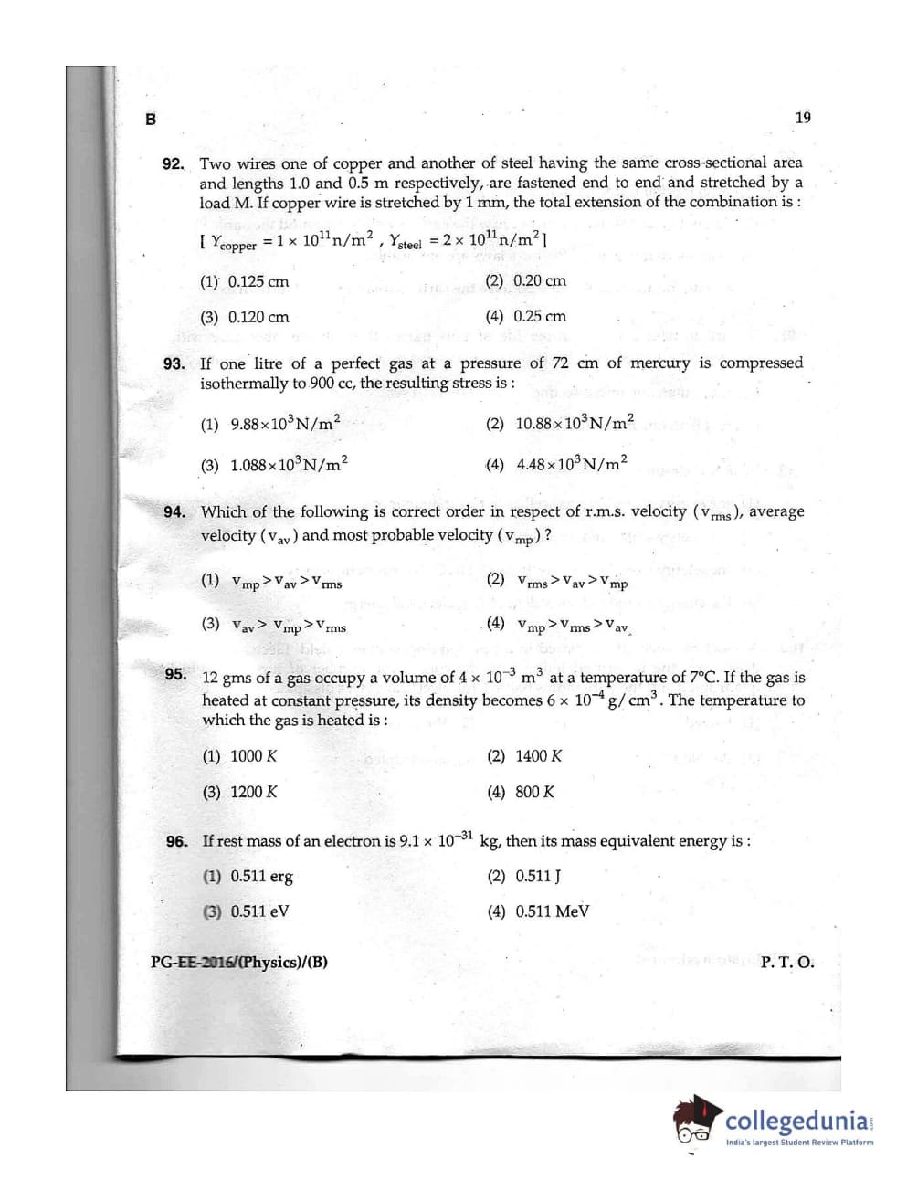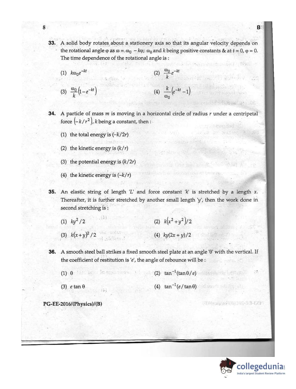 | MDUCEE 2016 M.Sc. (Physics) Set B Question Paper PDF | MDUCEE 2016 M.Sc. (Physics) Set B Answer Key PDF |