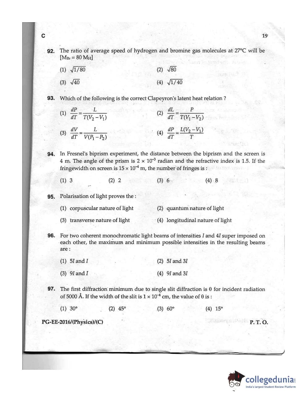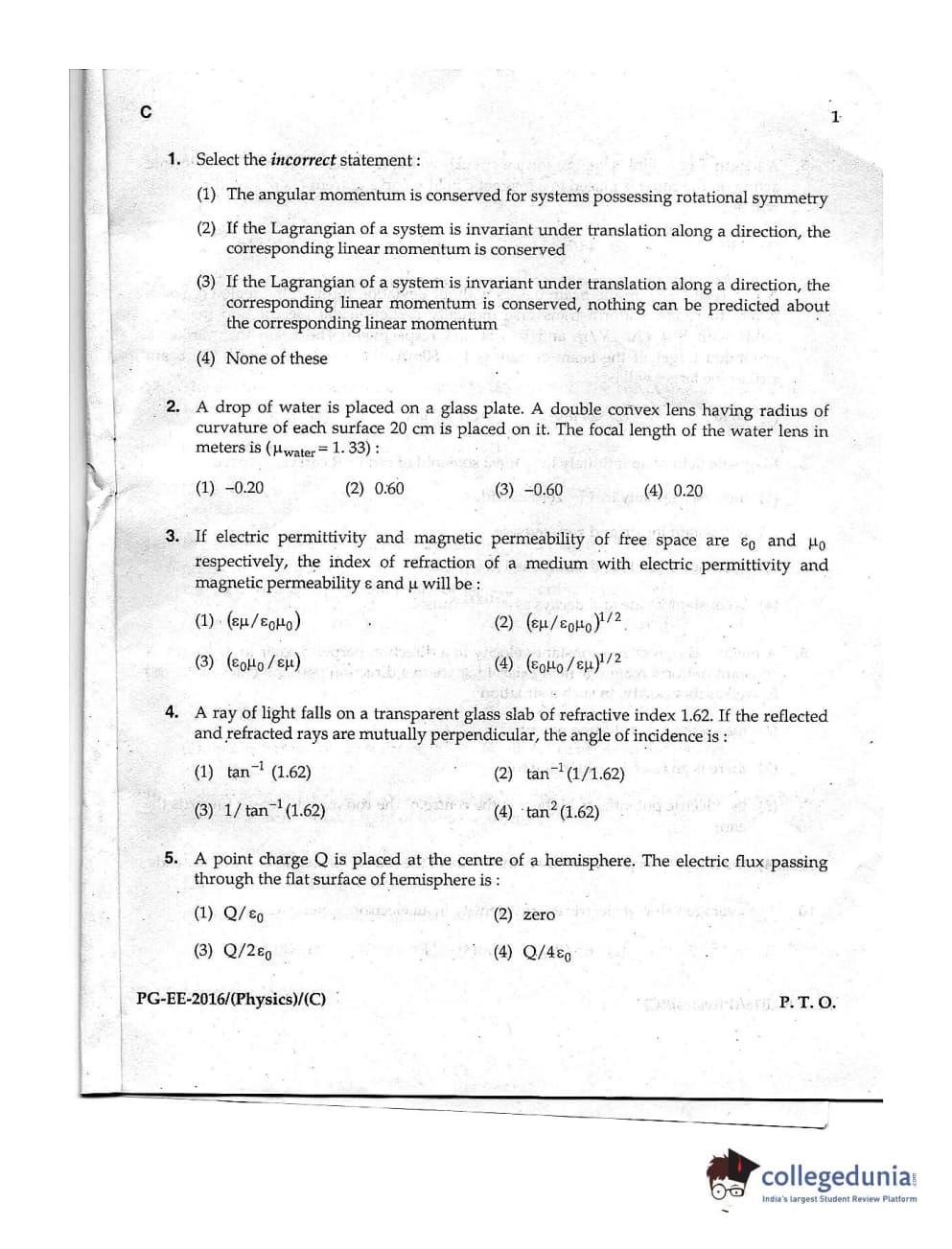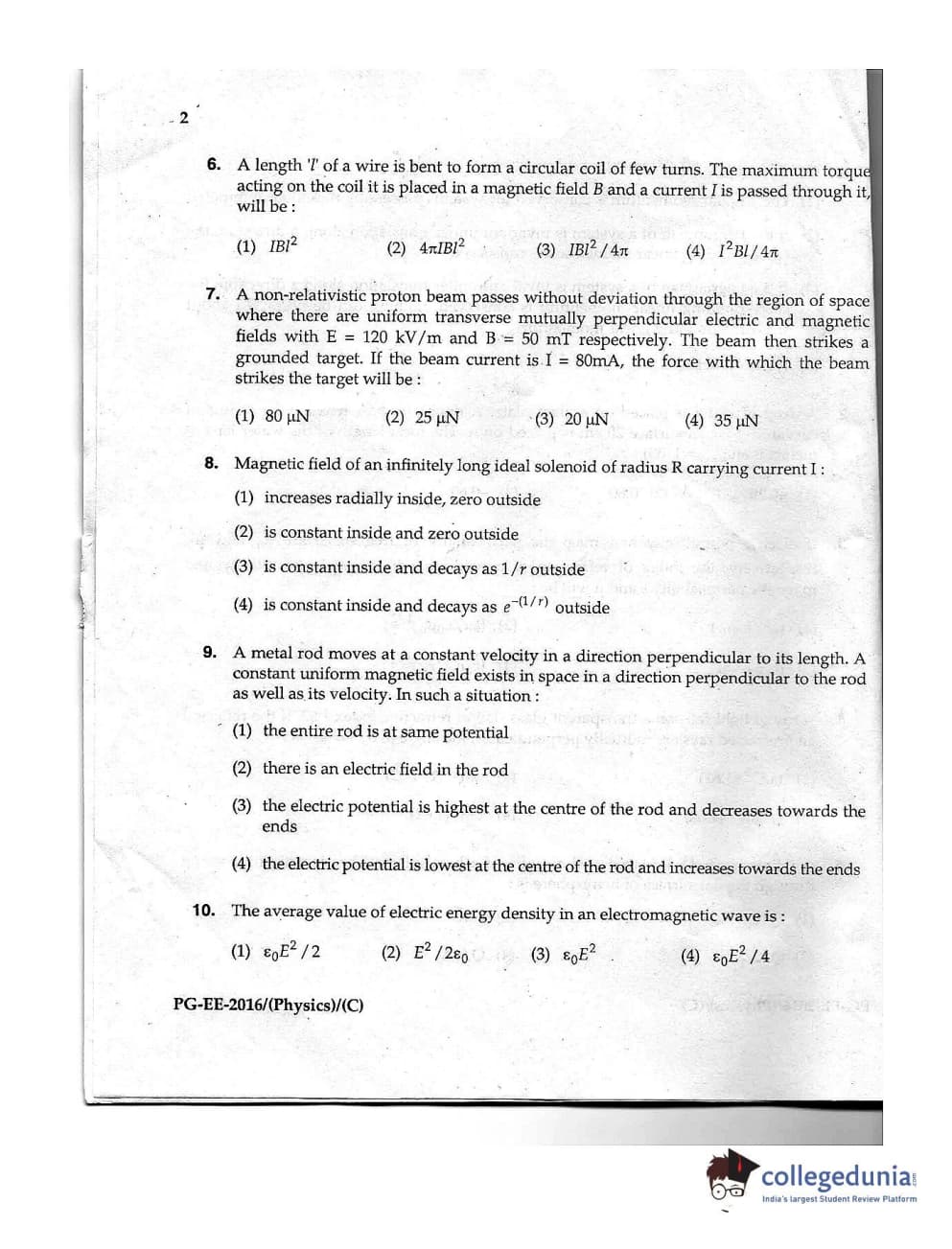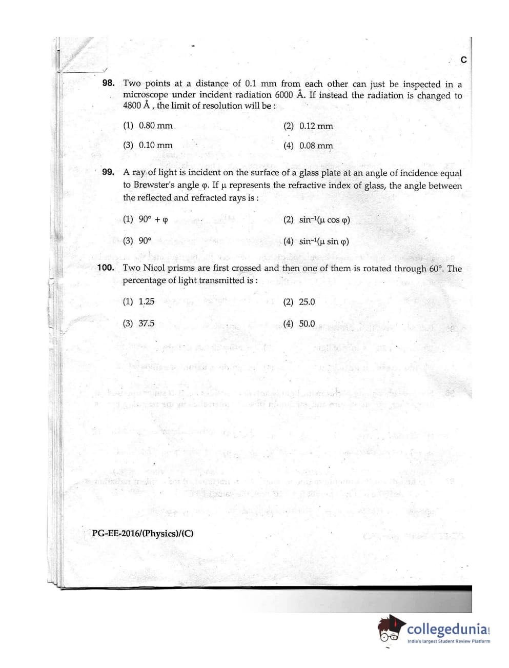 MDUCEE 2016 M.Sc. (Physics) Set C Question Paper with Answer Key PDFs