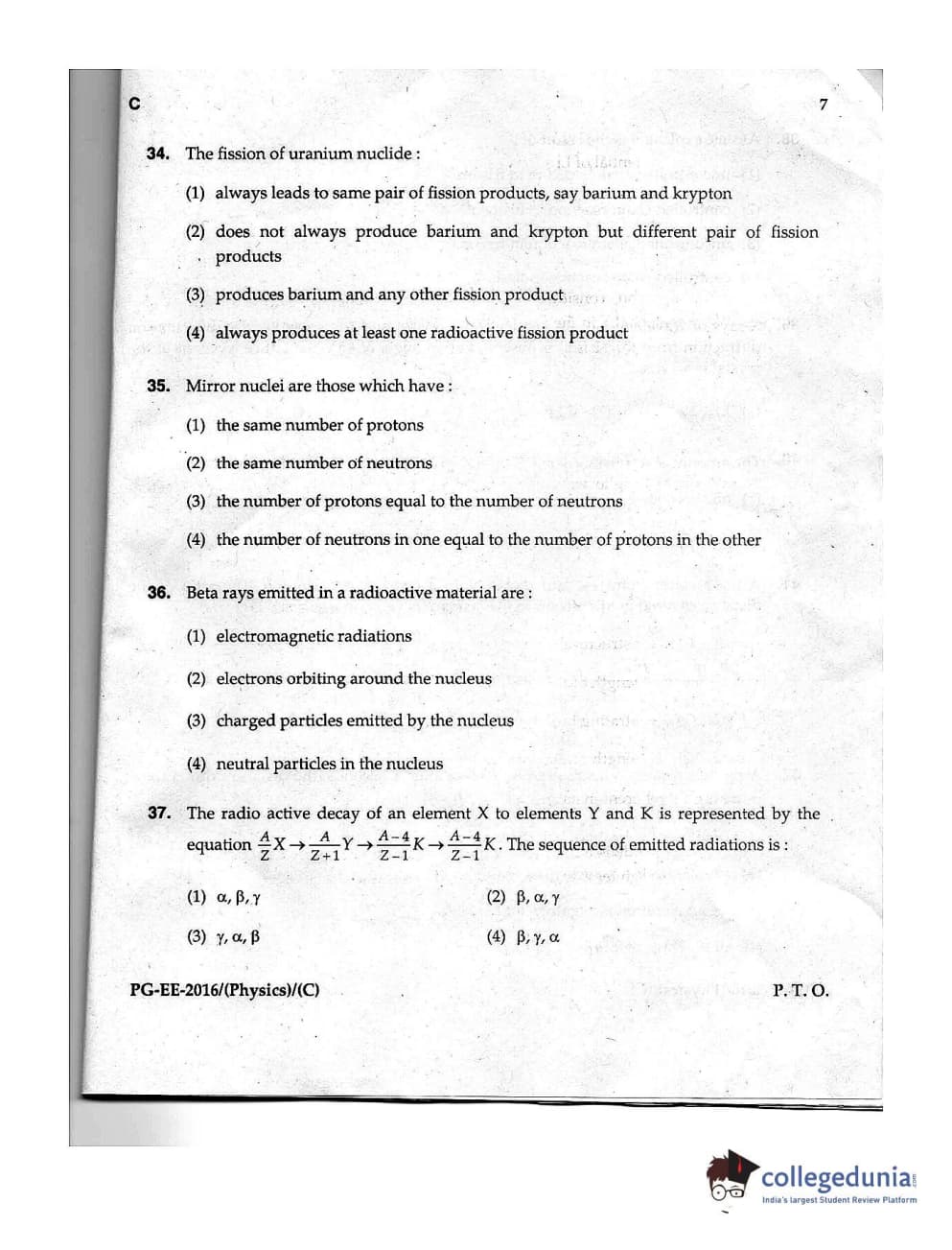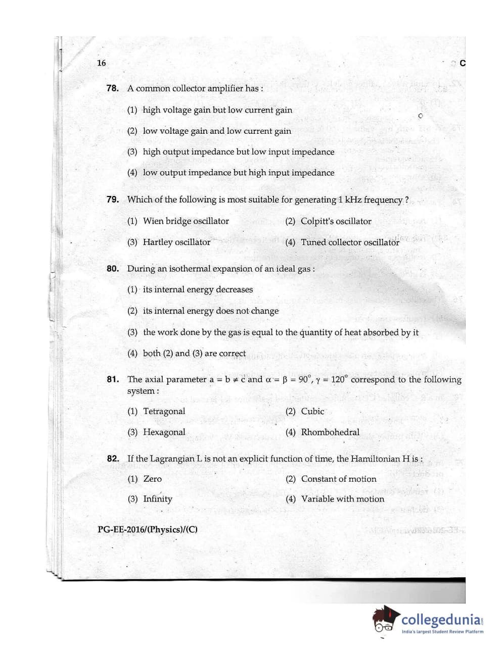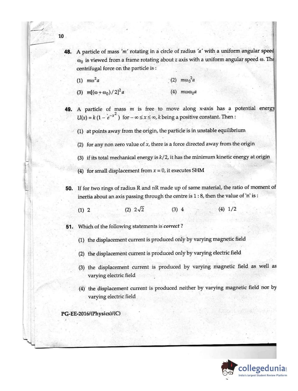 | MDUCEE 2016 M.Sc. (Physics) Set C Question Paper PDF | MDUCEE 2016 M.Sc. (Physics) Set C Answer Key PDF |