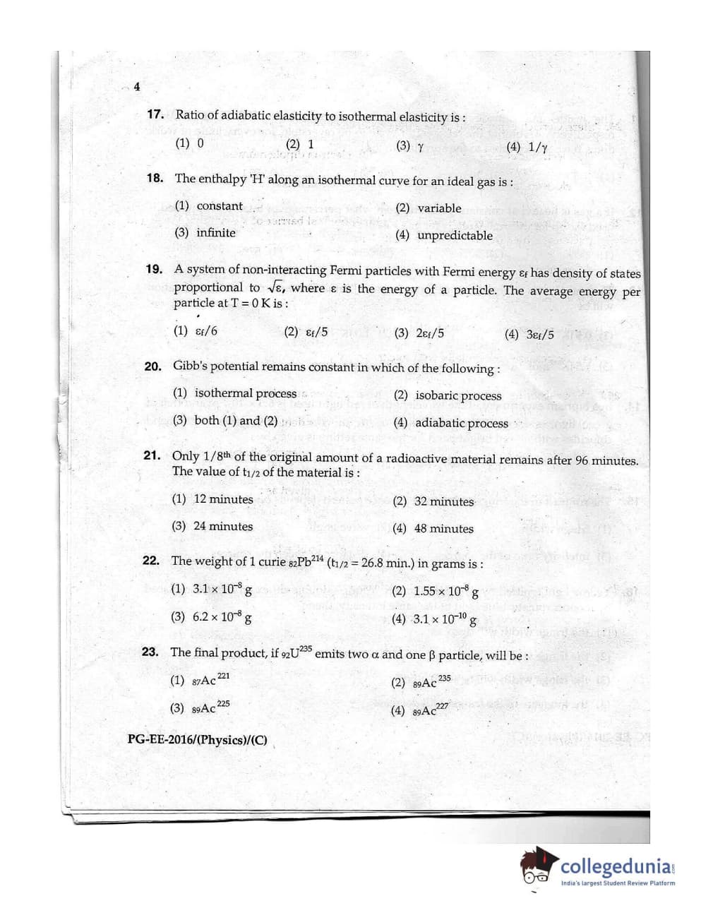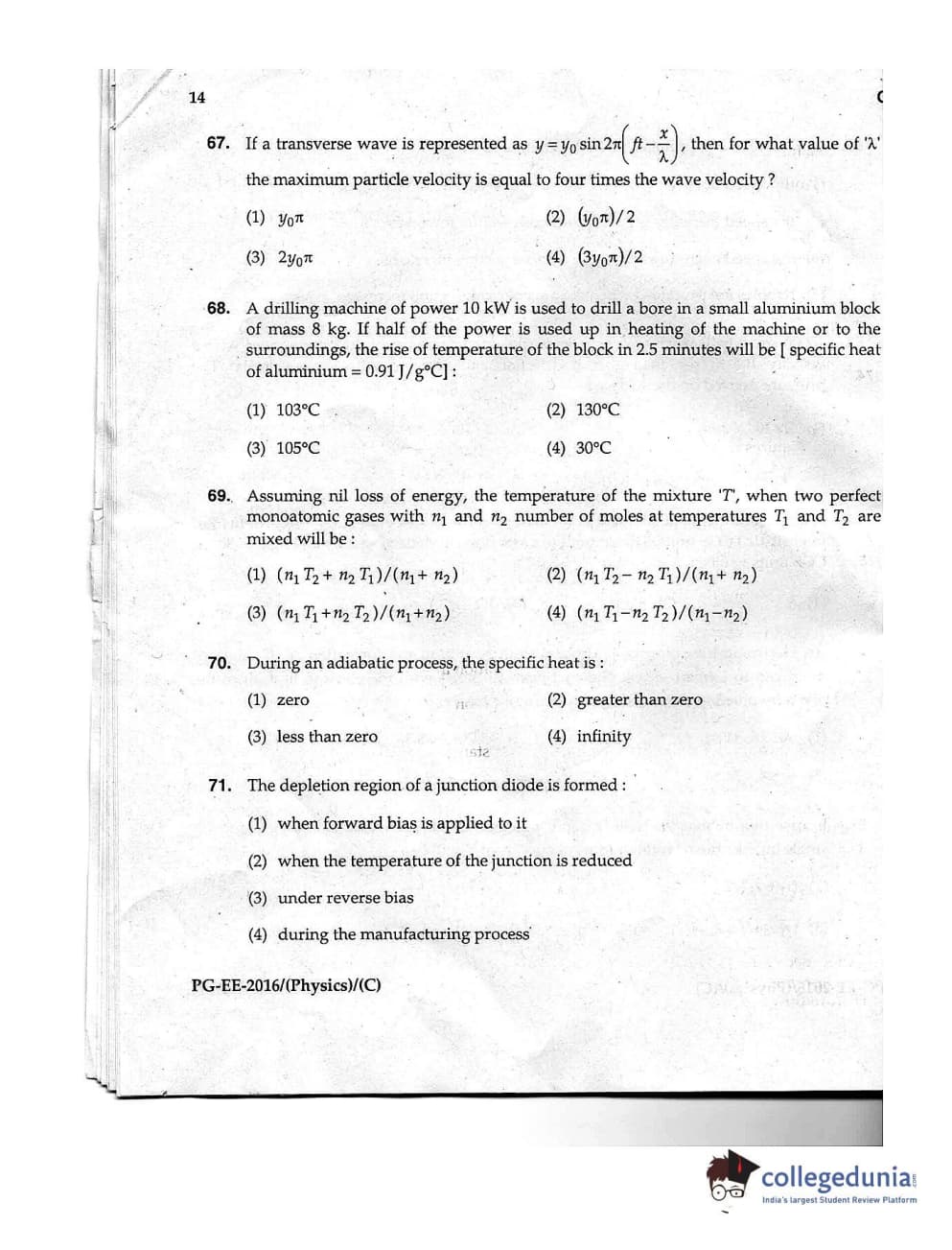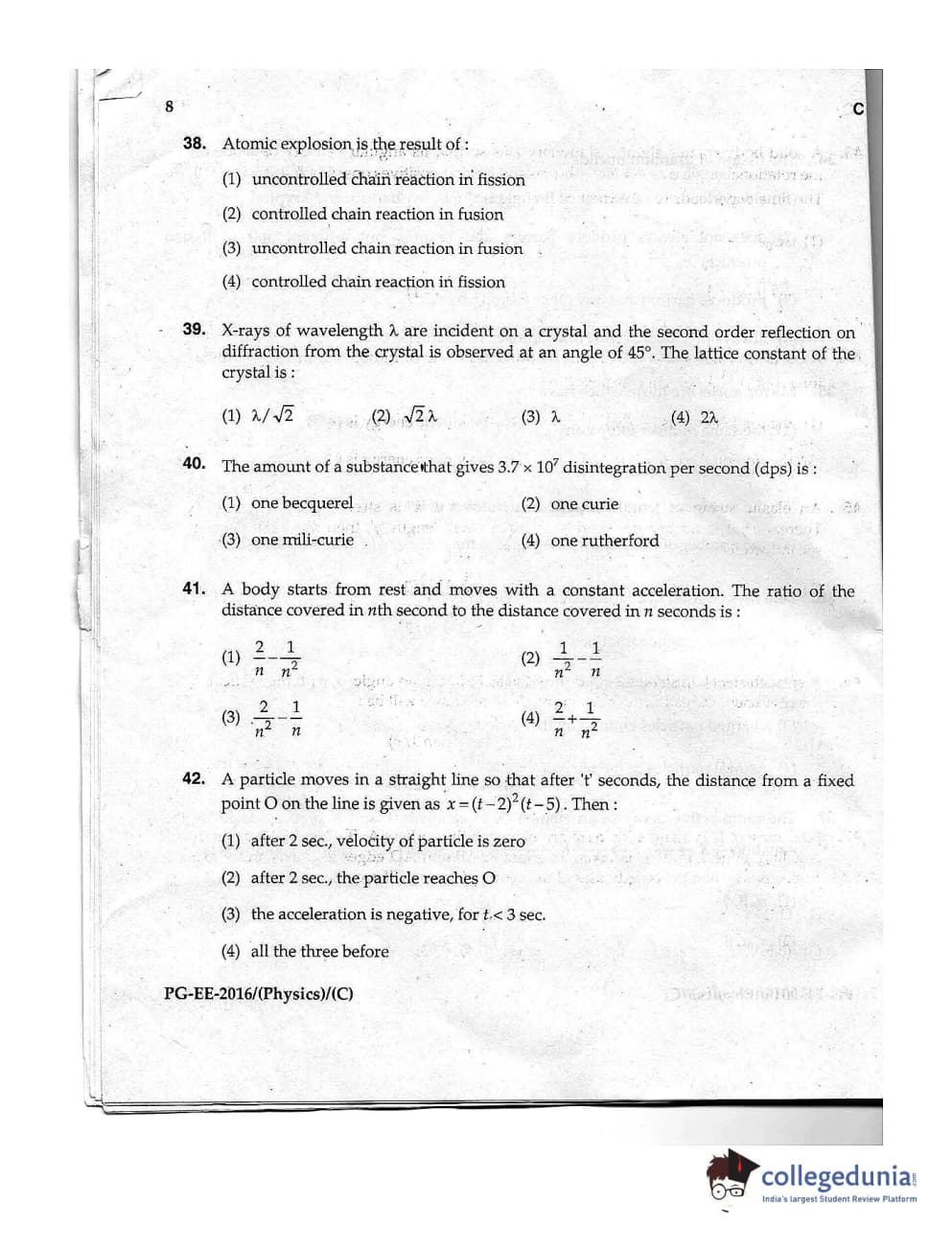 | MDUCEE 2016 M.Sc. (Physics) Set C Question Paper PDF | MDUCEE 2016 M.Sc. (Physics) Set C Answer Key PDF |
