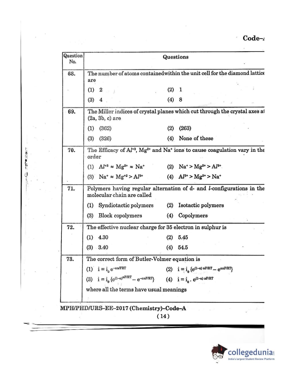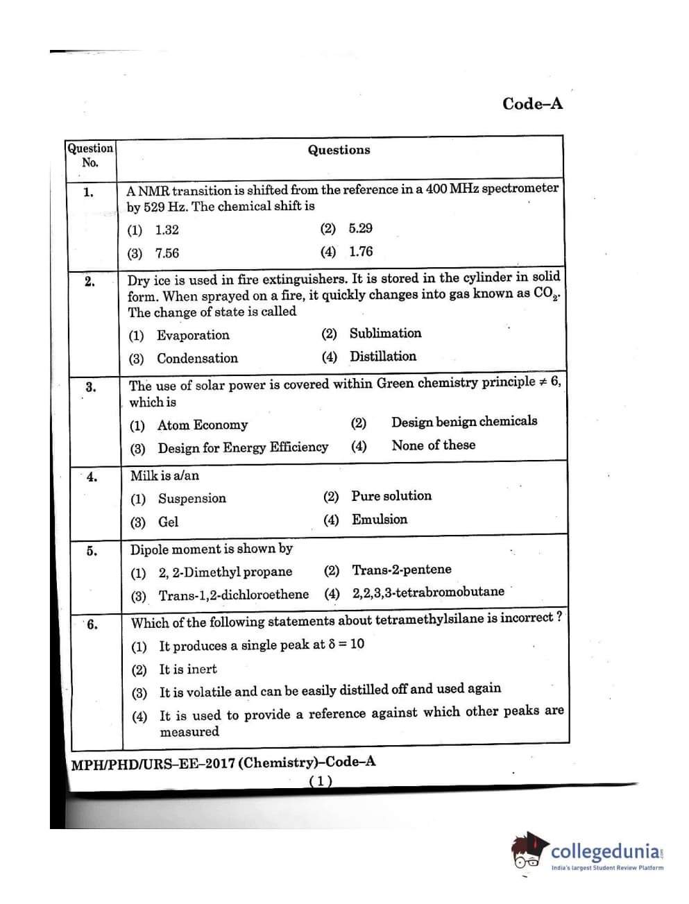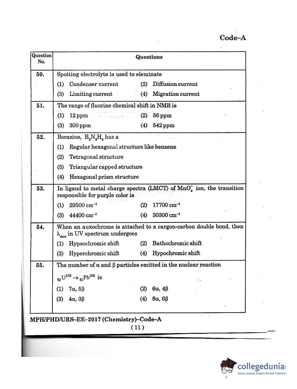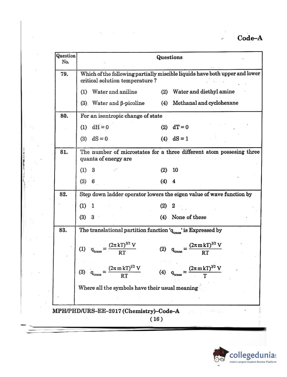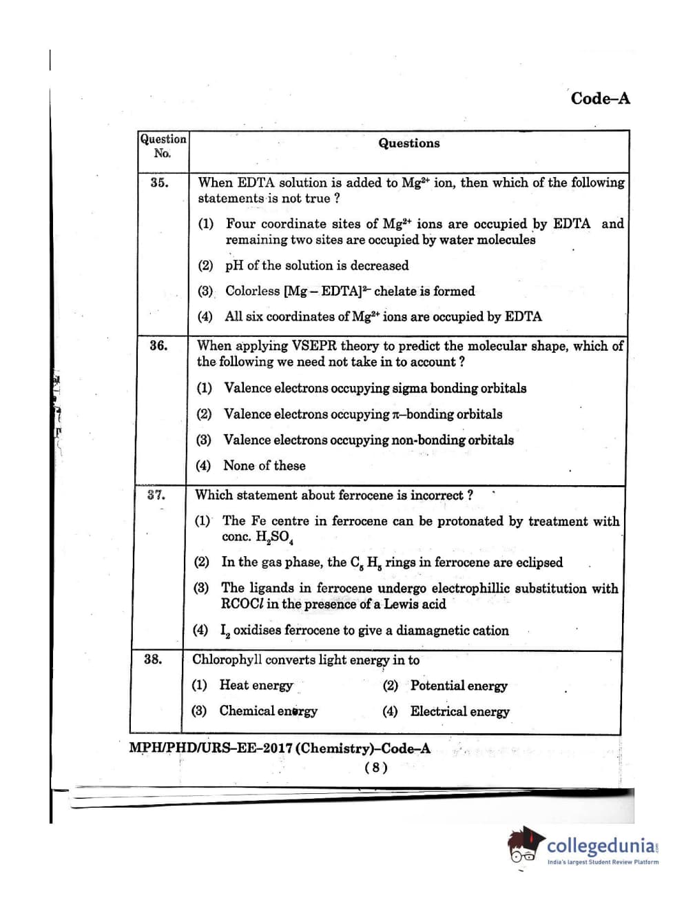 MDUCEE 2016 Ph.D/URS/M.Phil (Chemistry) Set A Question Paper with Answer Key PDFs