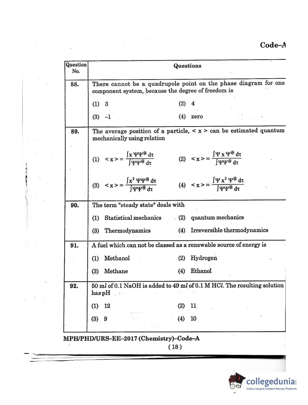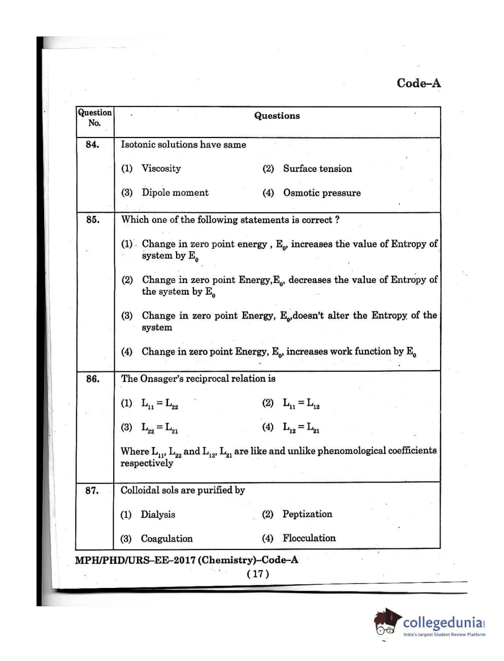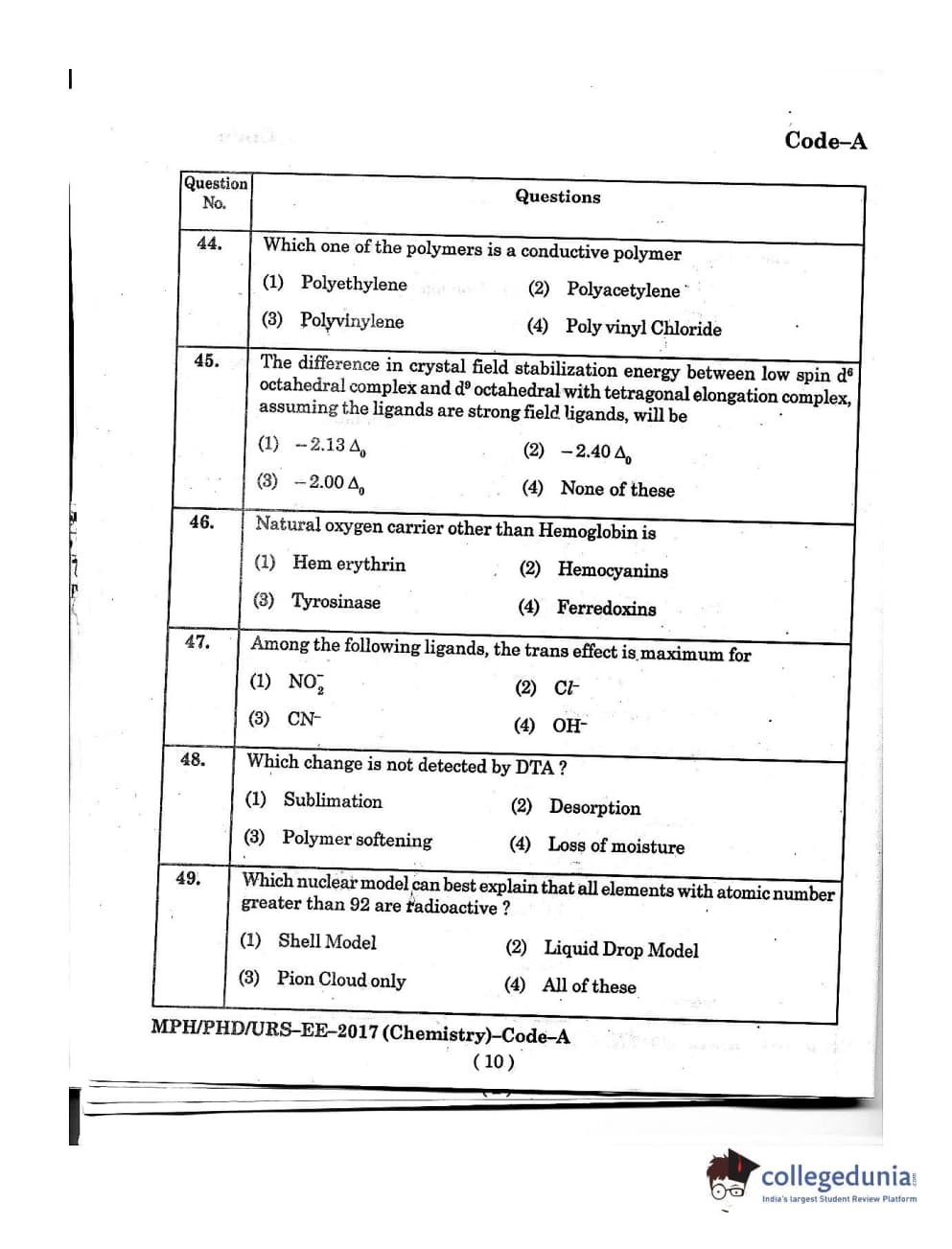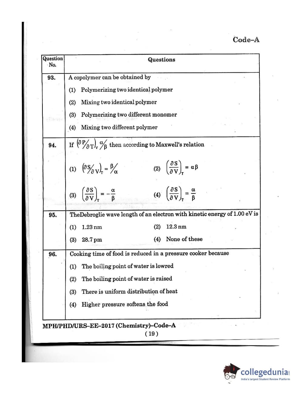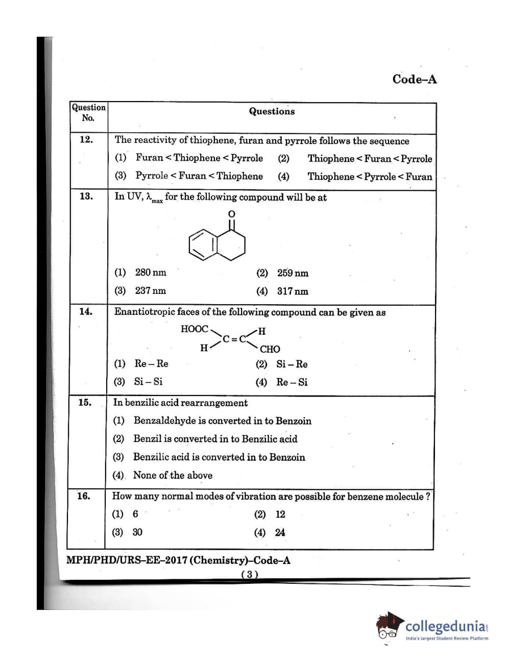 MDUCEE 2016 Ph.D/URS/M.Phil (Chemistry) Set A Question Paper with Answer Key PDFs