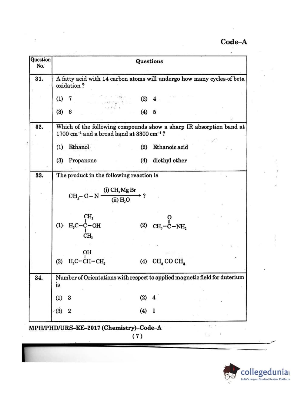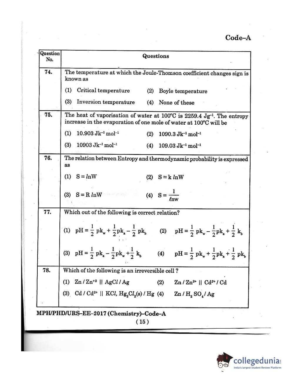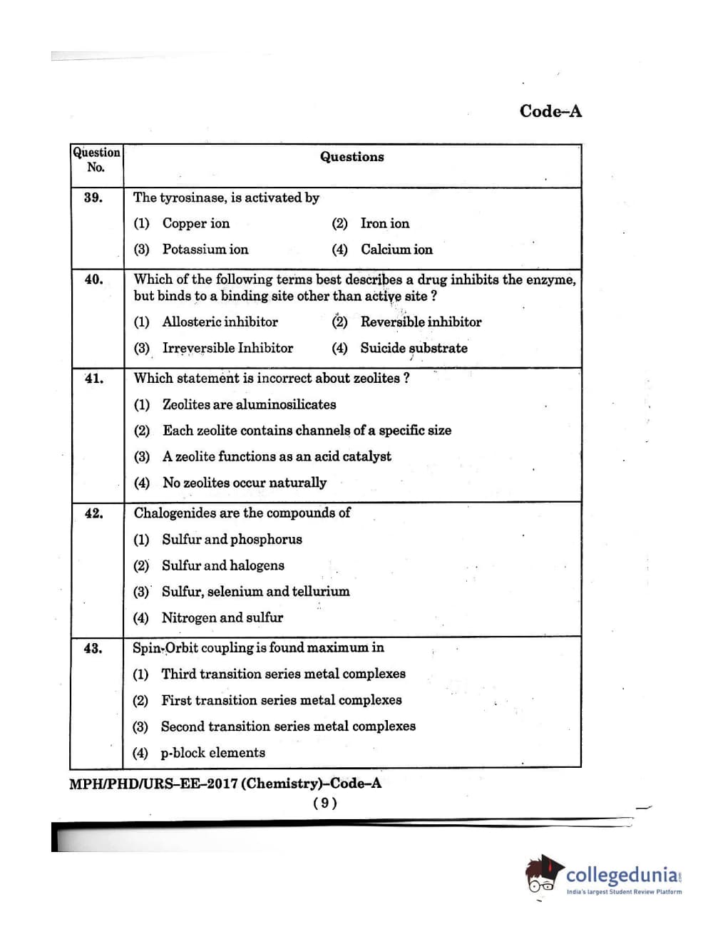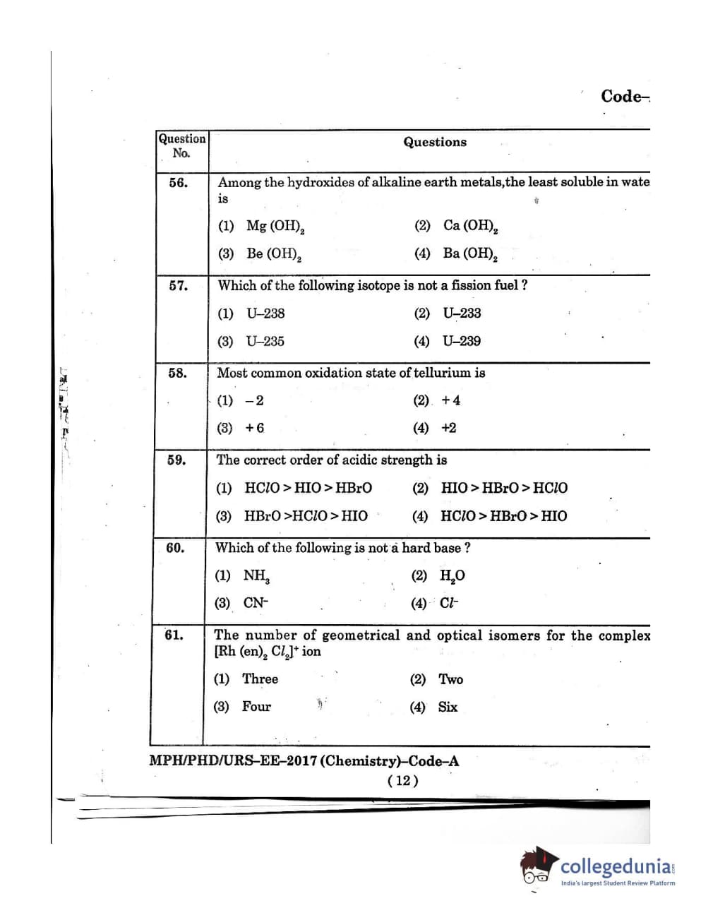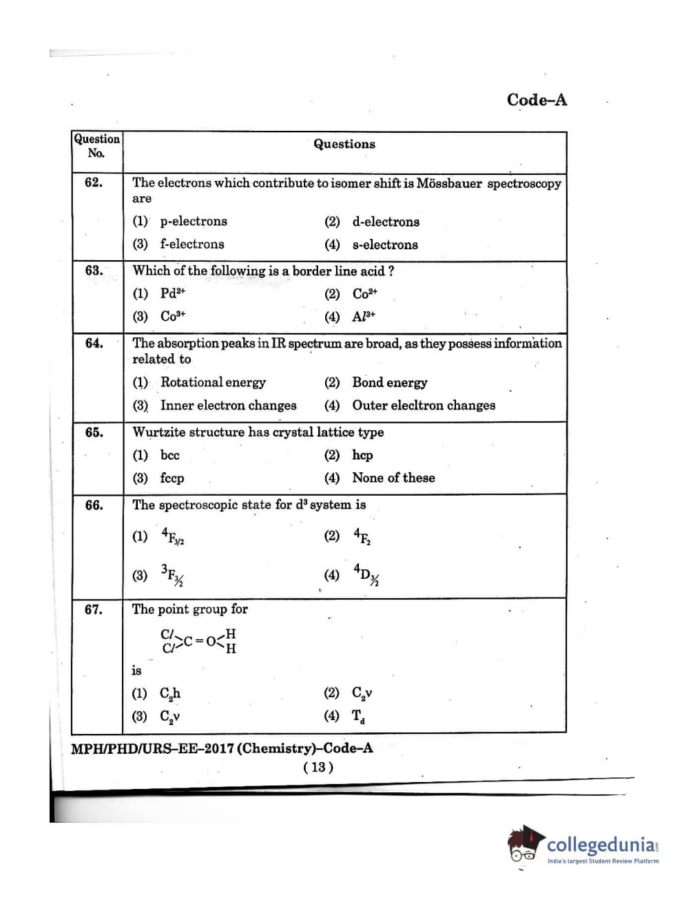 MDUCEE 2016 Ph.D/URS/M.Phil (Chemistry) Set A Question Paper with Answer Key PDFs