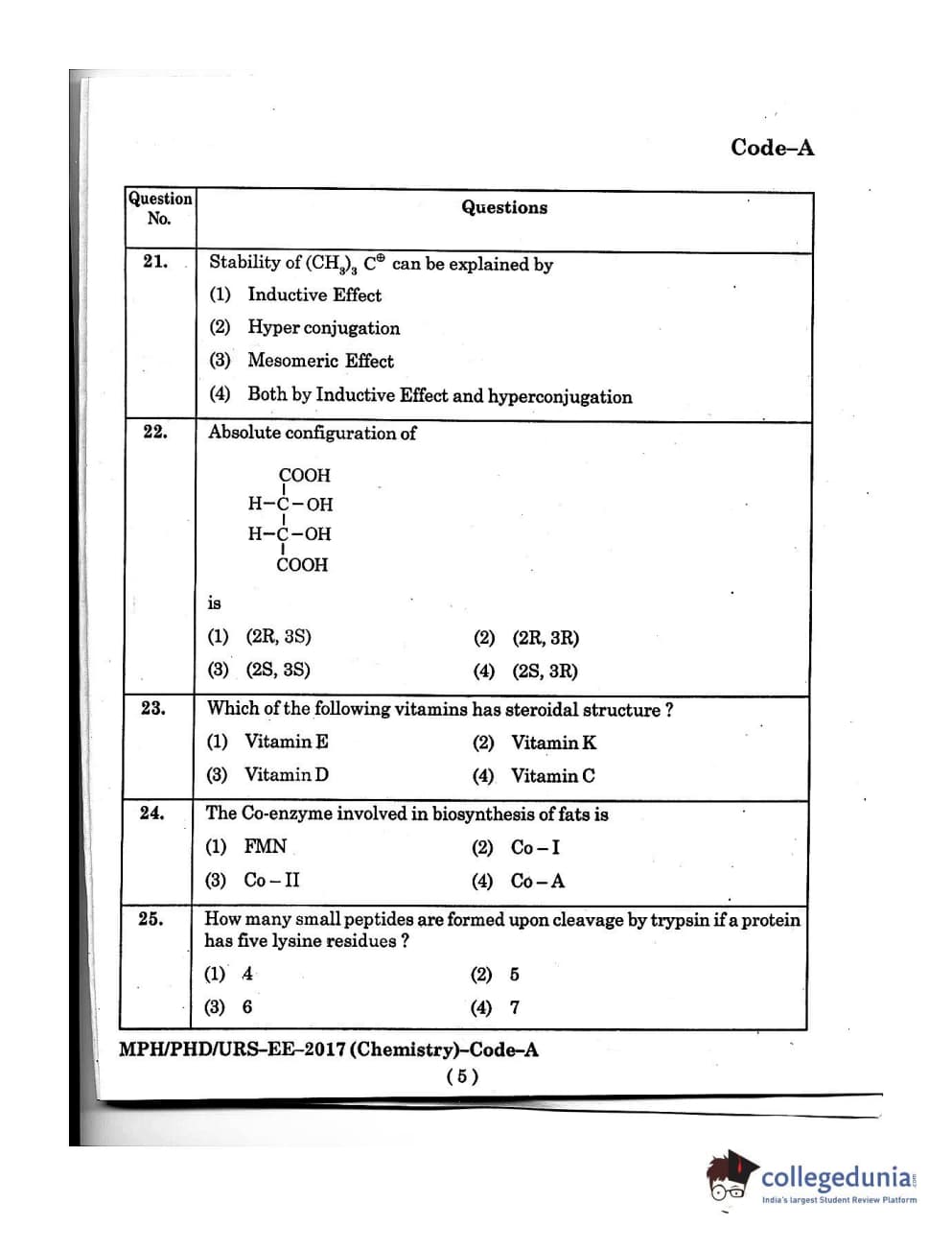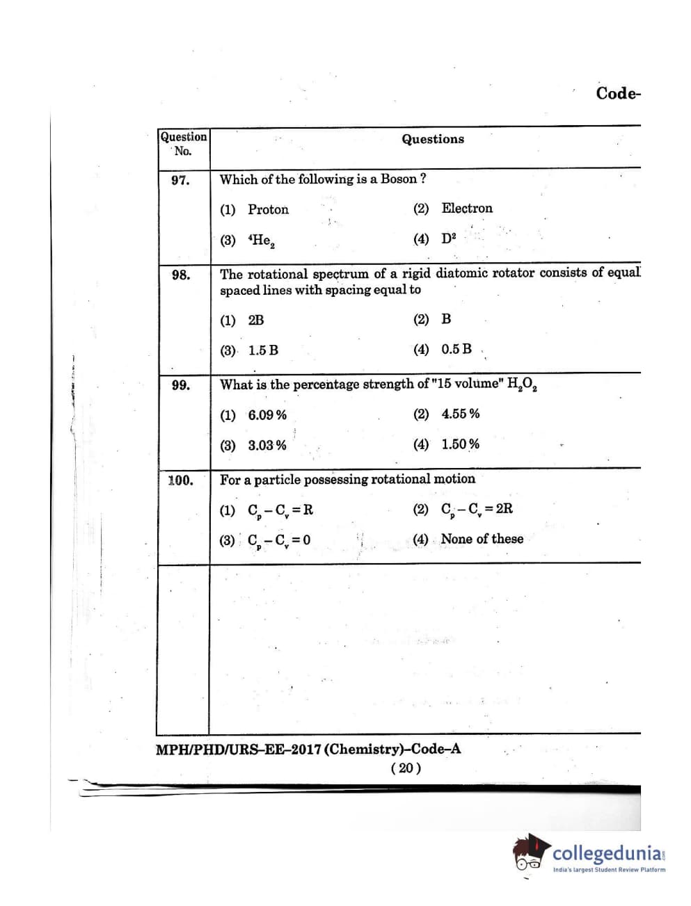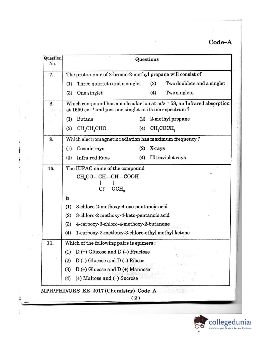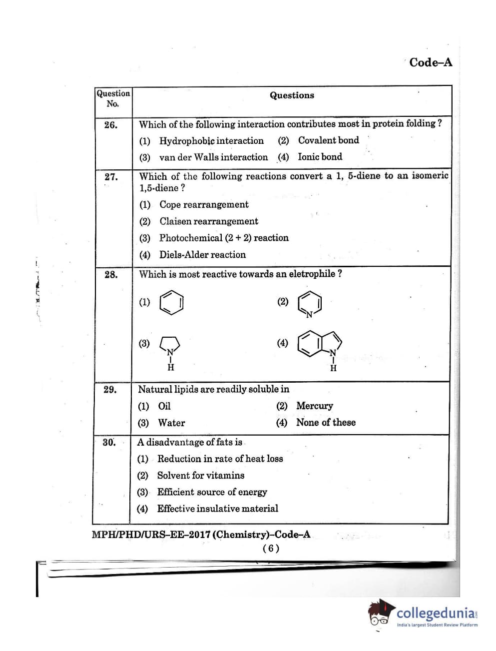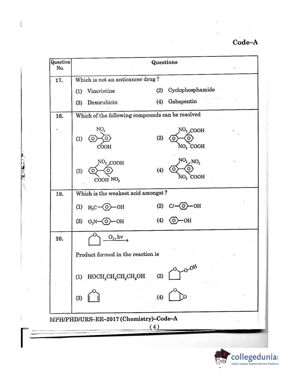 MDUCEE 2016 Ph.D/URS/M.Phil (Chemistry) Set A Question Paper with Answer Key PDFs