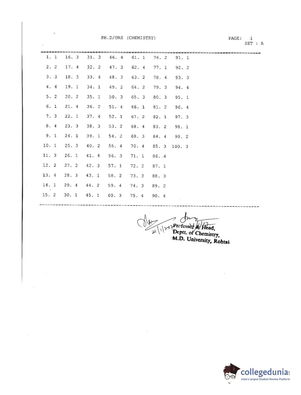 MDUCEE 2016 Ph.D/URS/M.Phil (Chemistry) Set A Question paper with answer key pdf is available for download. The exam was successfully organized by Maharishi Dayanand University. The question paper comprised a total of 100 questions.