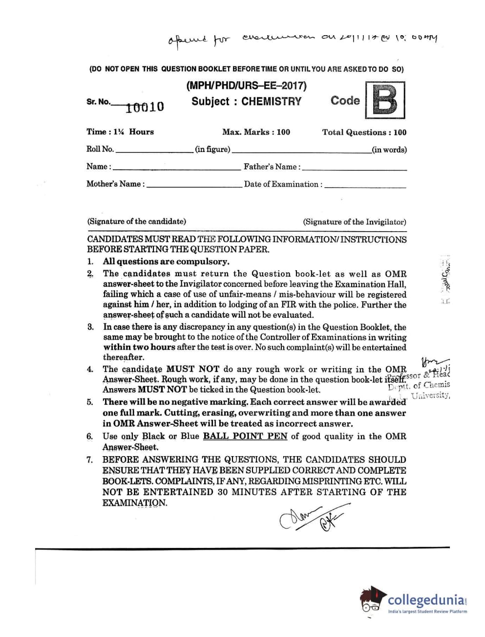 | MDUCEE 2016 Ph.D/URS/M.Phil (Chemistry) Set B Question Paper PDF | MDUCEE 2016 Ph.D/URS/M.Phil (Chemistry) Set B Answer Key PDF |
