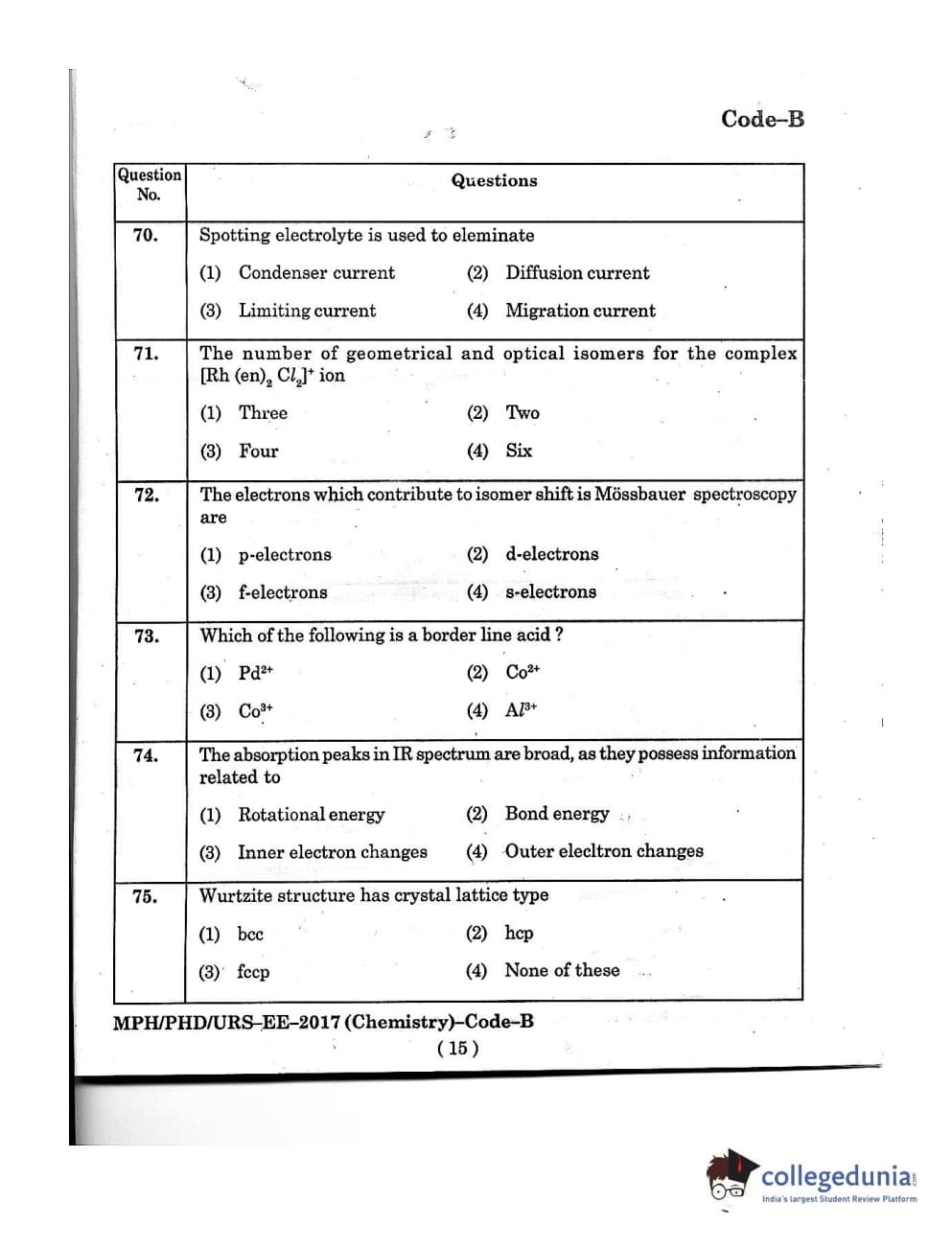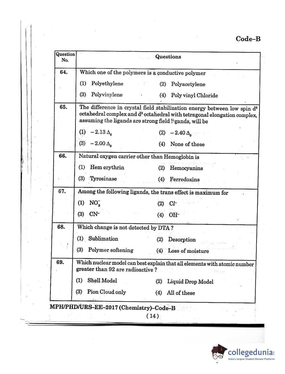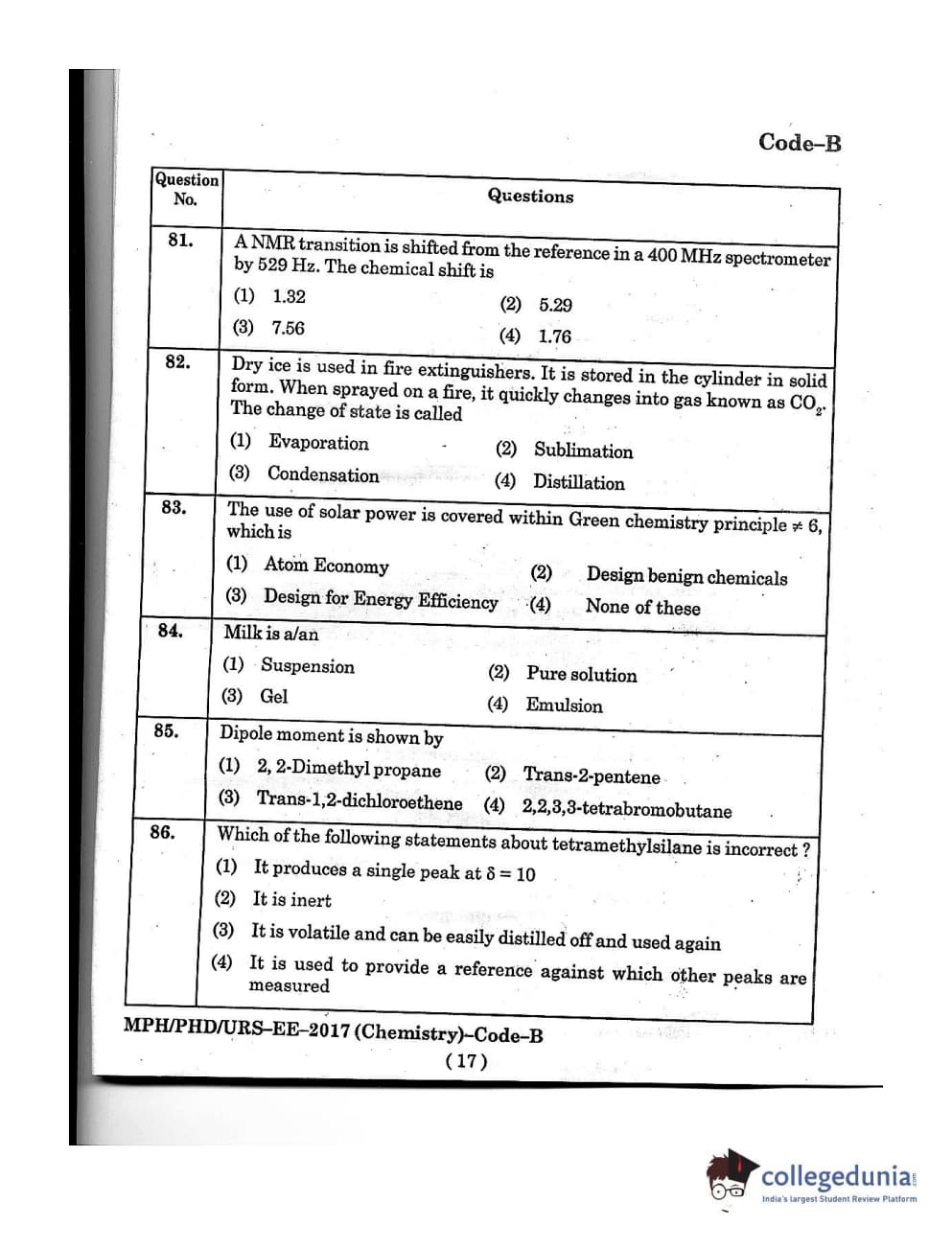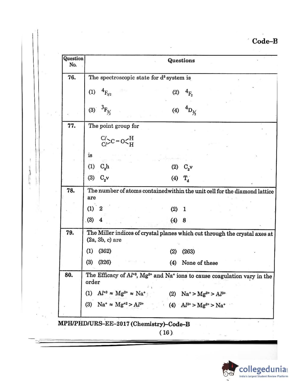 MDUCEE 2016 Ph.D/URS/M.Phil (Chemistry) Set B Question Paper with Answer Key PDFs
