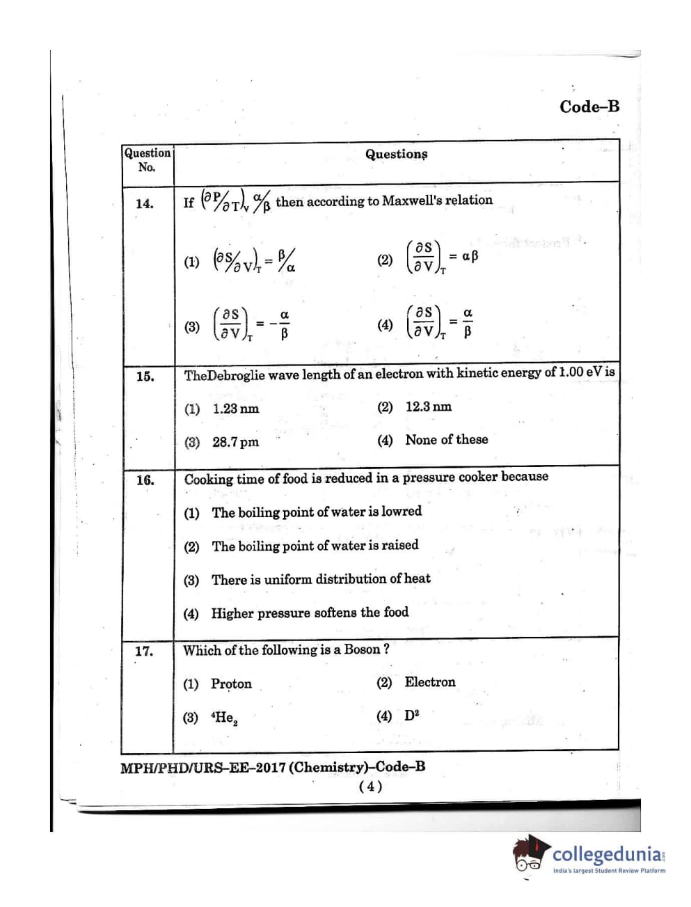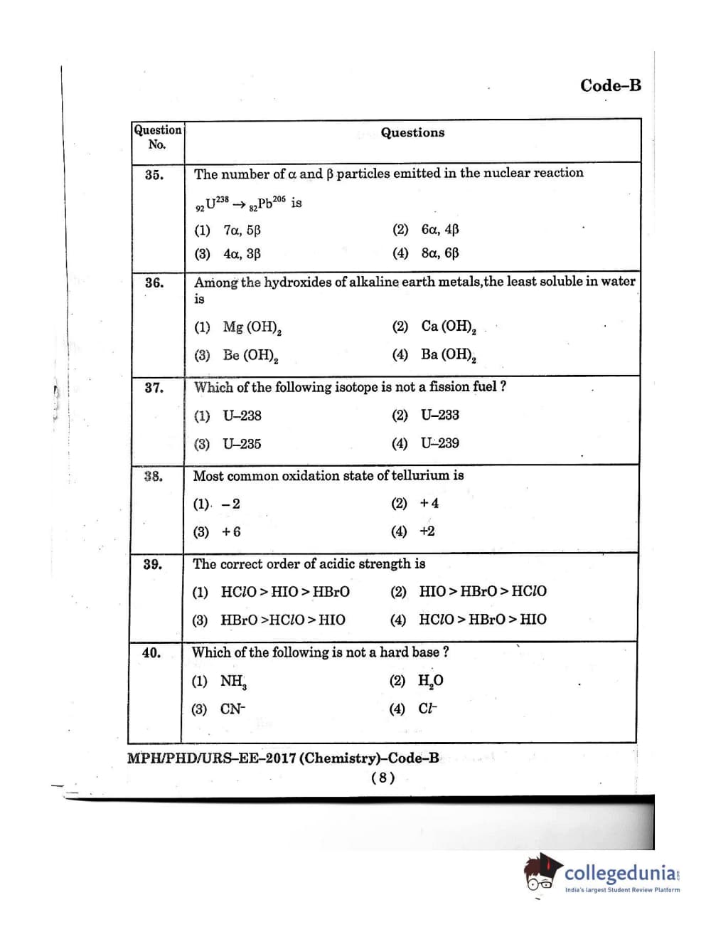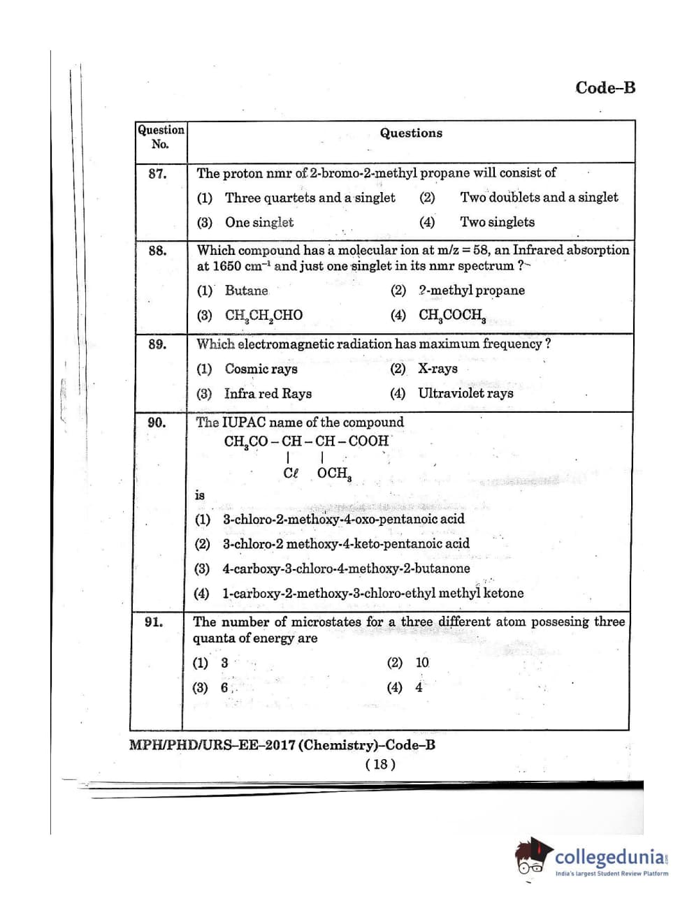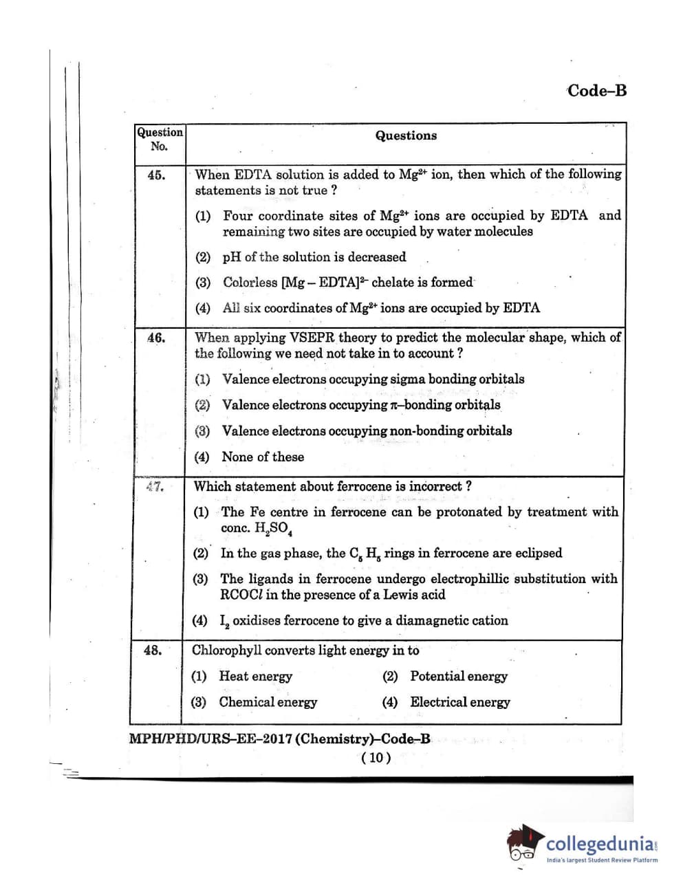 MDUCEE 2016 Ph.D/URS/M.Phil (Chemistry) Set B Question Paper with Answer Key PDFs