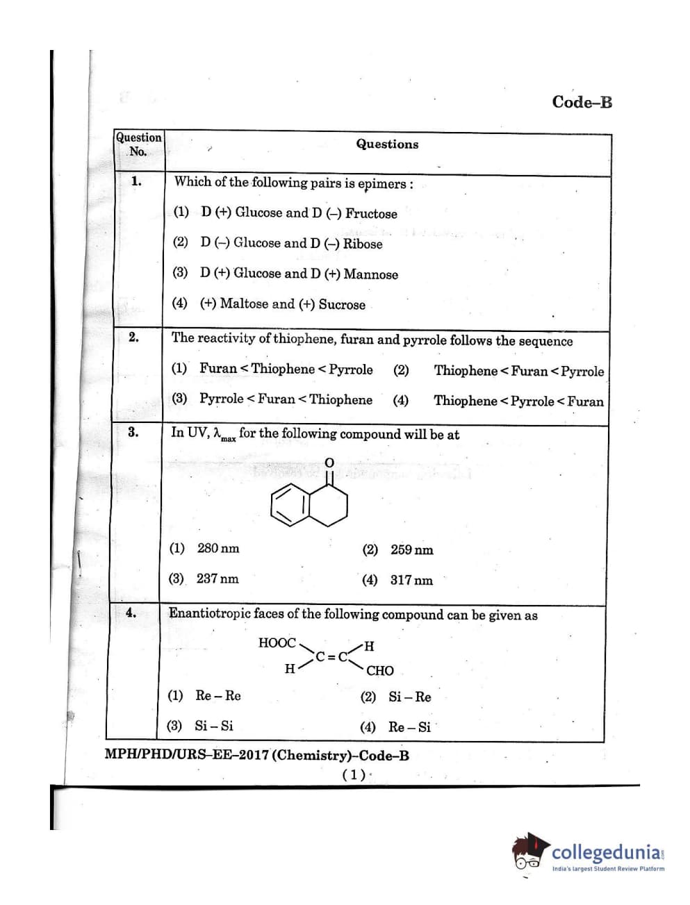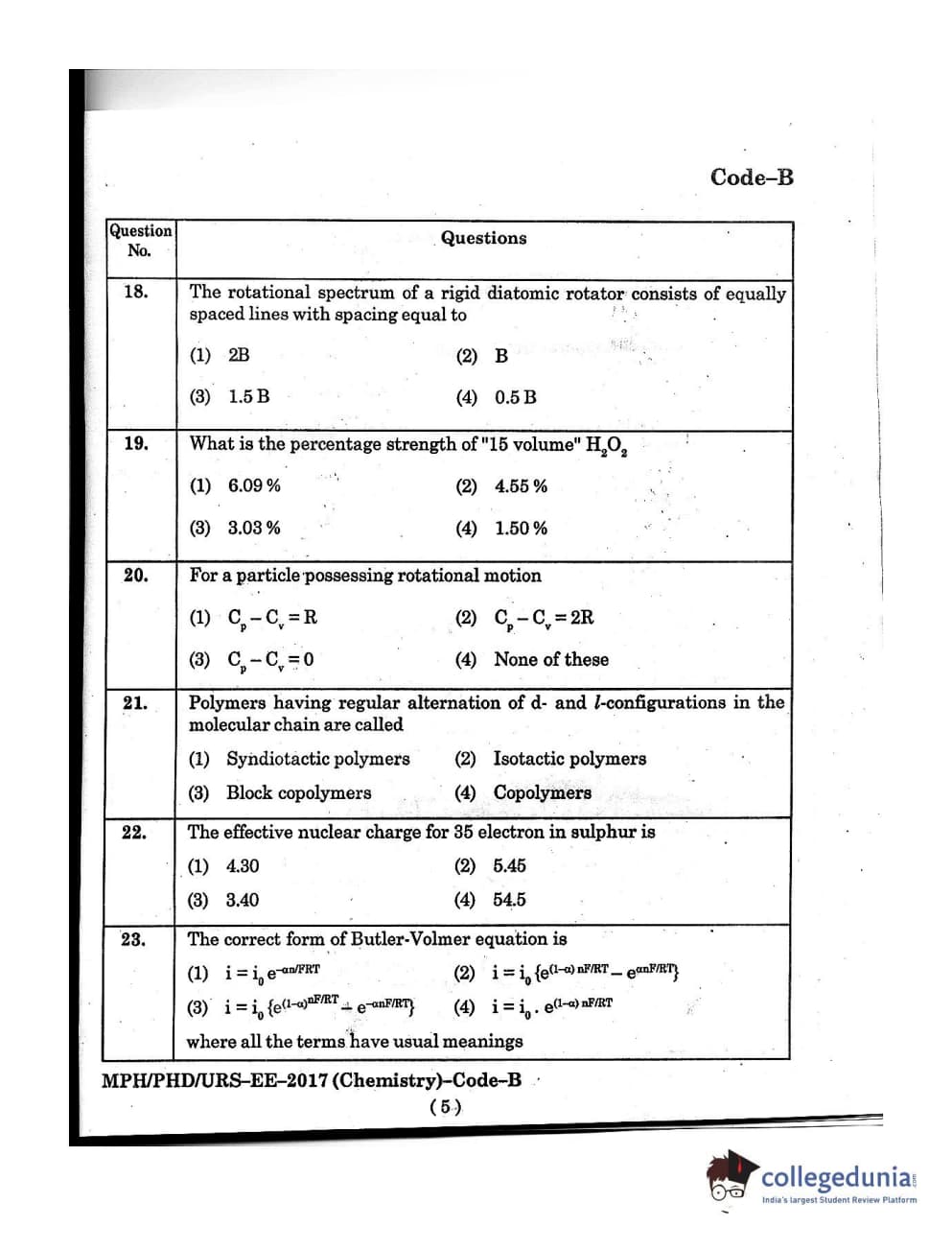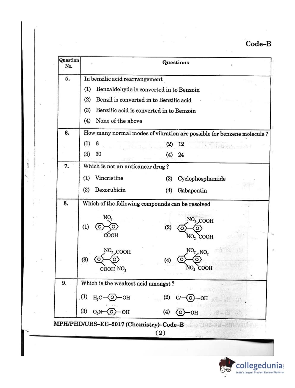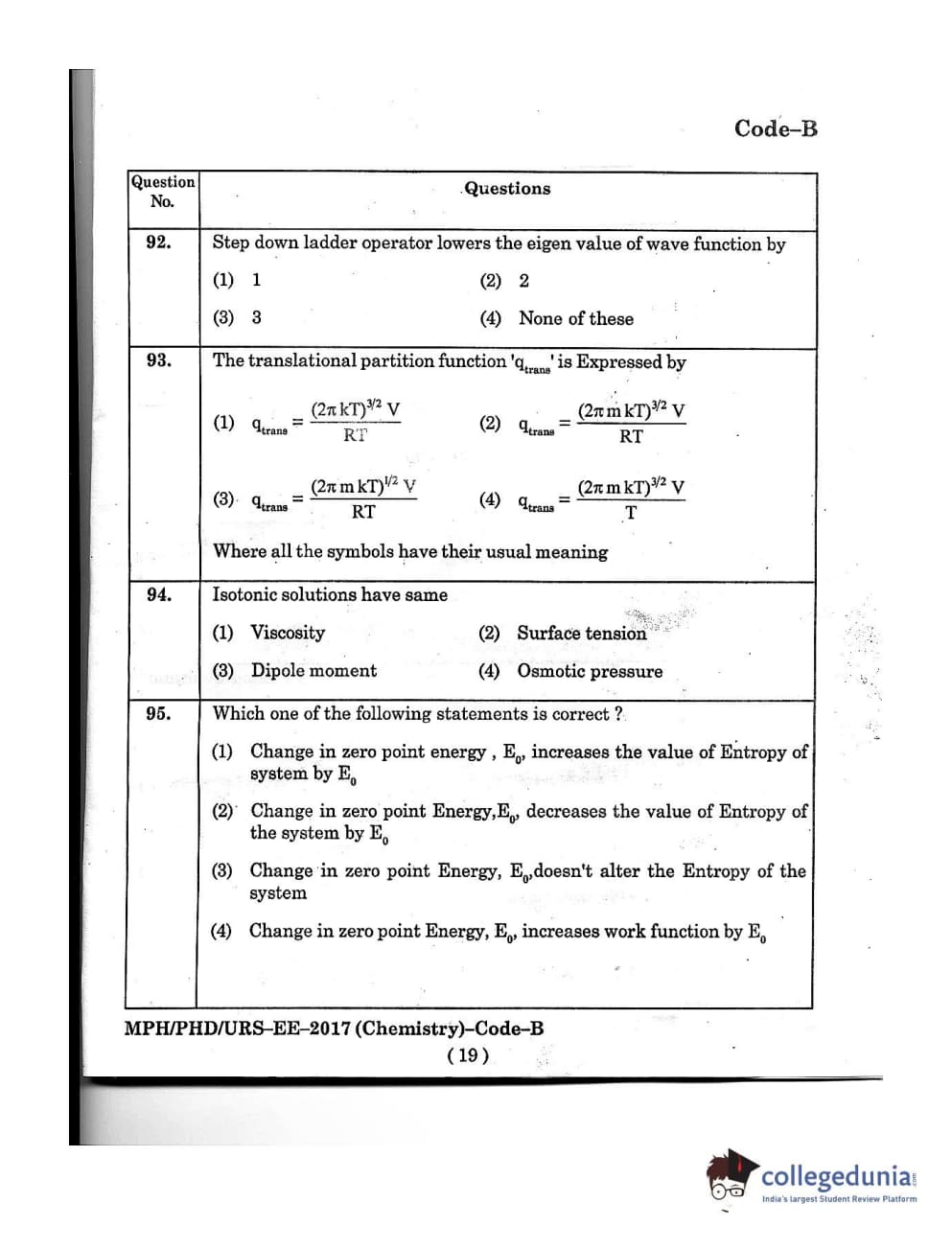 MDUCEE 2016 Ph.D/URS/M.Phil (Chemistry) Set B Question Paper with Answer Key PDFs