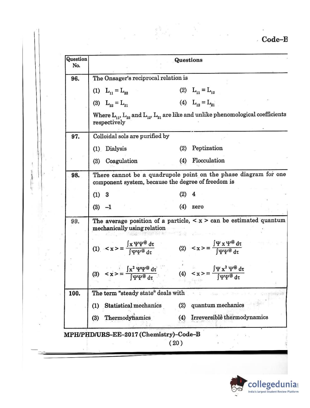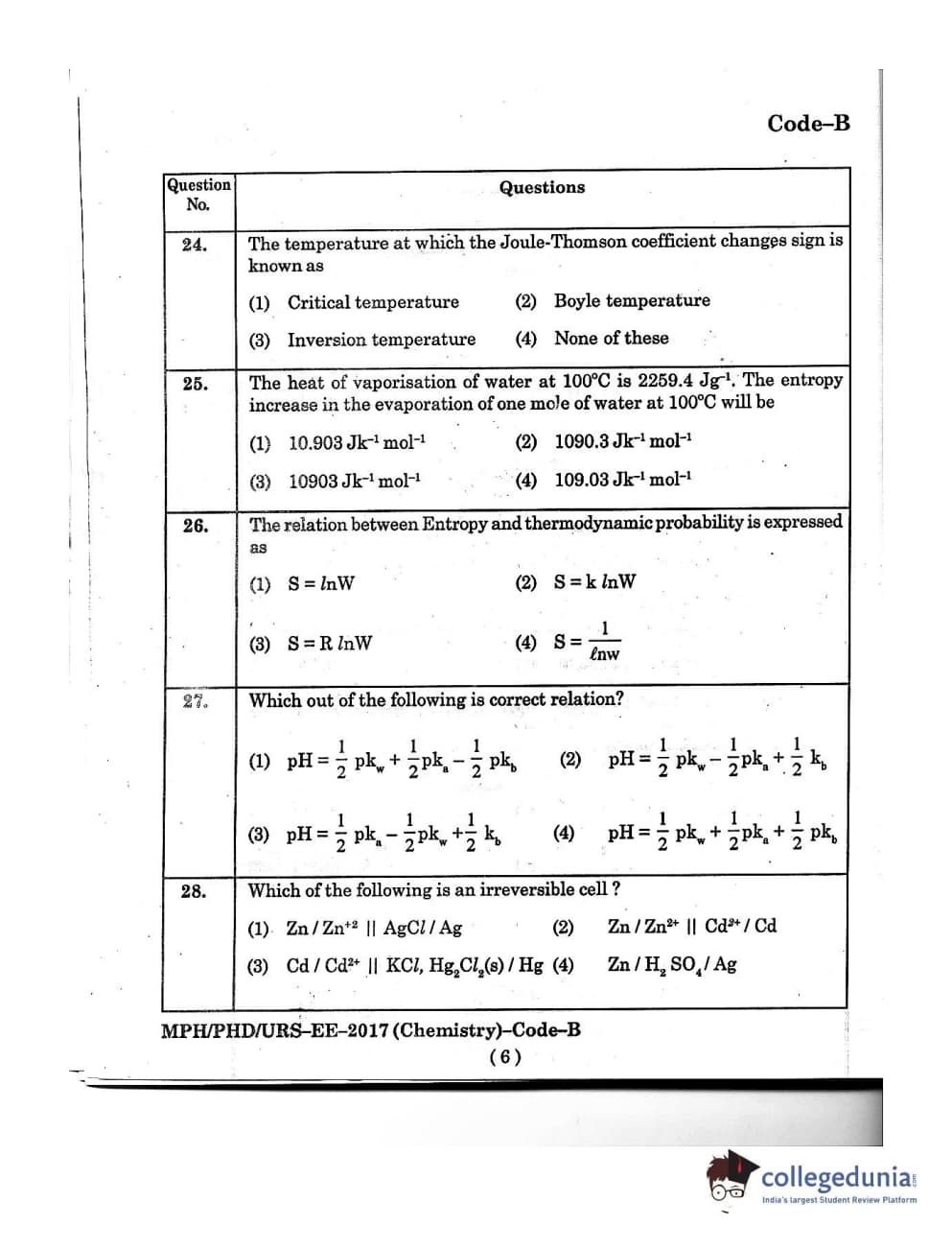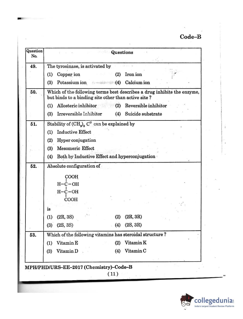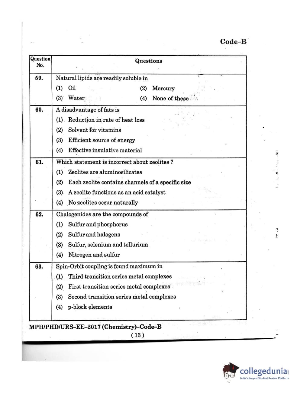 MDUCEE 2016 Ph.D/URS/M.Phil (Chemistry) Set B Question Paper with Answer Key PDFs