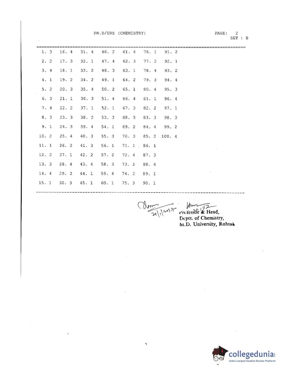 MDUCEE 2016 Ph.D/URS/M.Phil (Chemistry) Set B Question paper with answer key pdf is available for download. The exam was successfully organized by Maharishi Dayanand University. The question paper comprised a total of 100 questions.