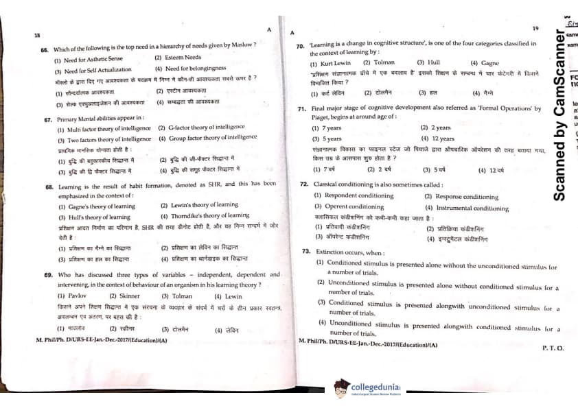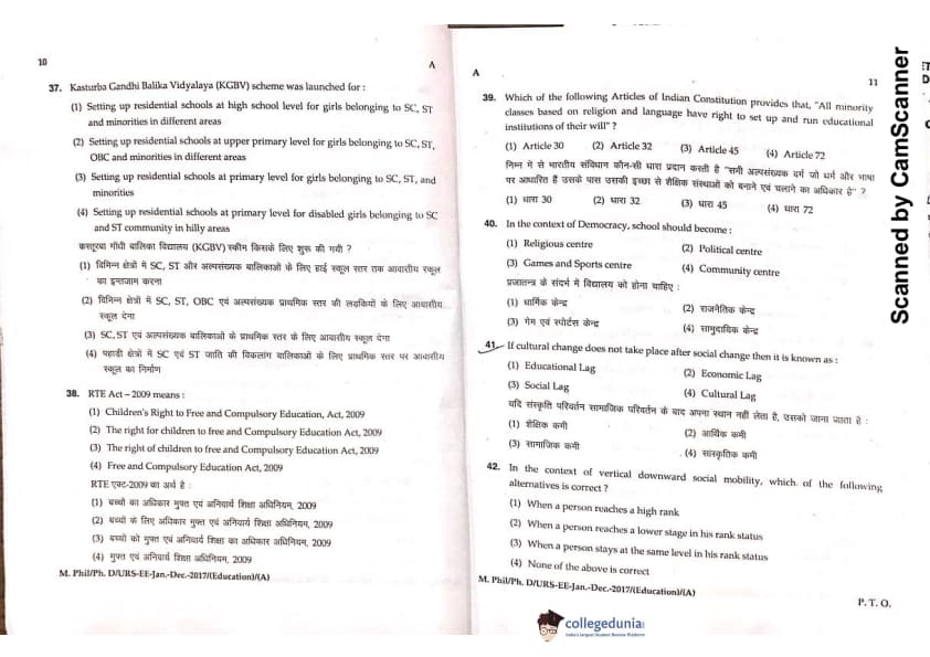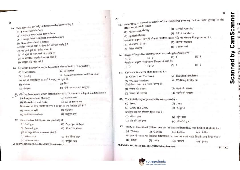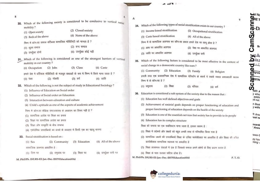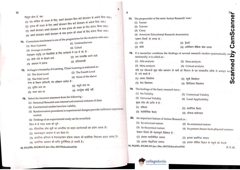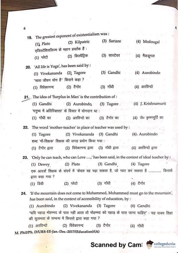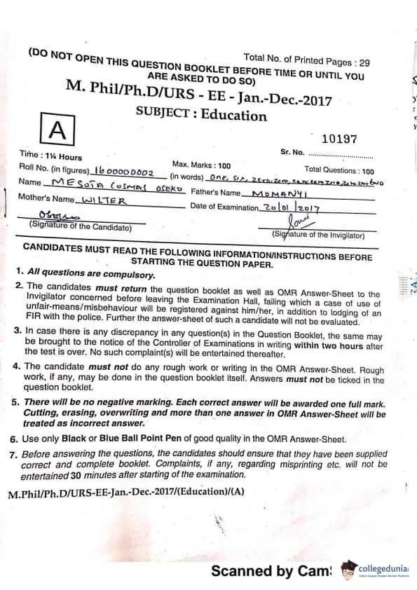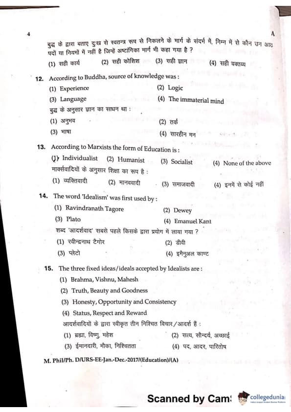 MDUCEE 2016 Ph.D/URS/M.Phil (Education) Set A Question Paper with Answer Key PDFs