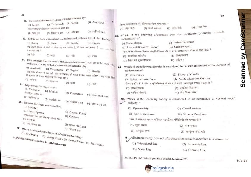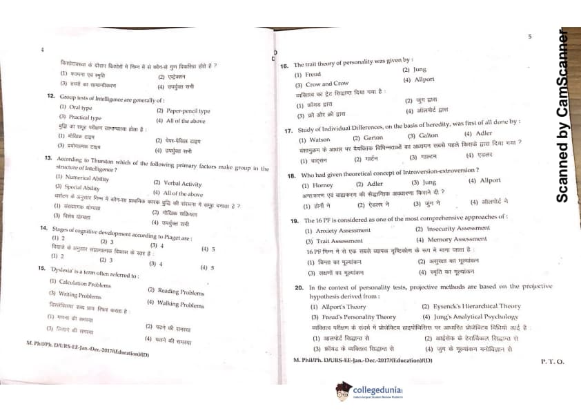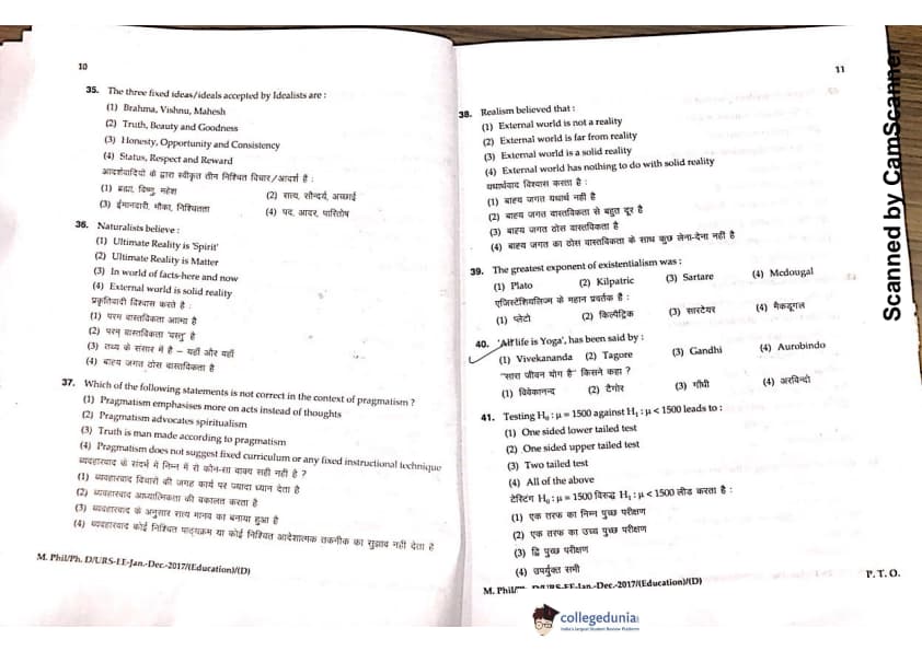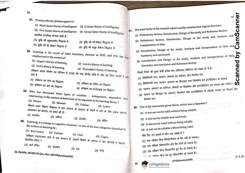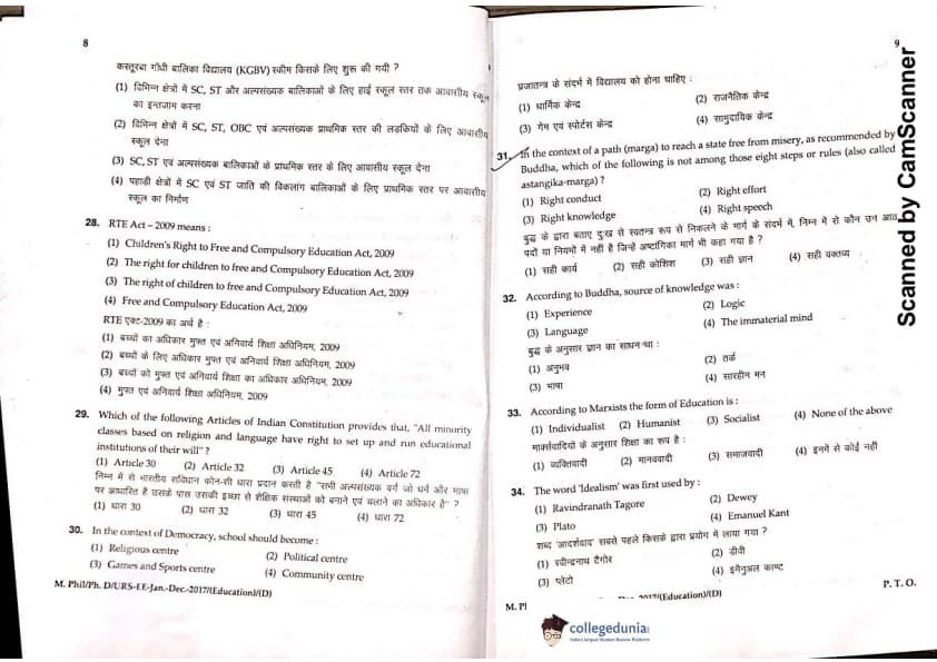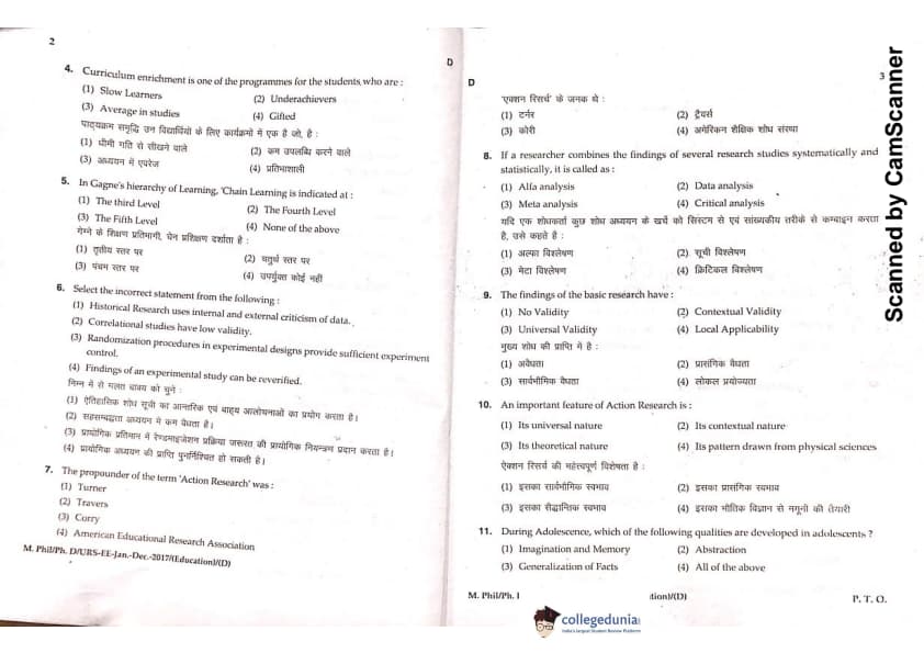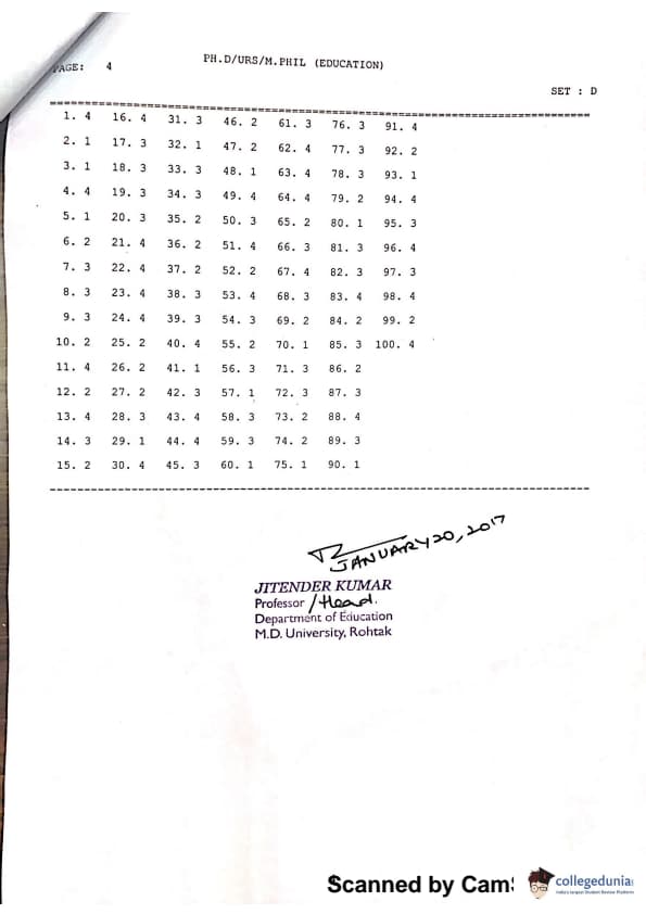 MDUCEE 2016 Ph.D/URS/M.Phil (Education) Set D Question Paper with Answer Key PDFs