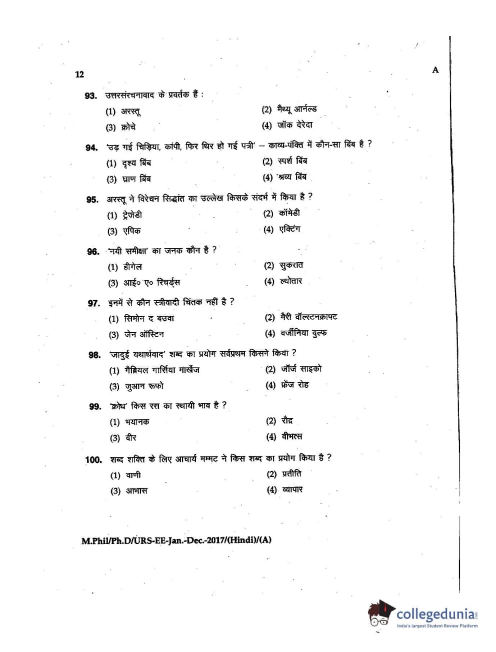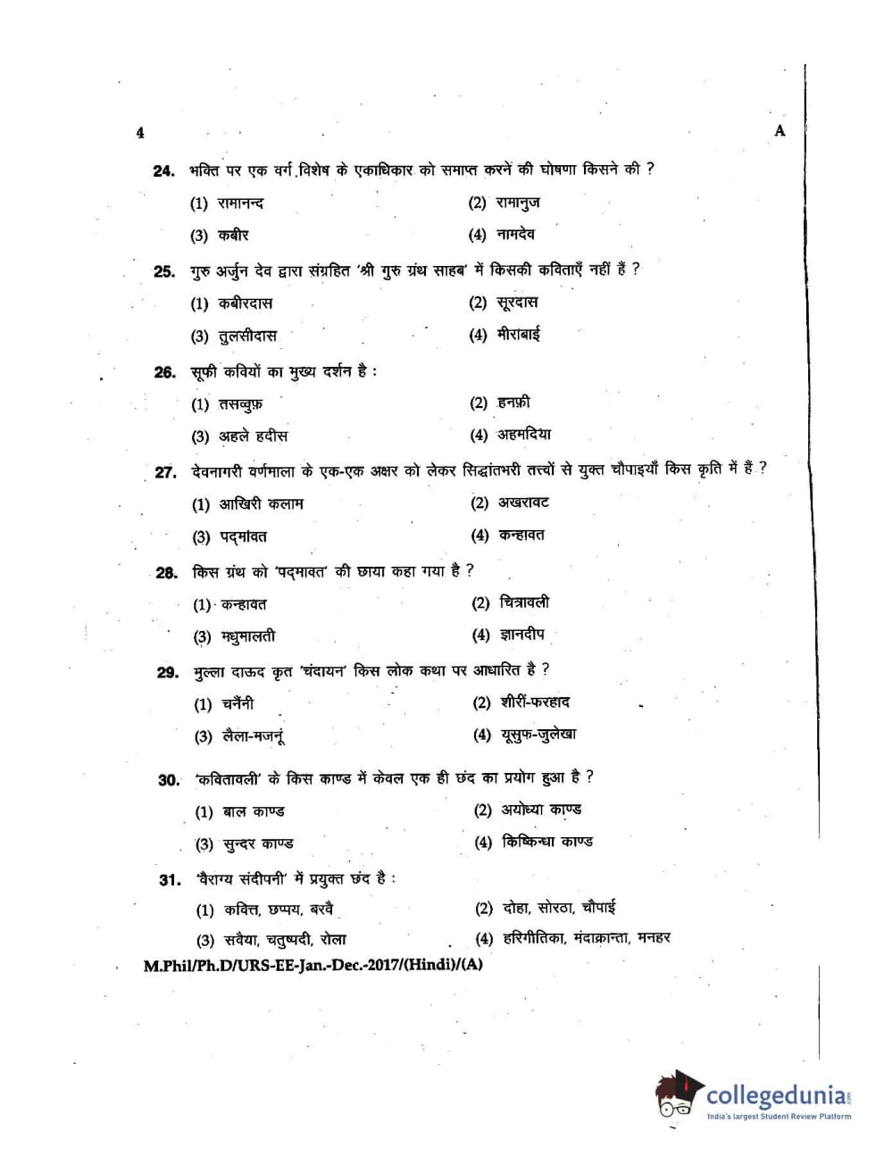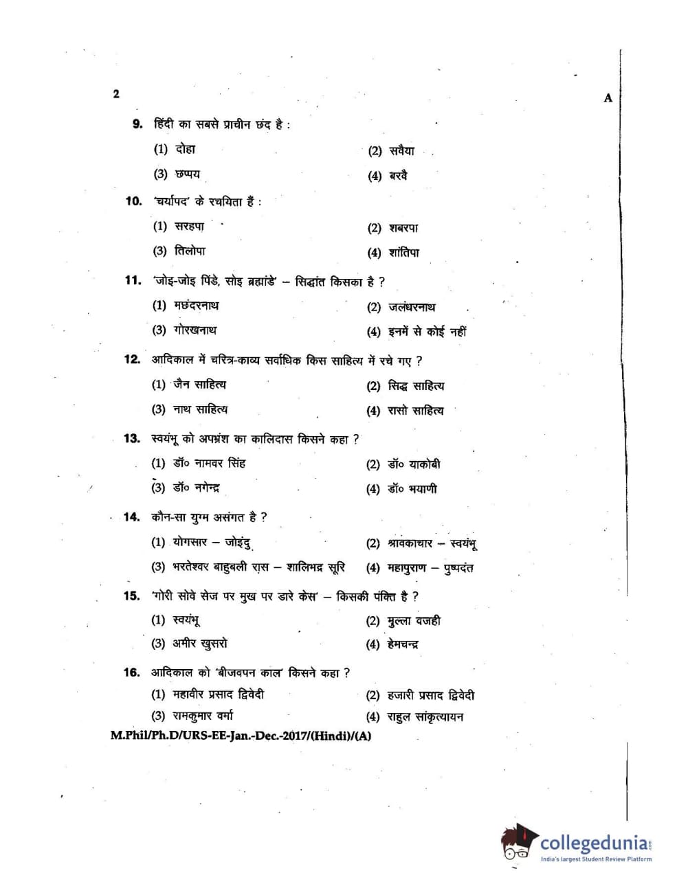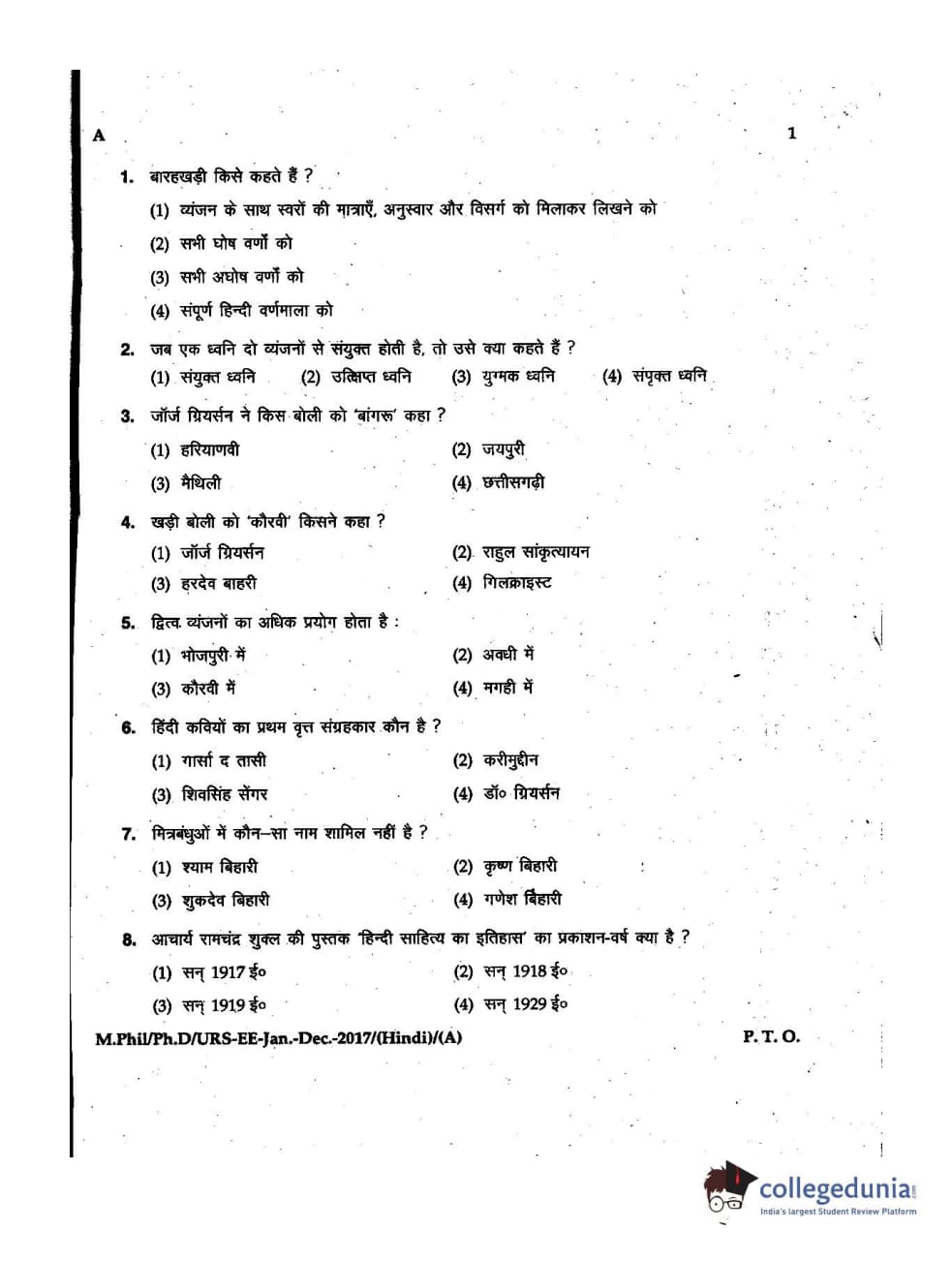 MDUCEE 2016 Ph.D/URS/M.Phil (Hindi) Set A Question Paper with Answer Key PDFs