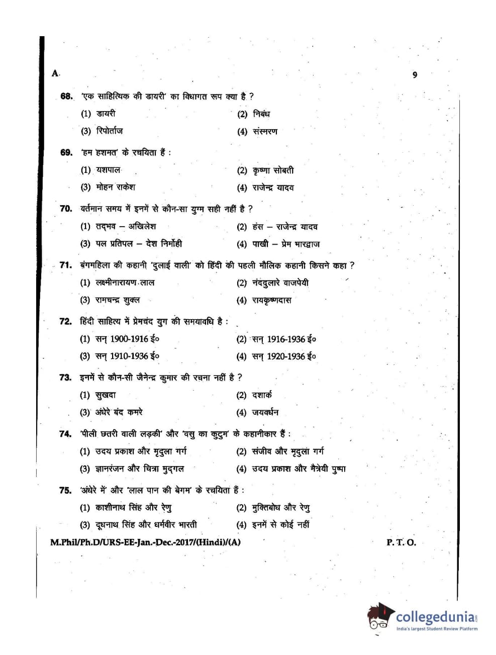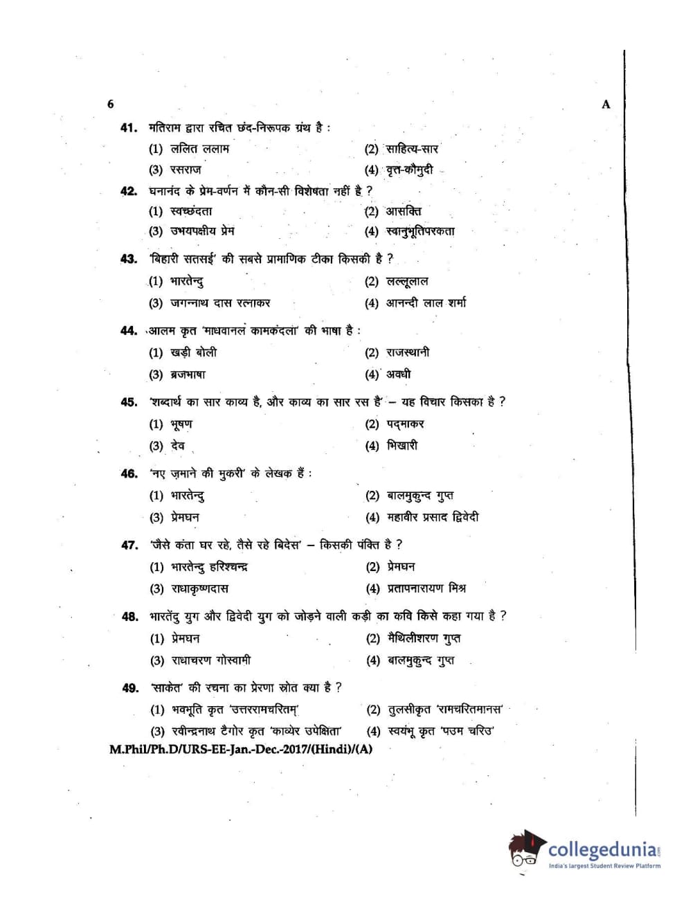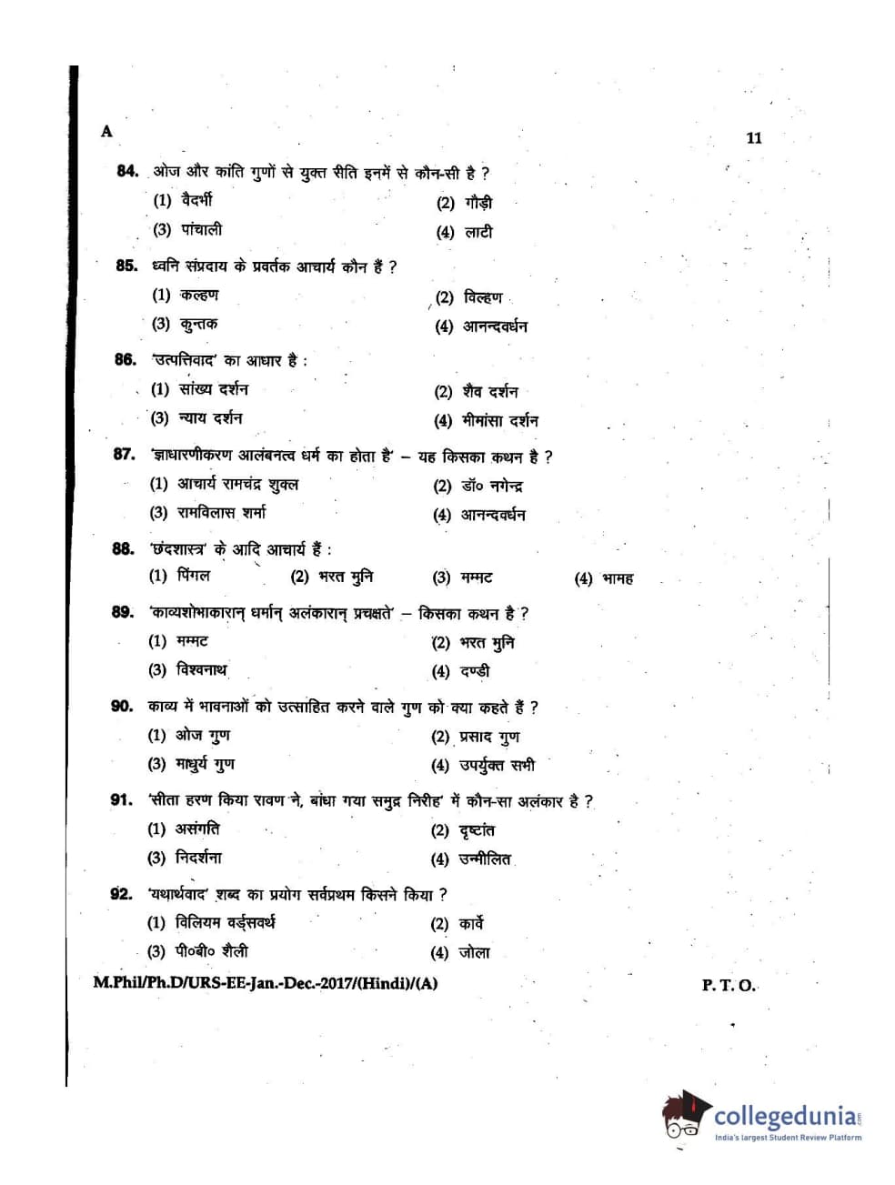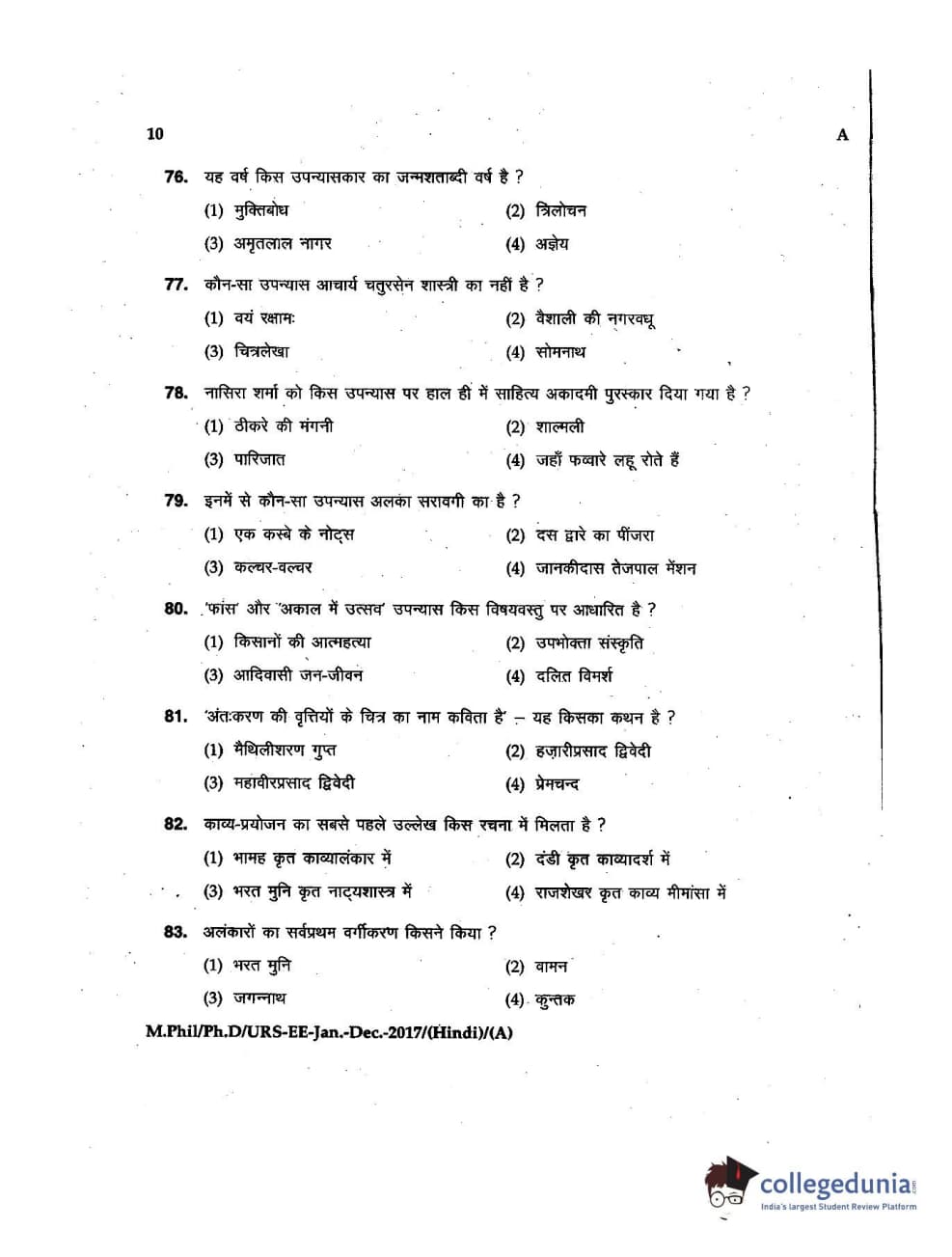 MDUCEE 2016 Ph.D/URS/M.Phil (Hindi) Set A Question Paper with Answer Key PDFs