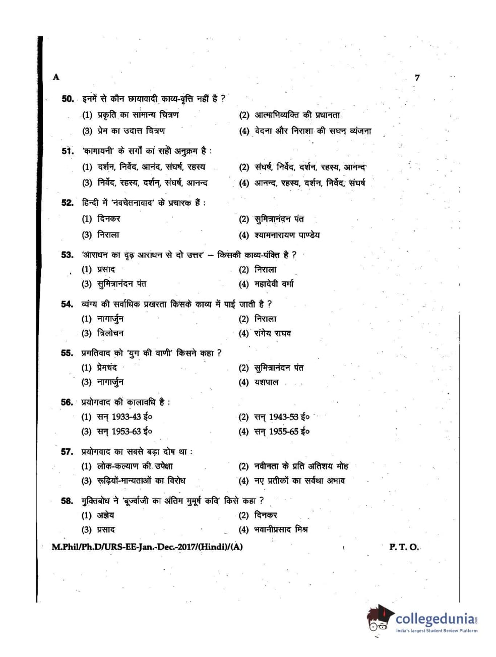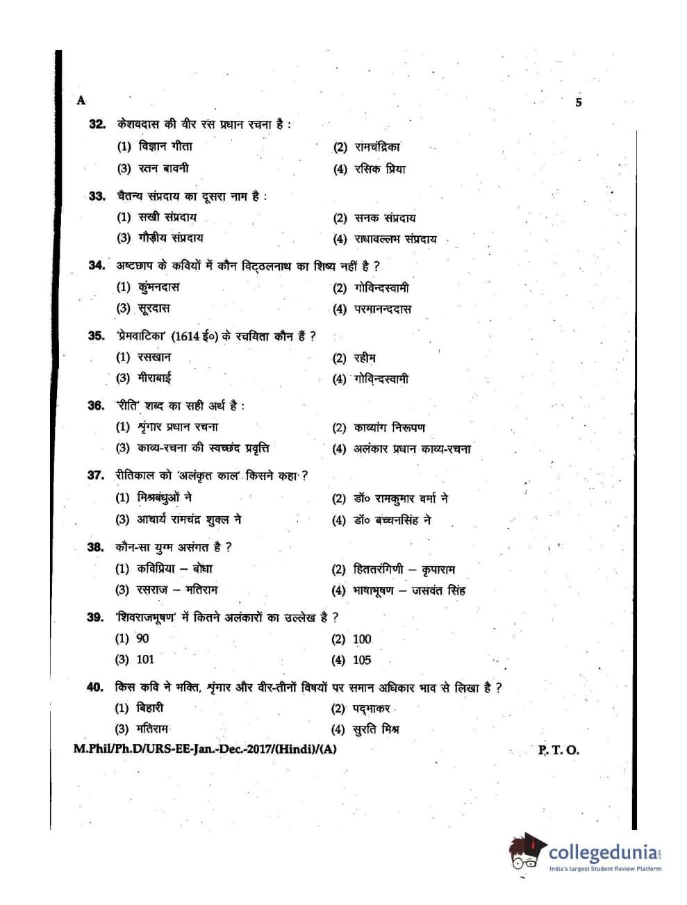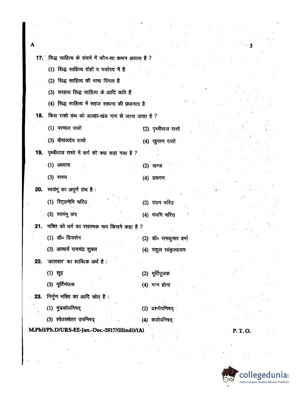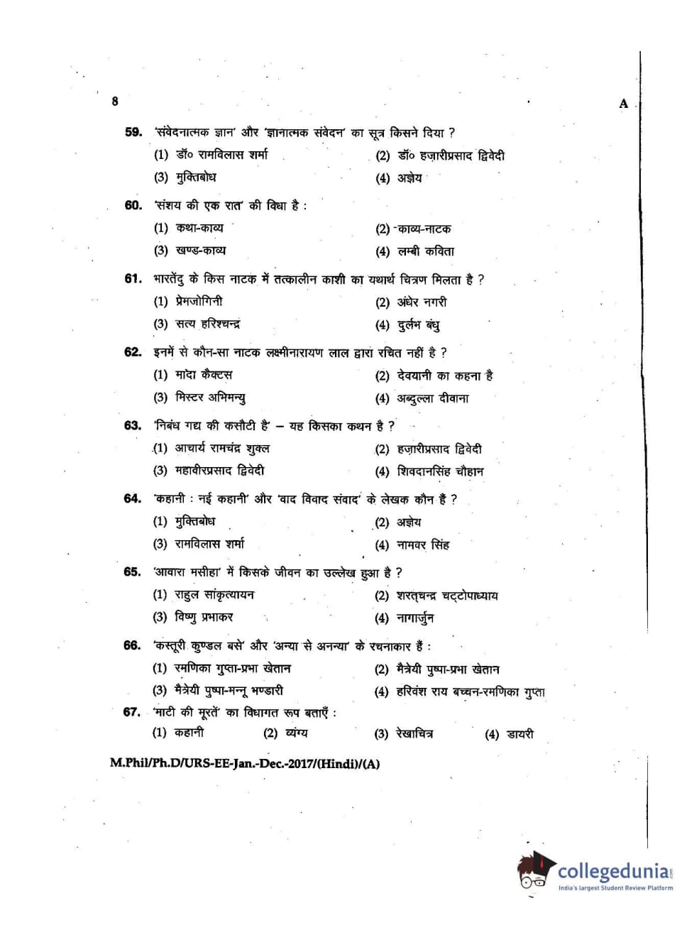 MDUCEE 2016 Ph.D/URS/M.Phil (Hindi) Set A Question Paper with Answer Key PDFs
