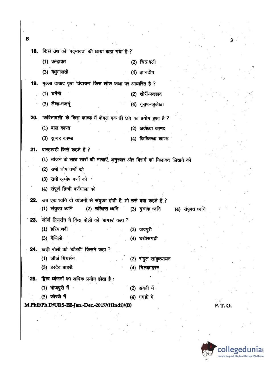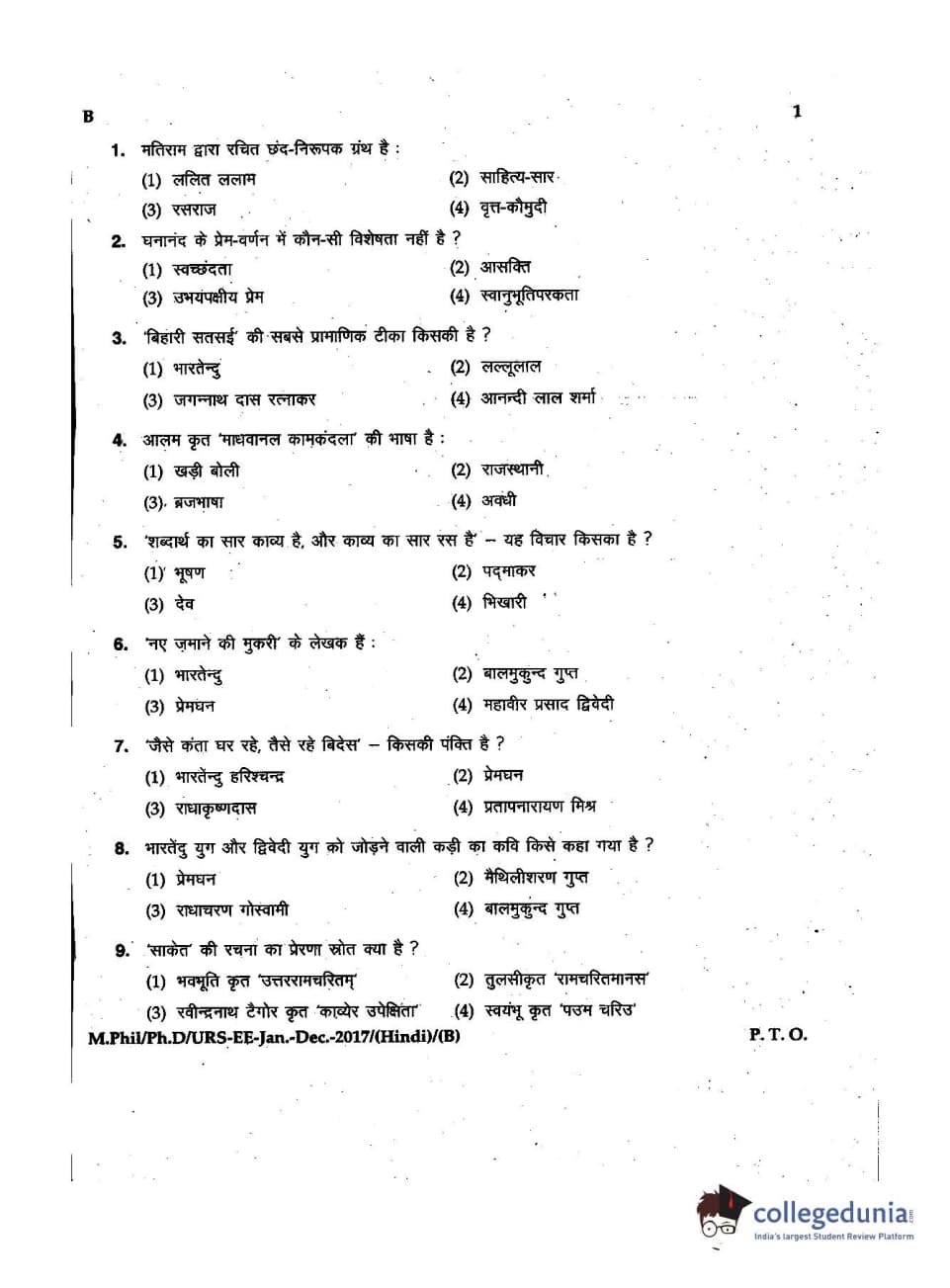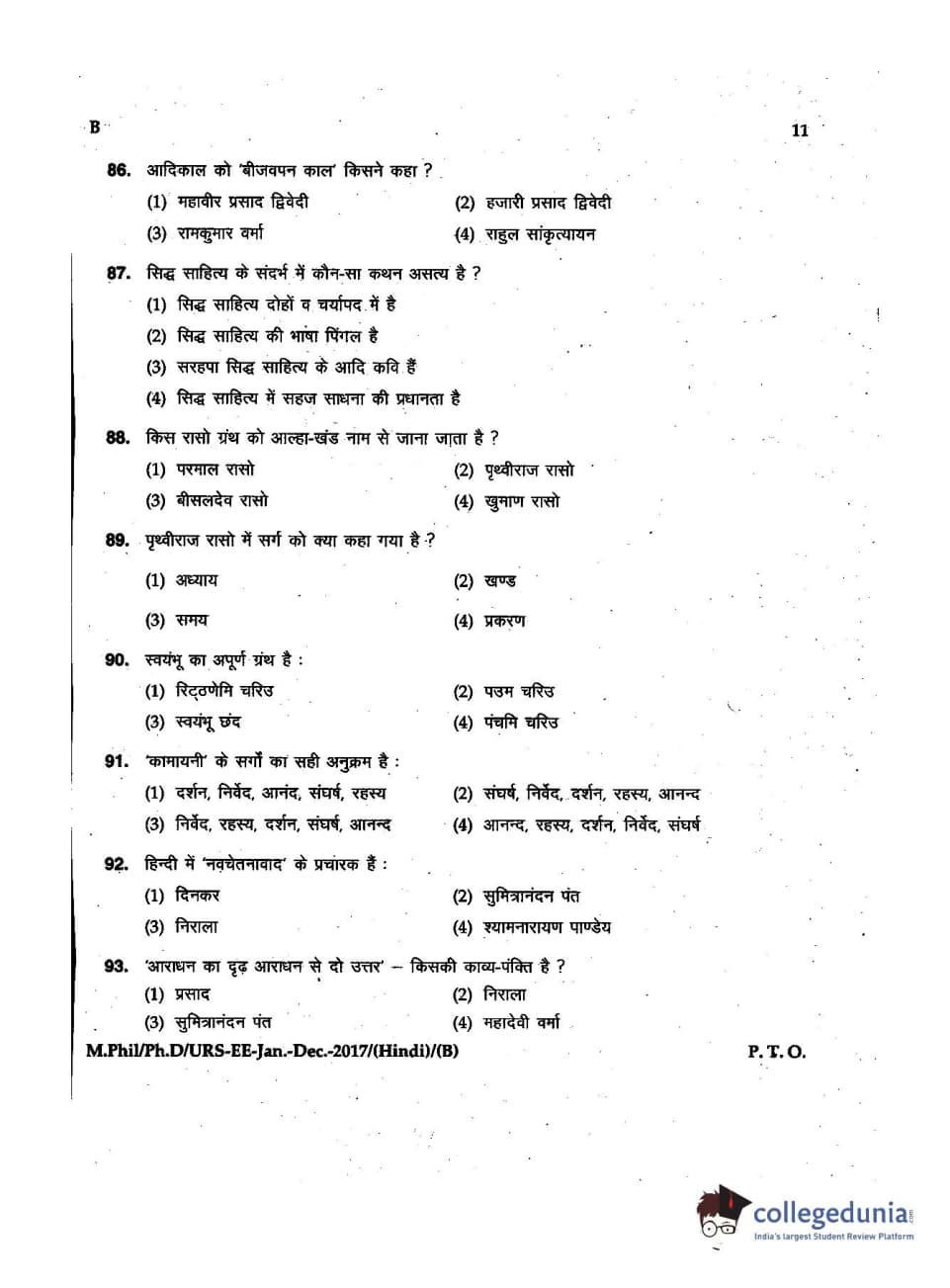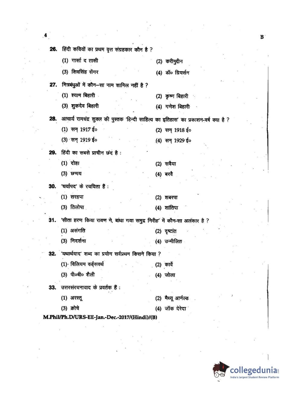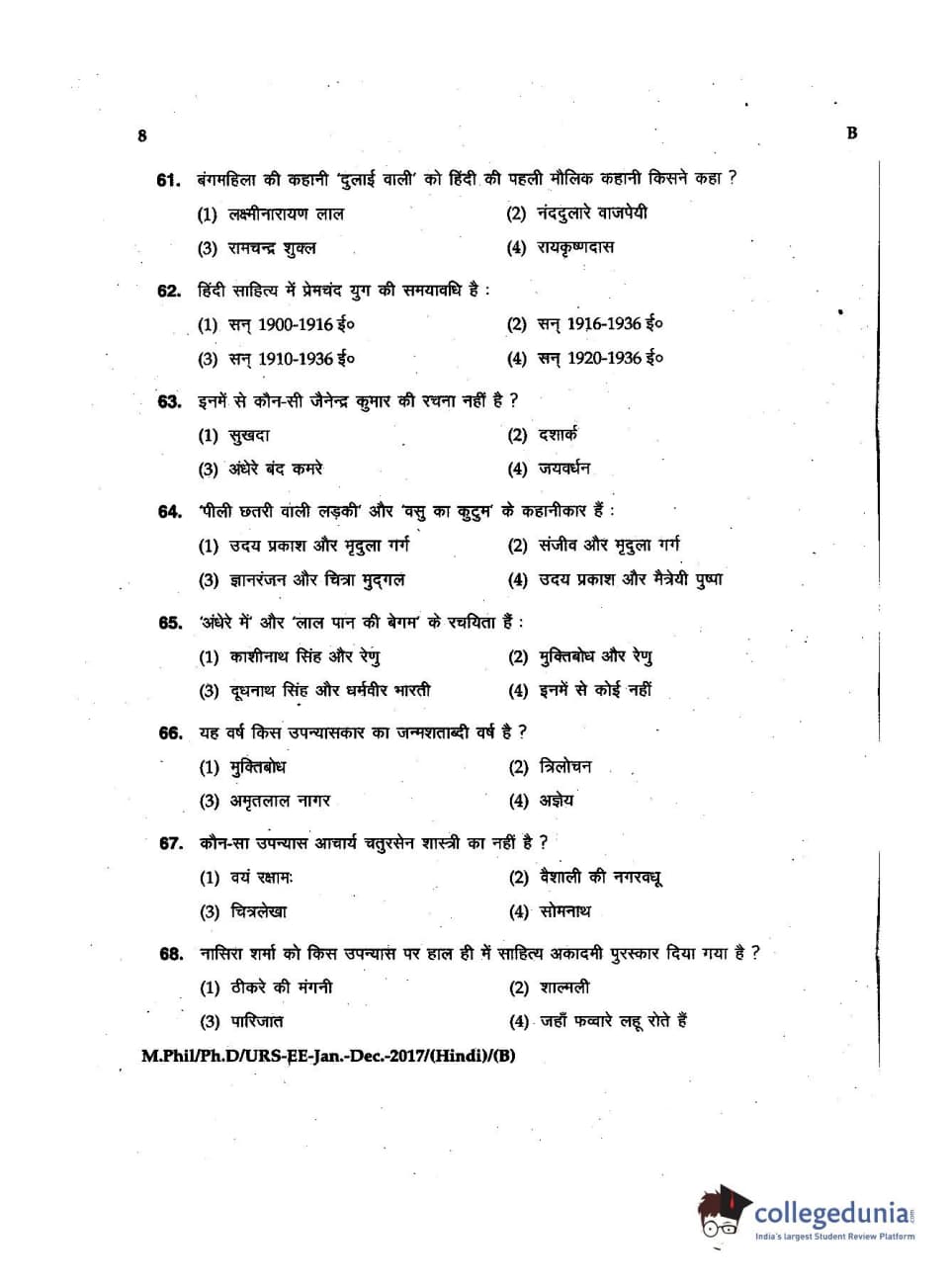 MDUCEE 2016 Ph.D/URS/M.Phil (Hindi) Set B Question Paper with Answer Key PDFs
