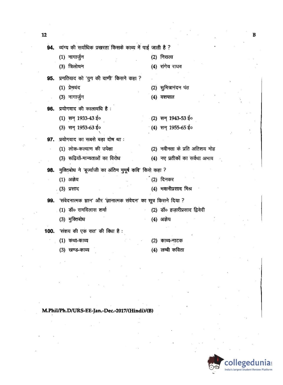 MDUCEE 2016 Ph.D/URS/M.Phil (Hindi) Set B Question paper with answer key pdf is available for download. The exam was successfully organized by Maharishi Dayanand University. The question paper comprised a total of 100 questions.