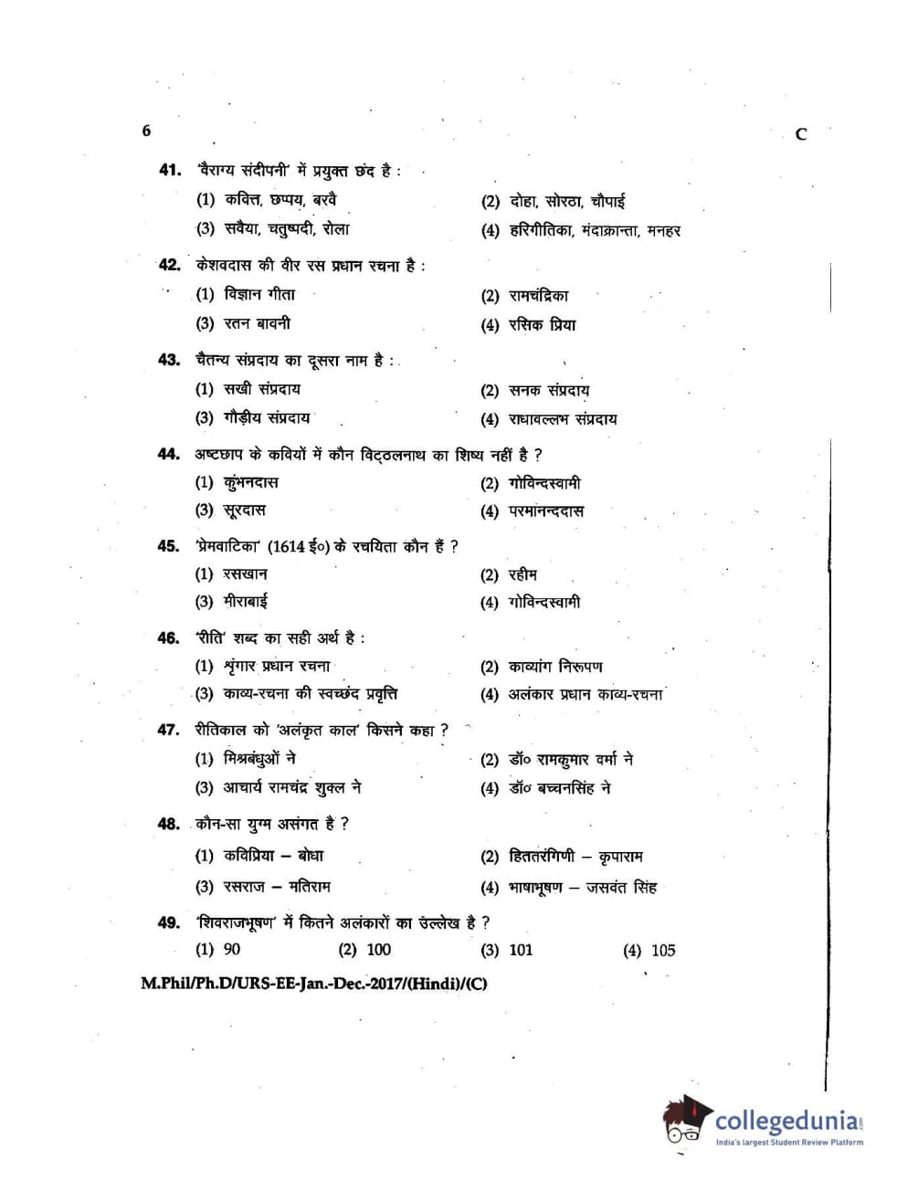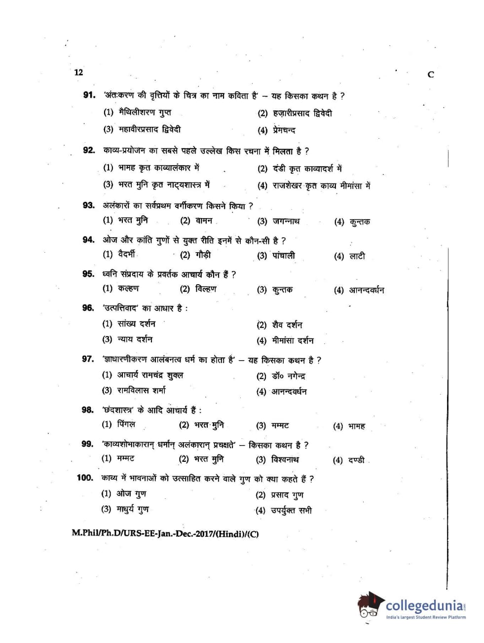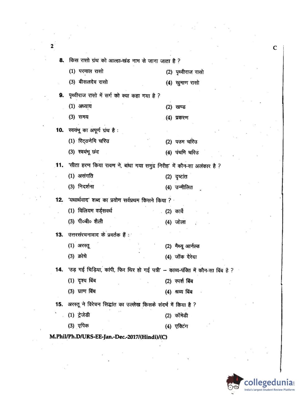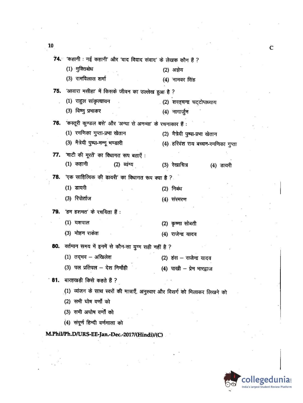 MDUCEE 2016 Ph.D/URS/M.Phil (Hindi) Set C Question Paper with Answer Key PDFs