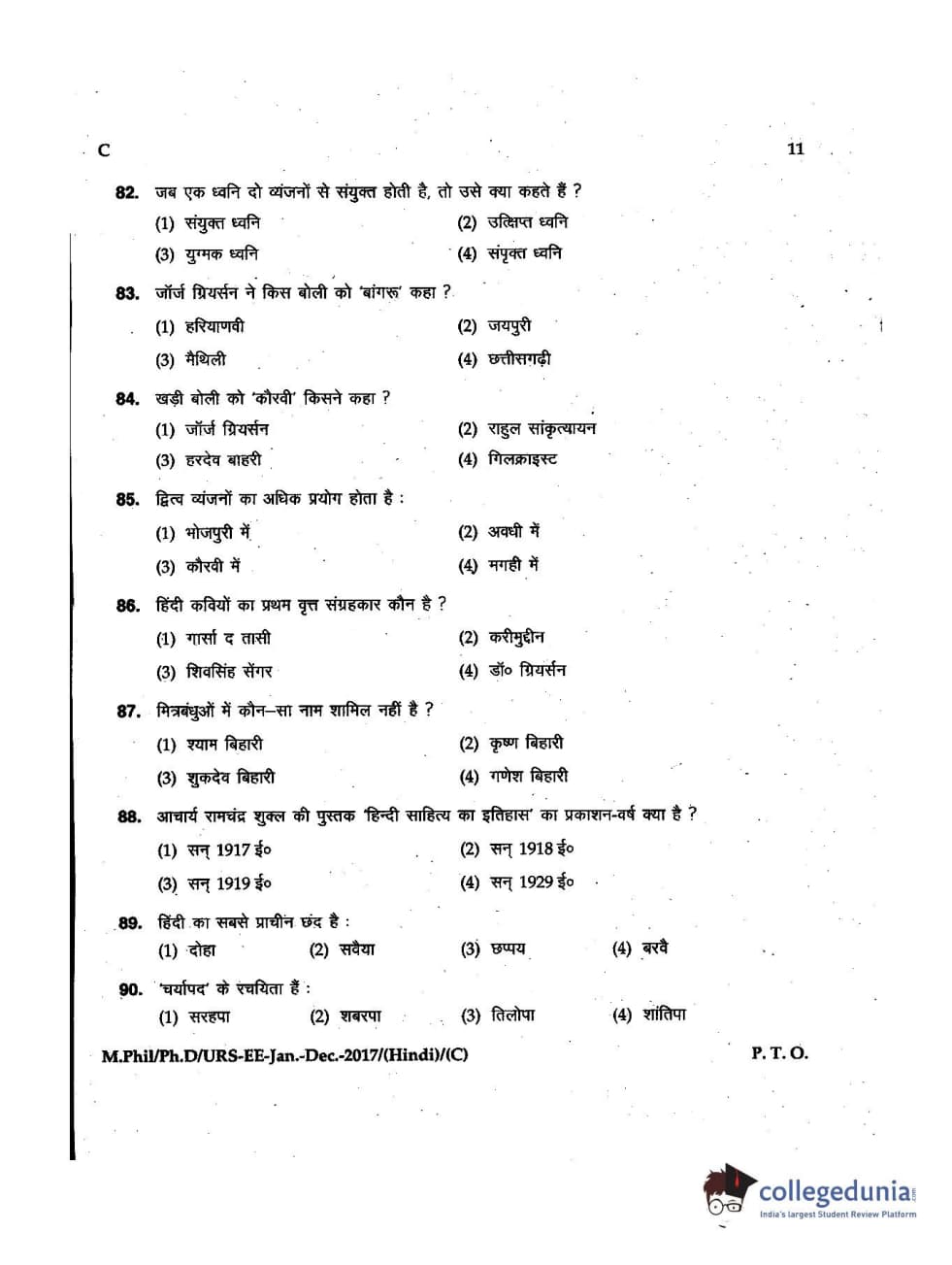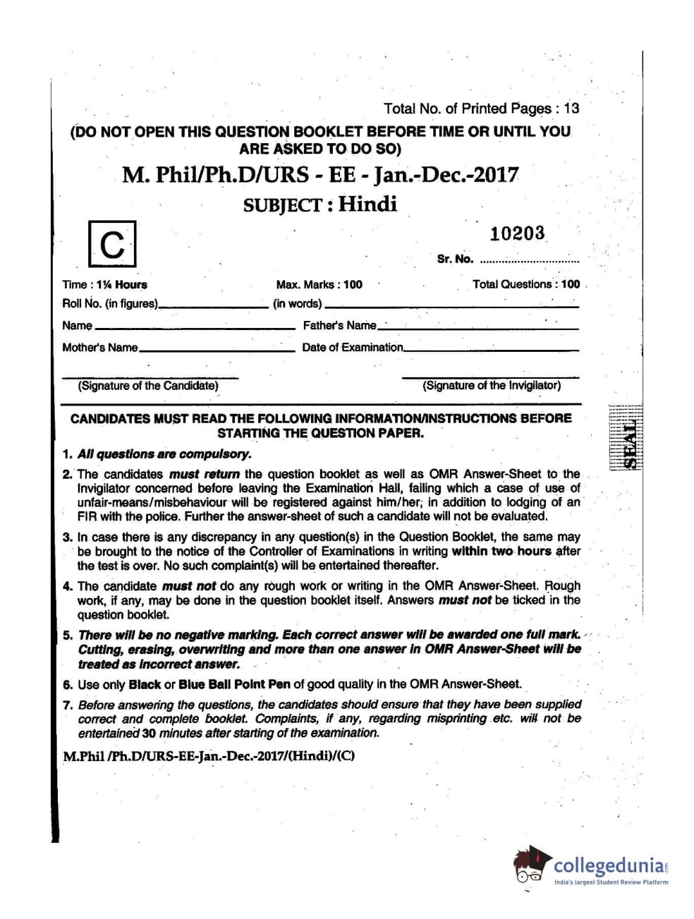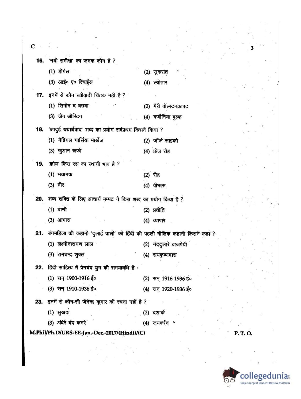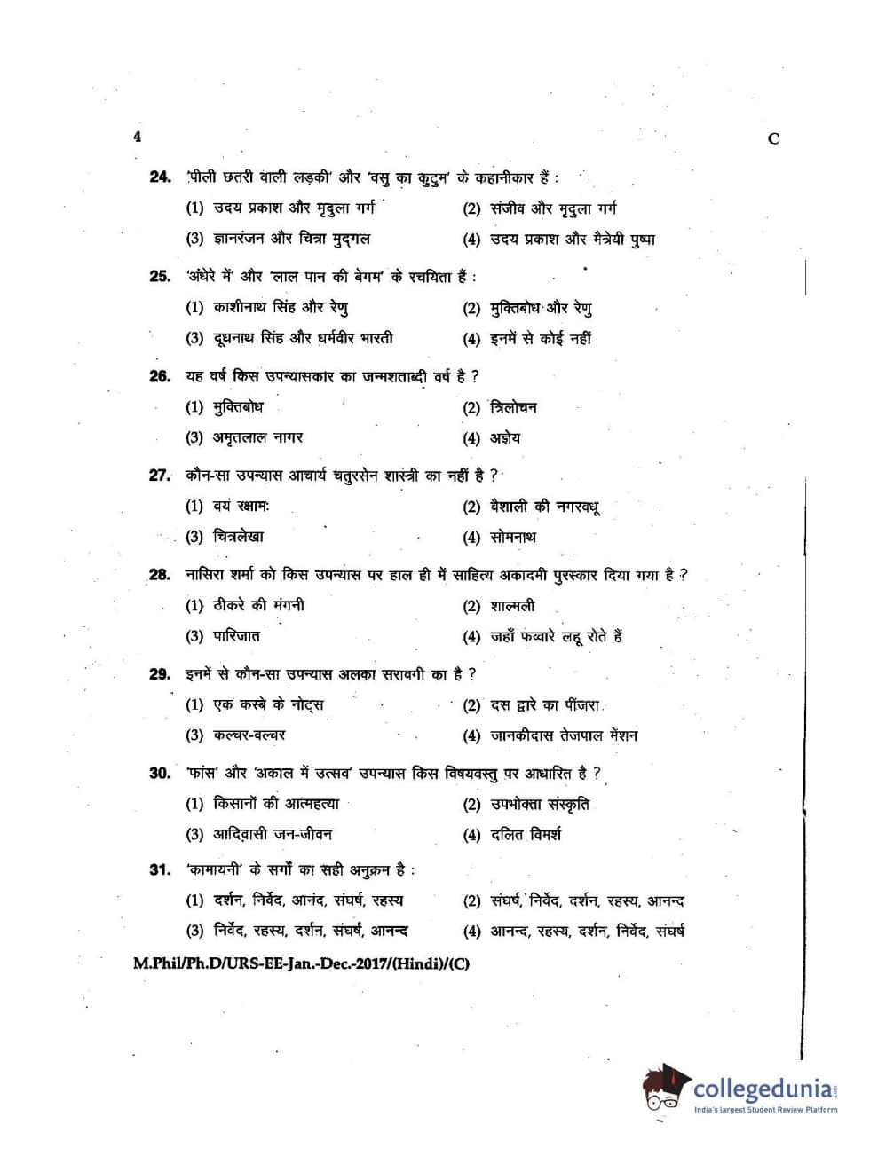 MDUCEE 2016 Ph.D/URS/M.Phil (Hindi) Set C Question Paper with Answer Key PDFs