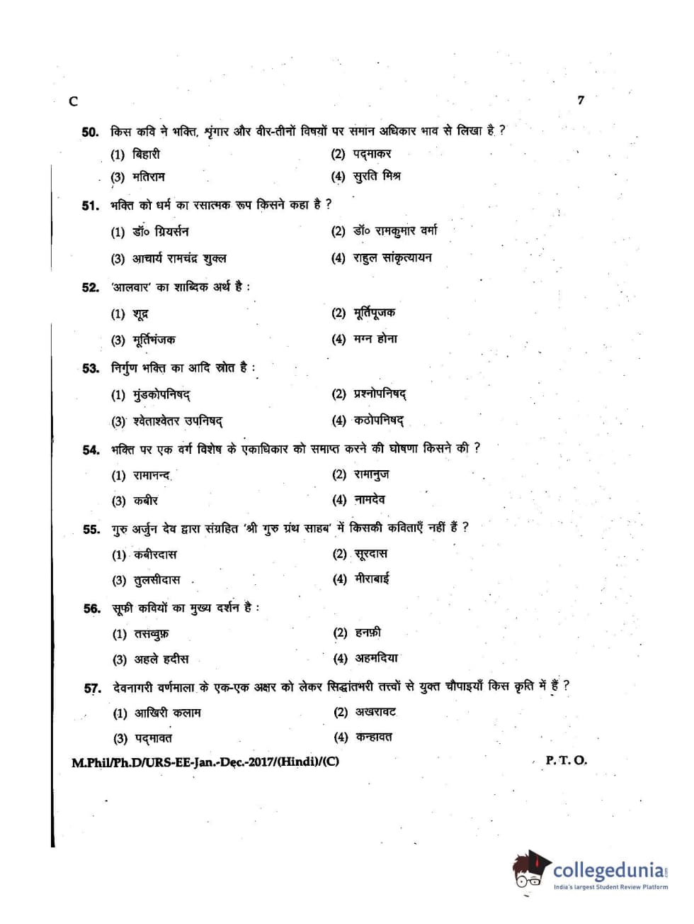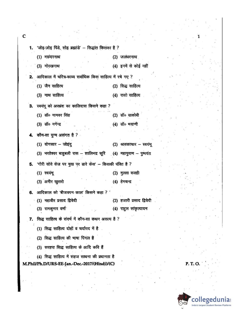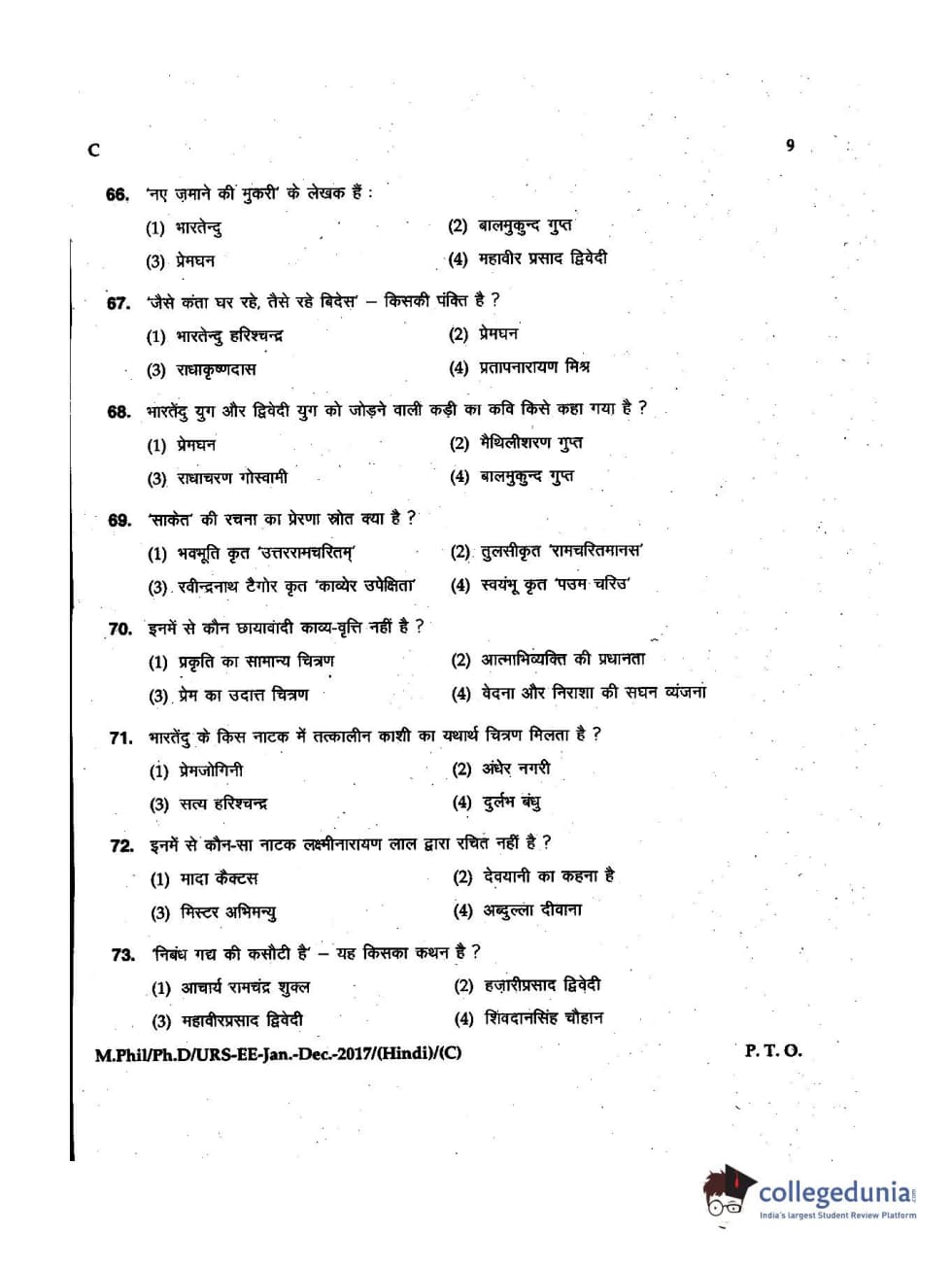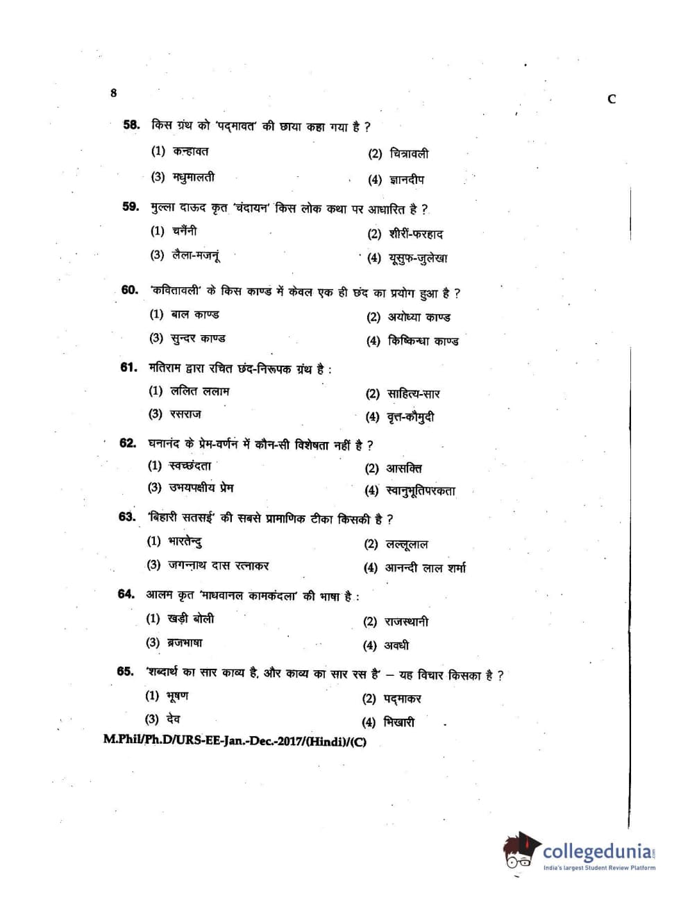 MDUCEE 2016 Ph.D/URS/M.Phil (Hindi) Set C Question Paper with Answer Key PDFs