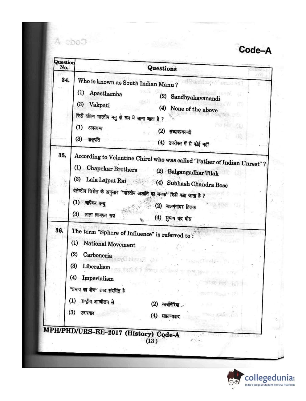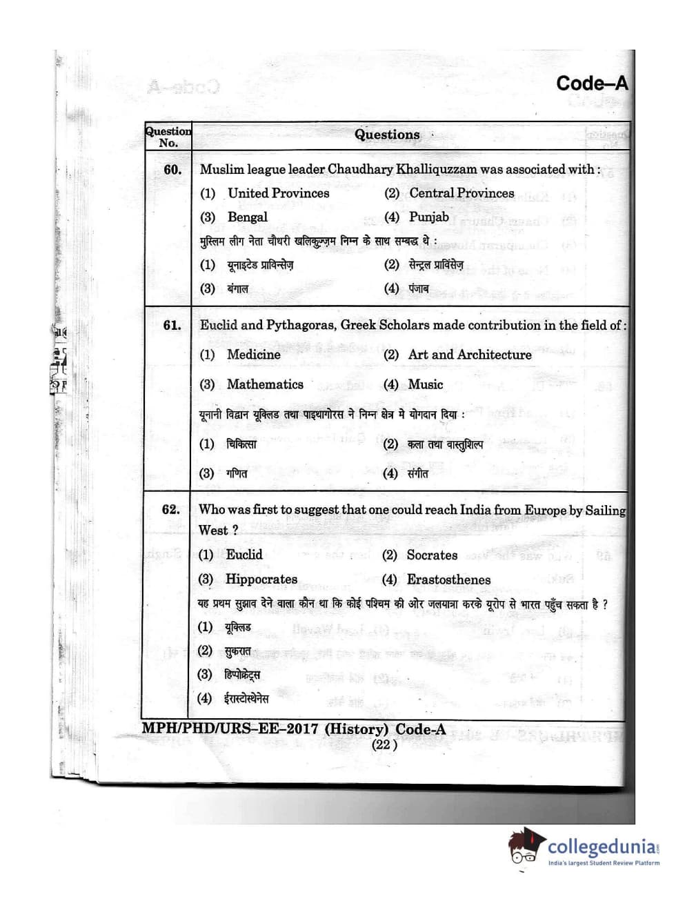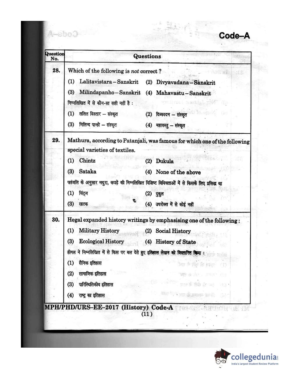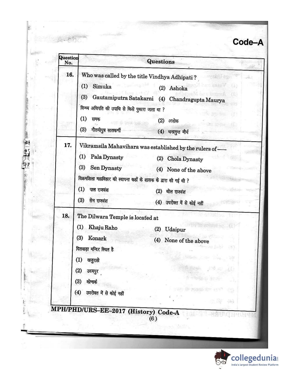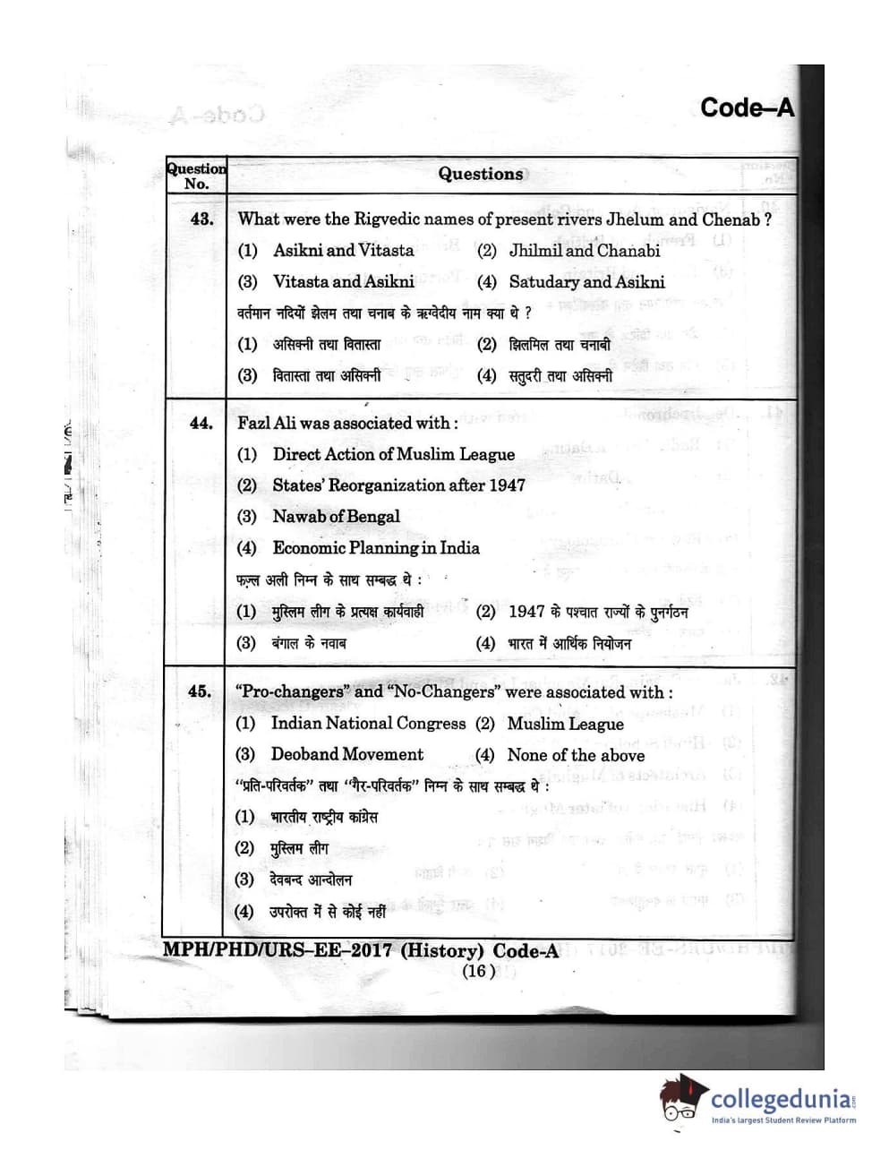 MDUCEE 2016 Ph.D/URS/M.Phil (History) Set A Question Paper with Answer Key PDFs
