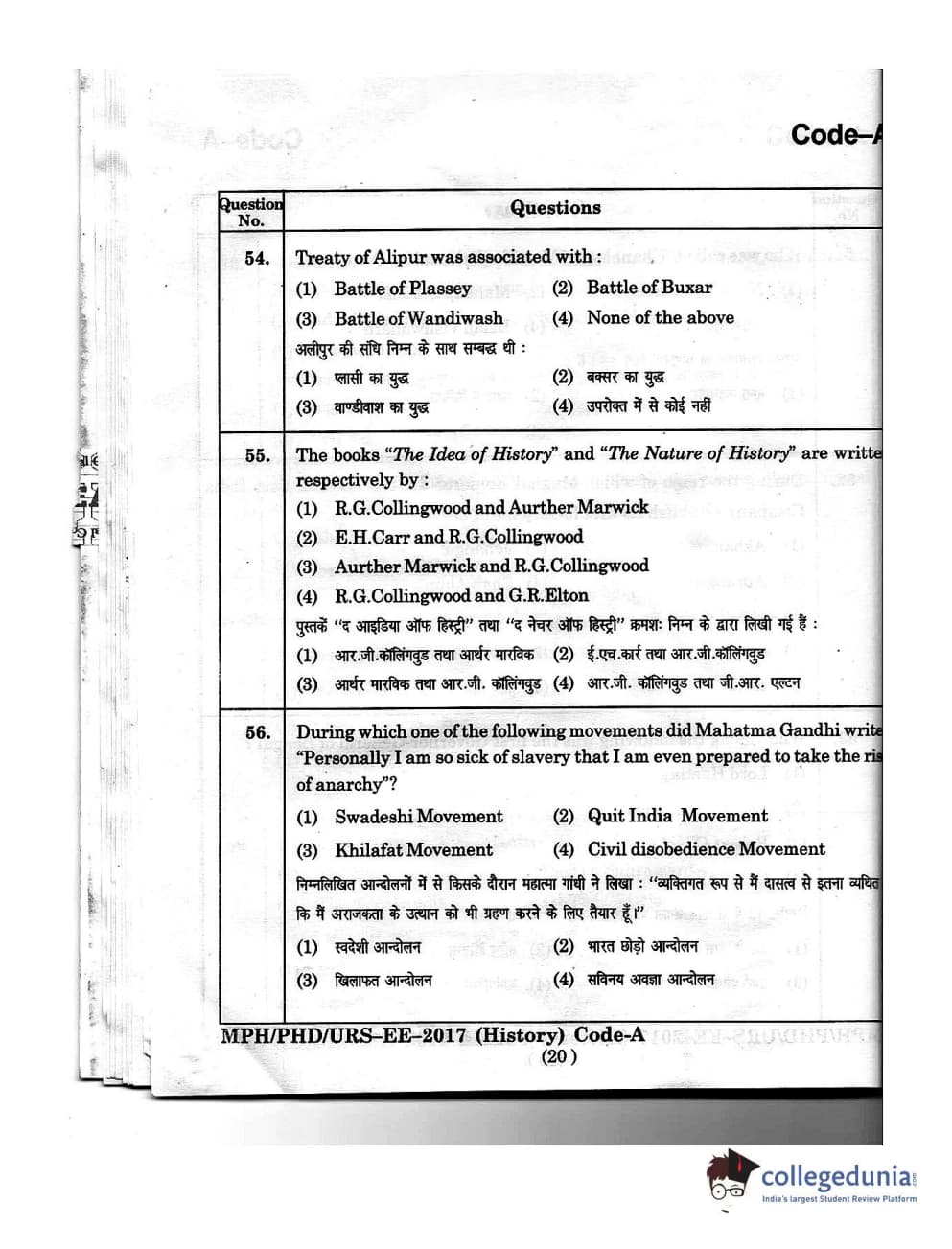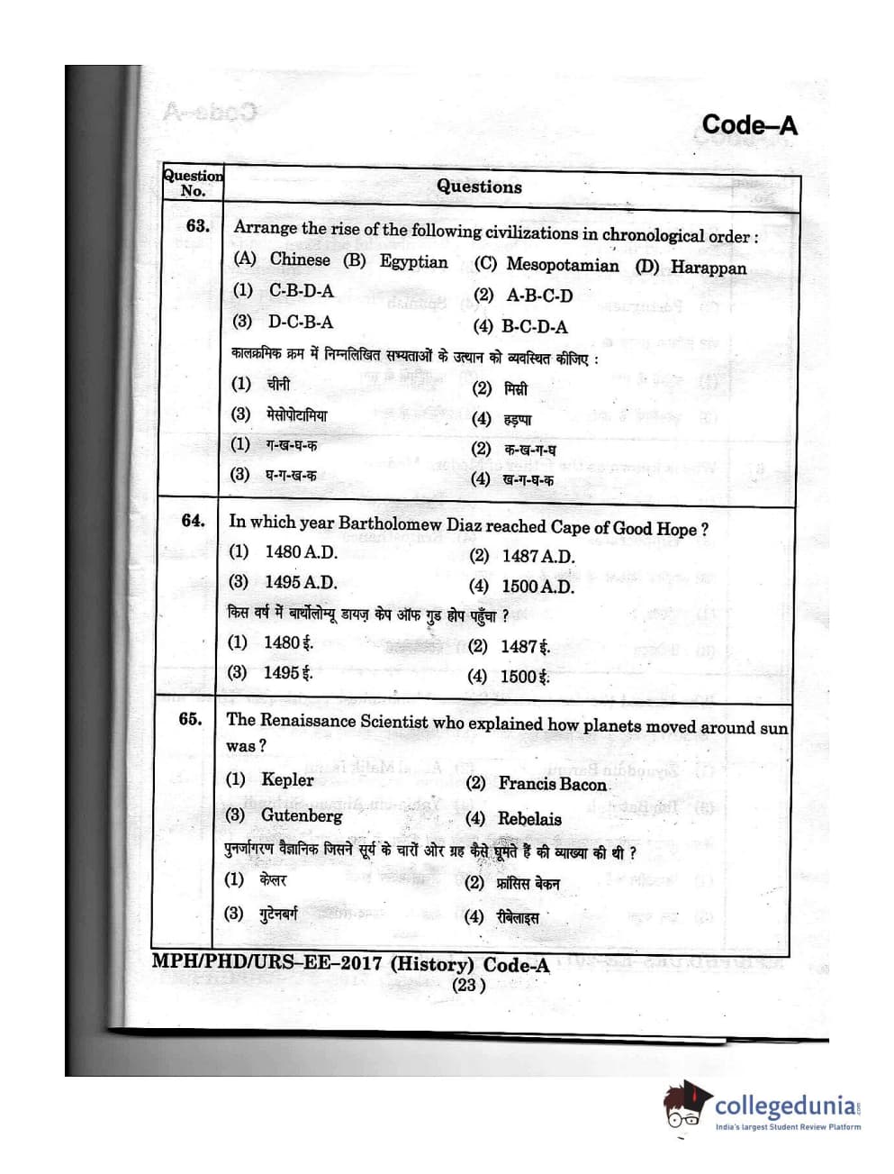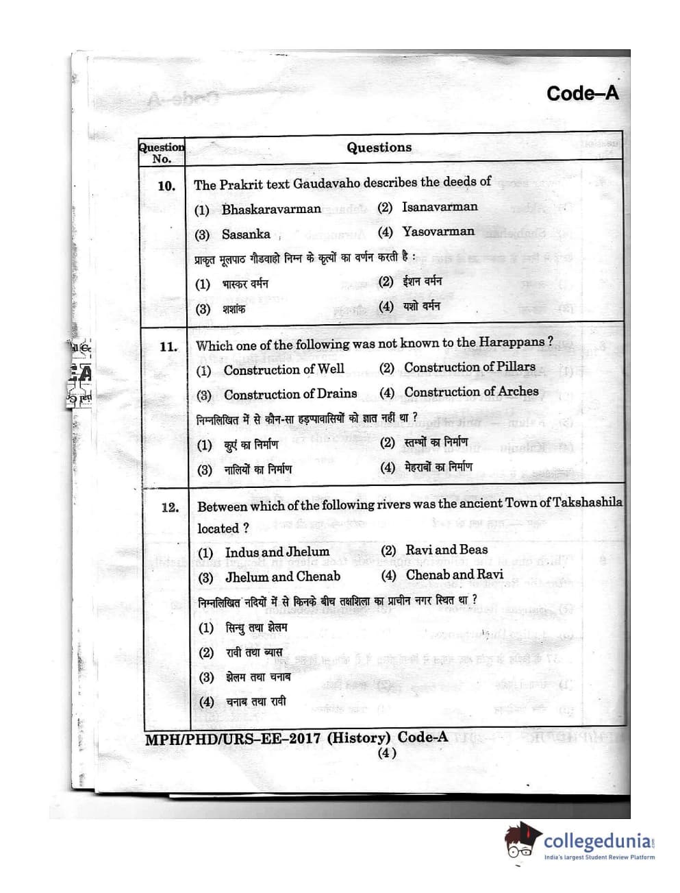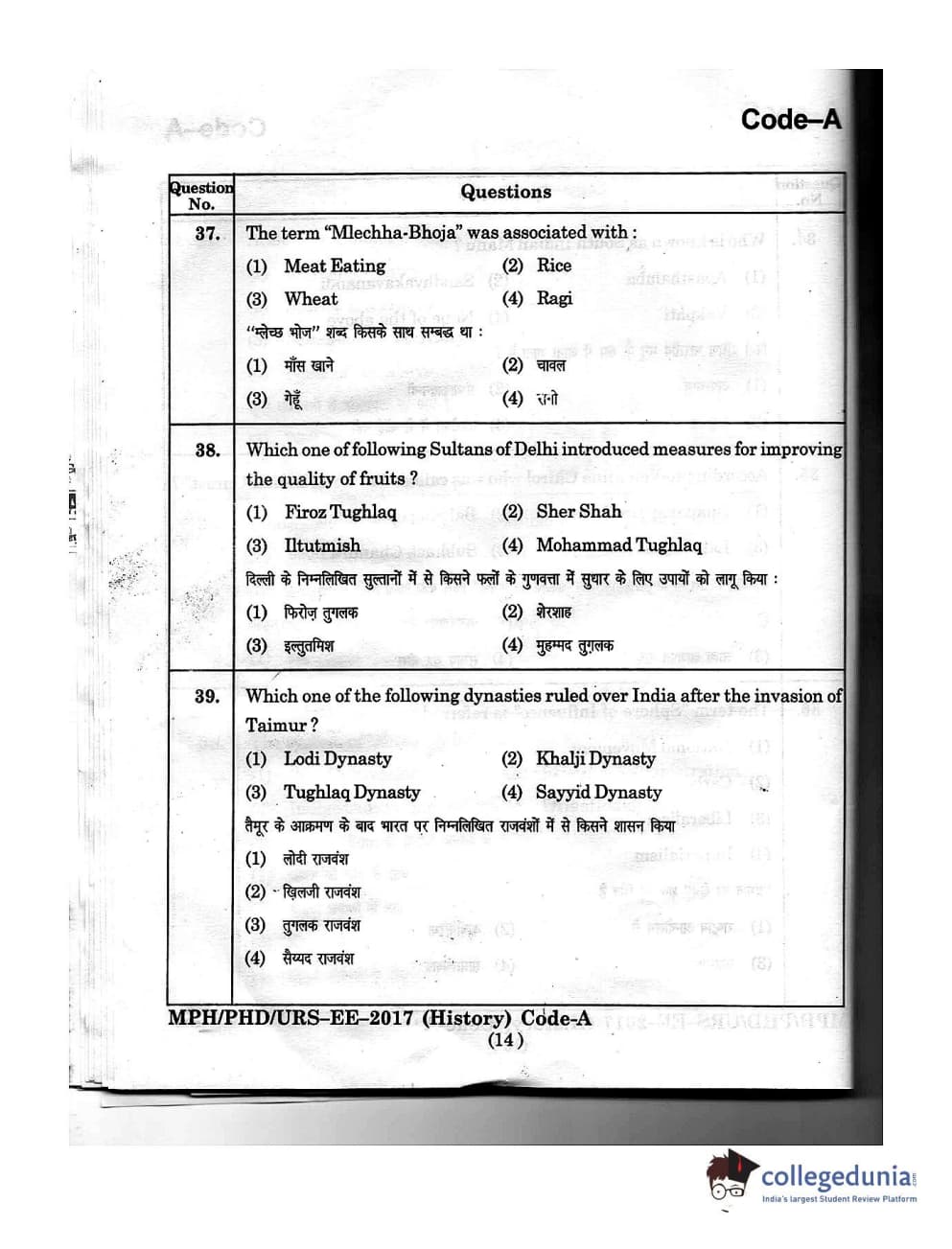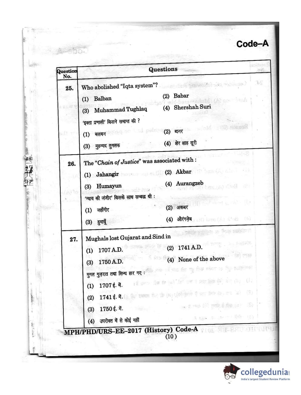 MDUCEE 2016 Ph.D/URS/M.Phil (History) Set A Question Paper with Answer Key PDFs