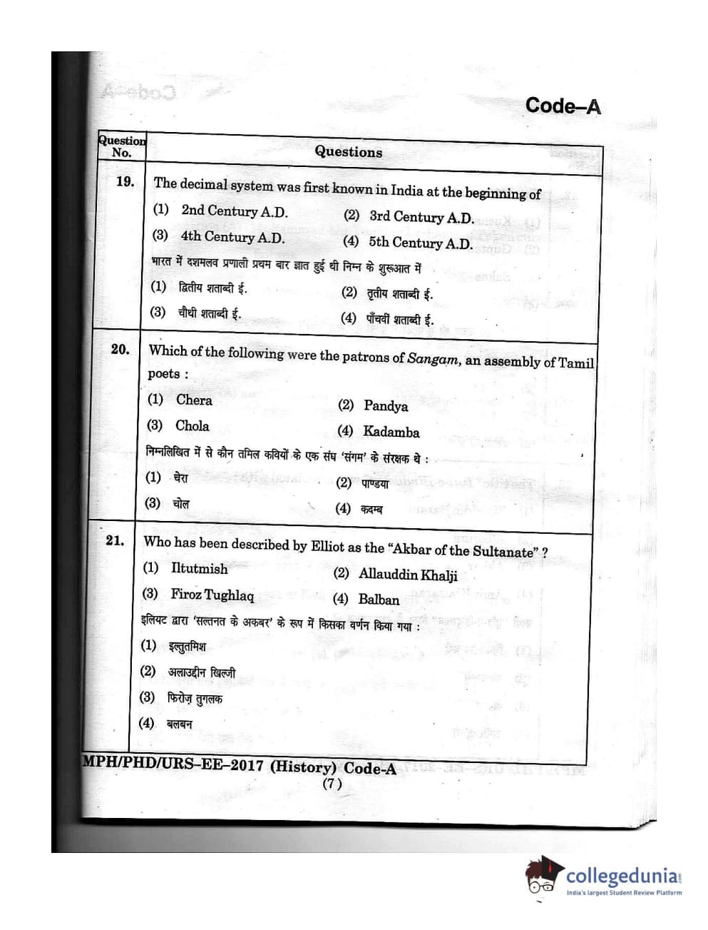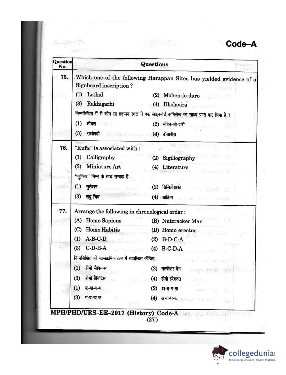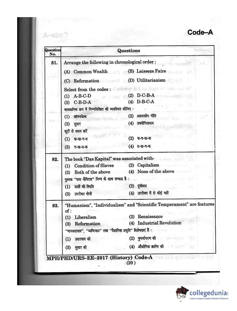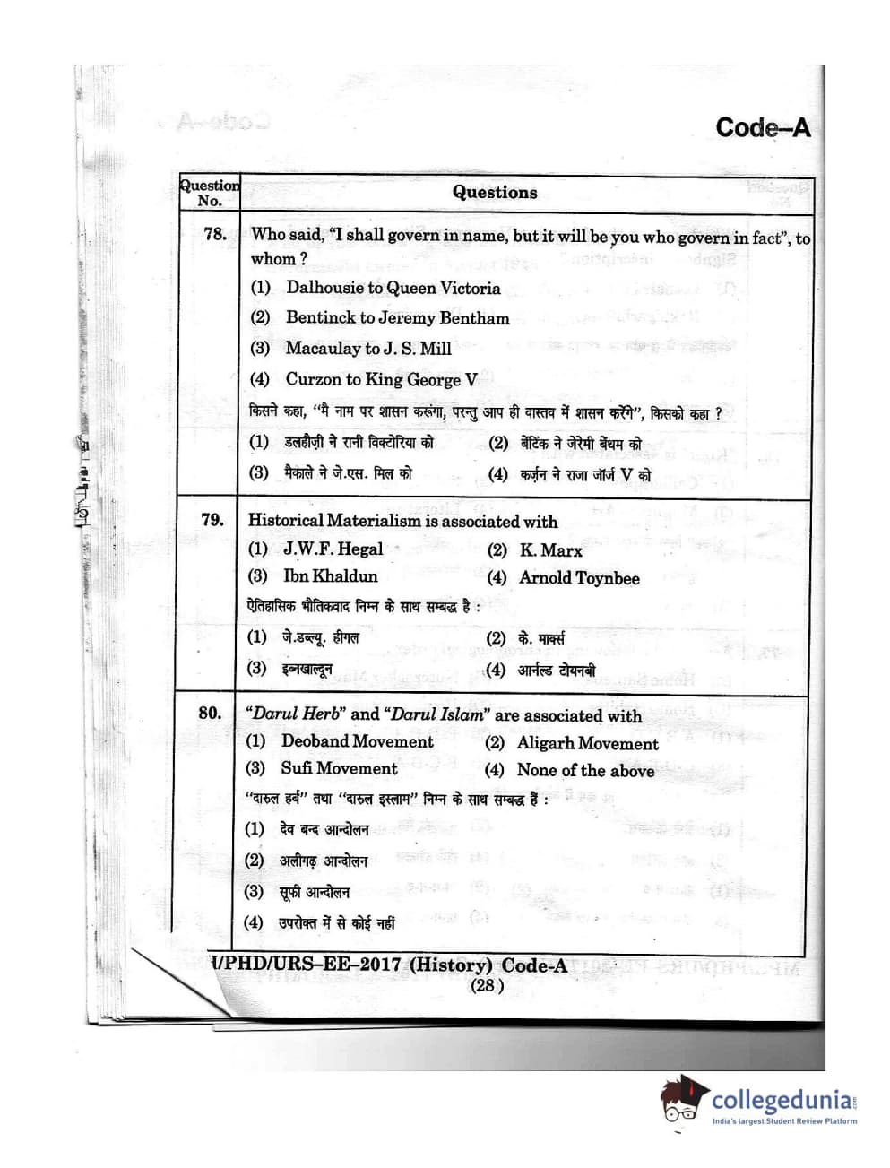 MDUCEE 2016 Ph.D/URS/M.Phil (History) Set A Question Paper with Answer Key PDFs