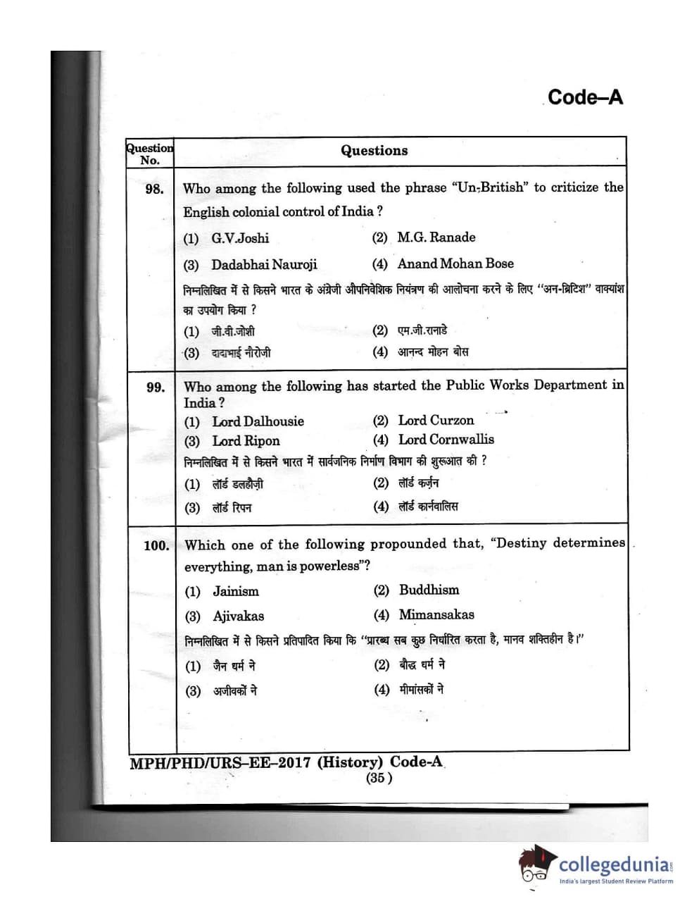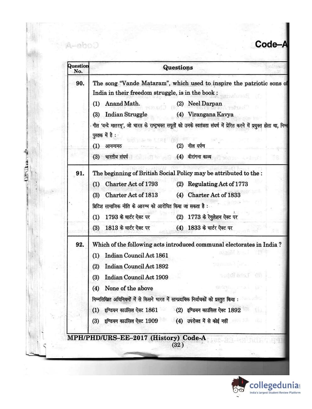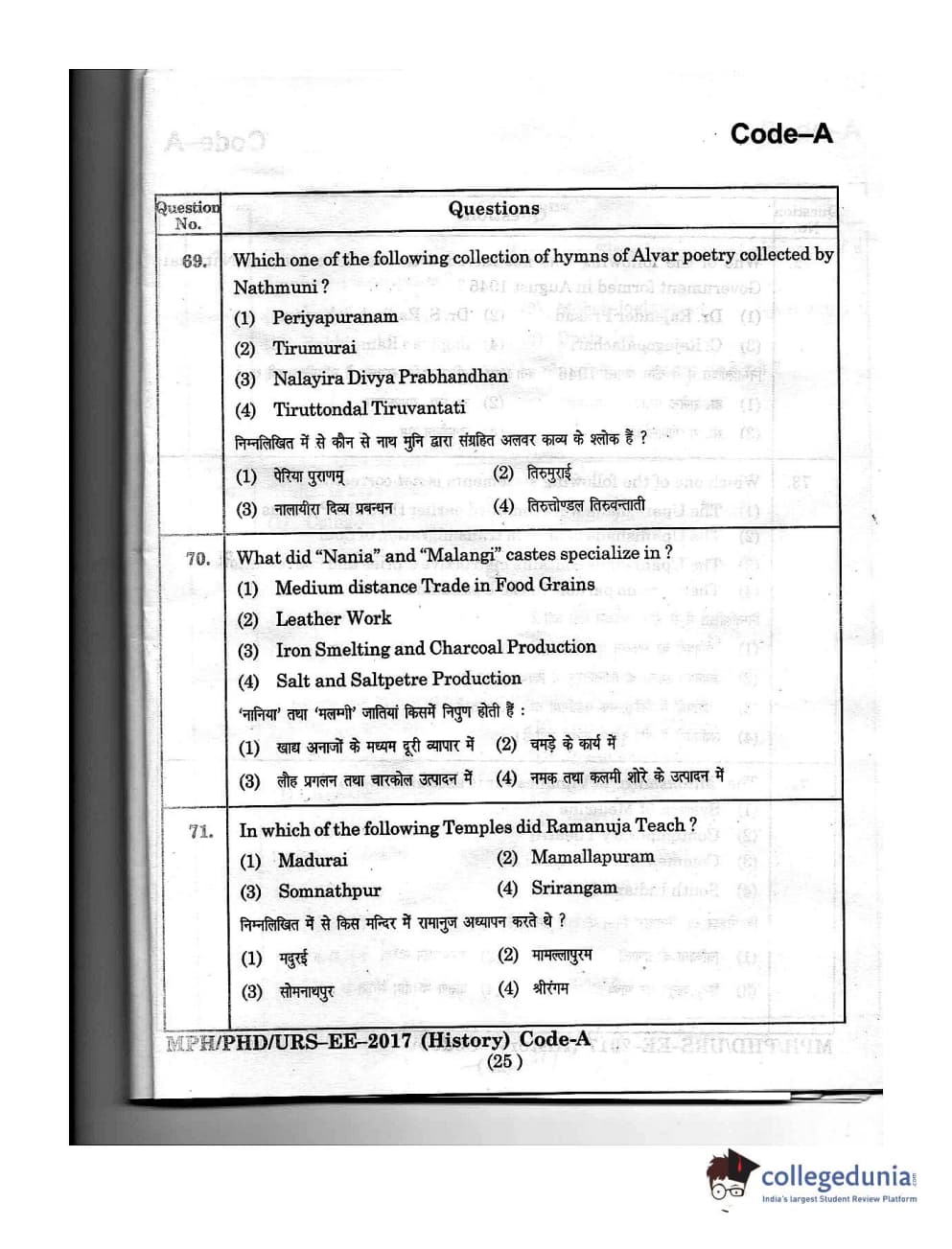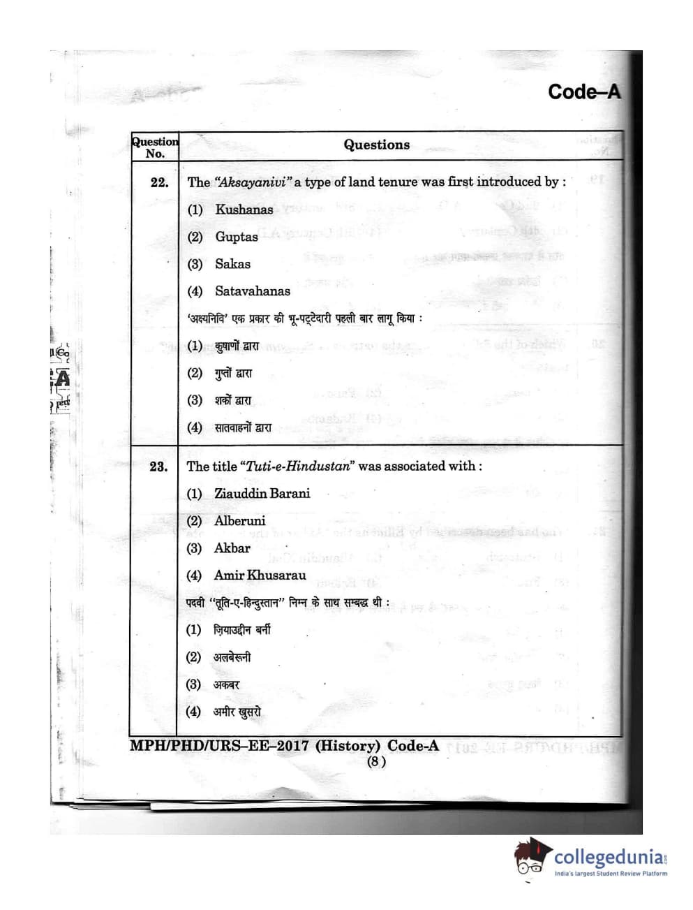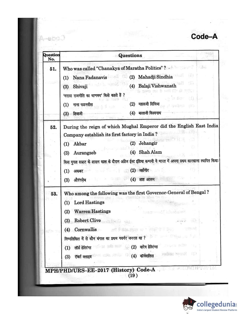 MDUCEE 2016 Ph.D/URS/M.Phil (History) Set A Question Paper with Answer Key PDFs