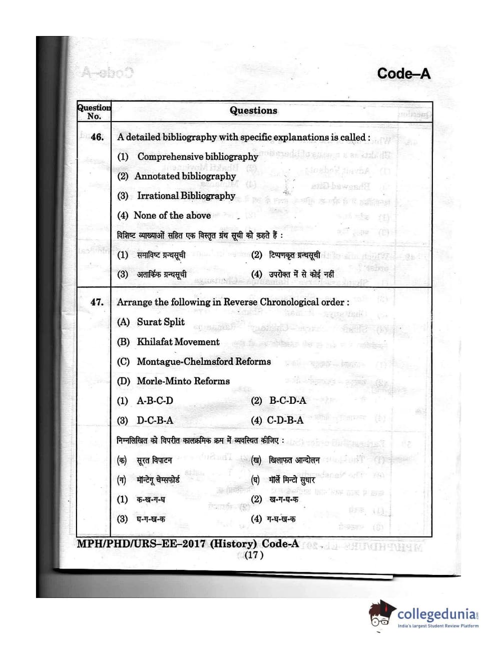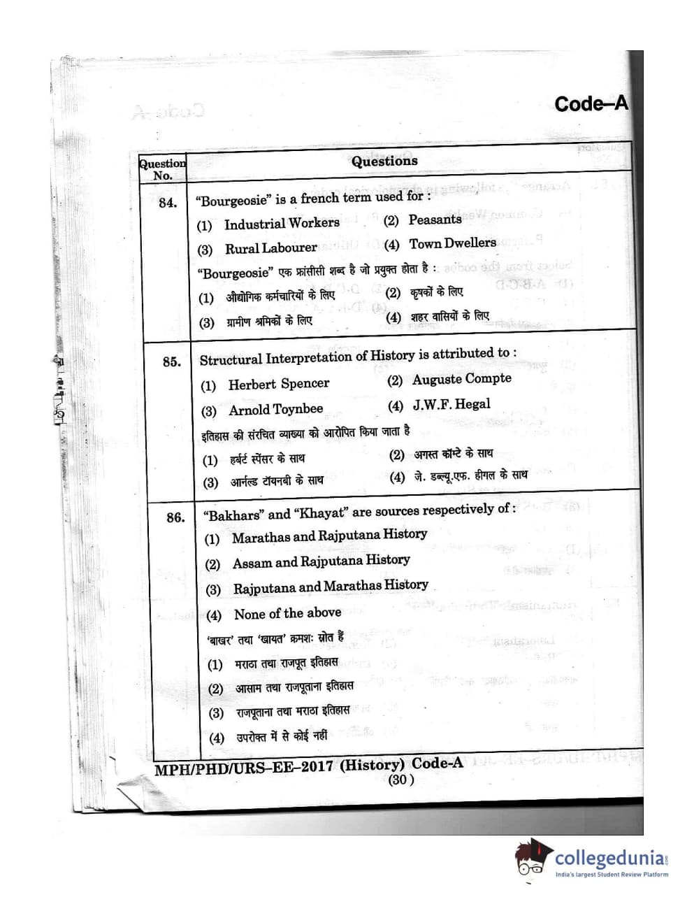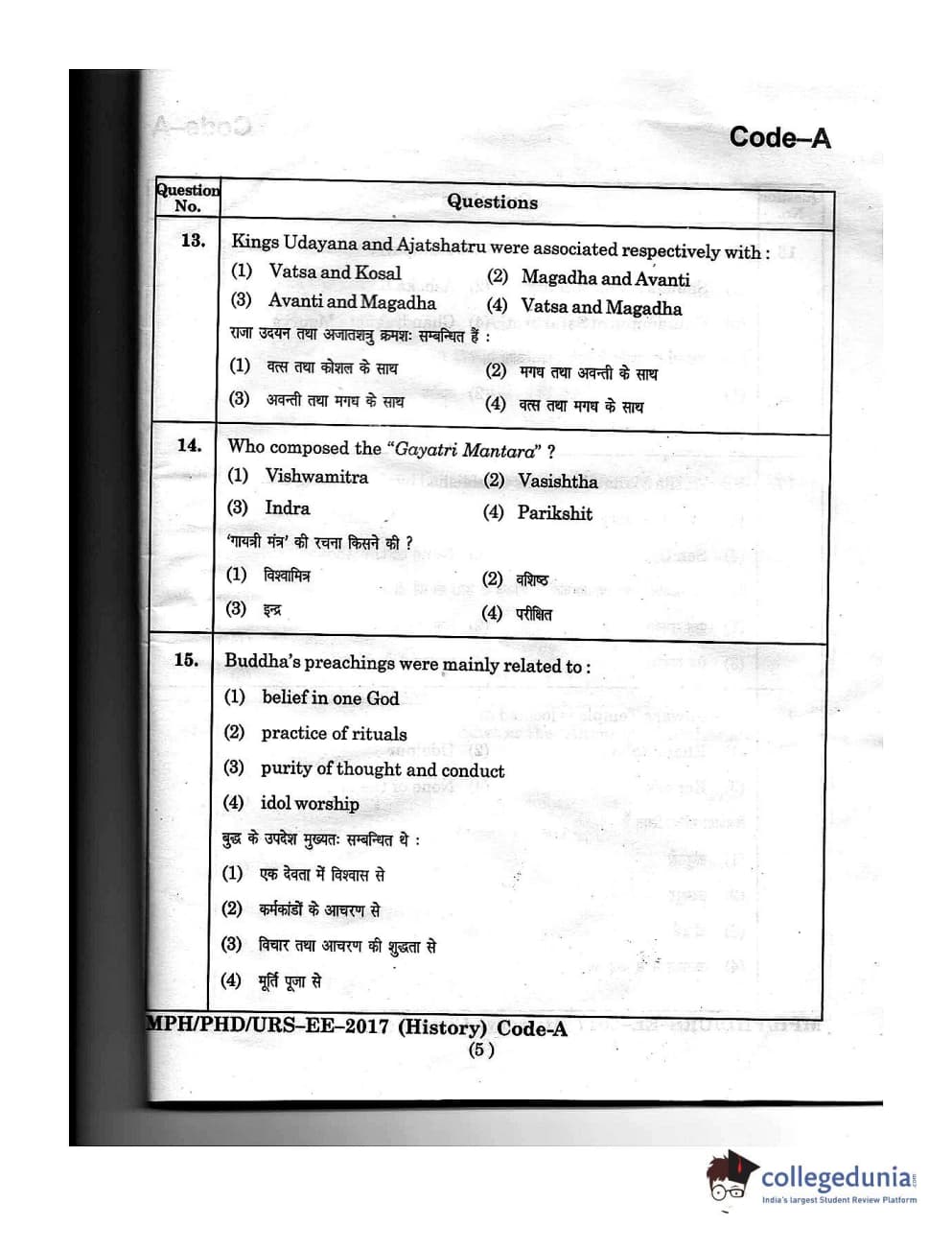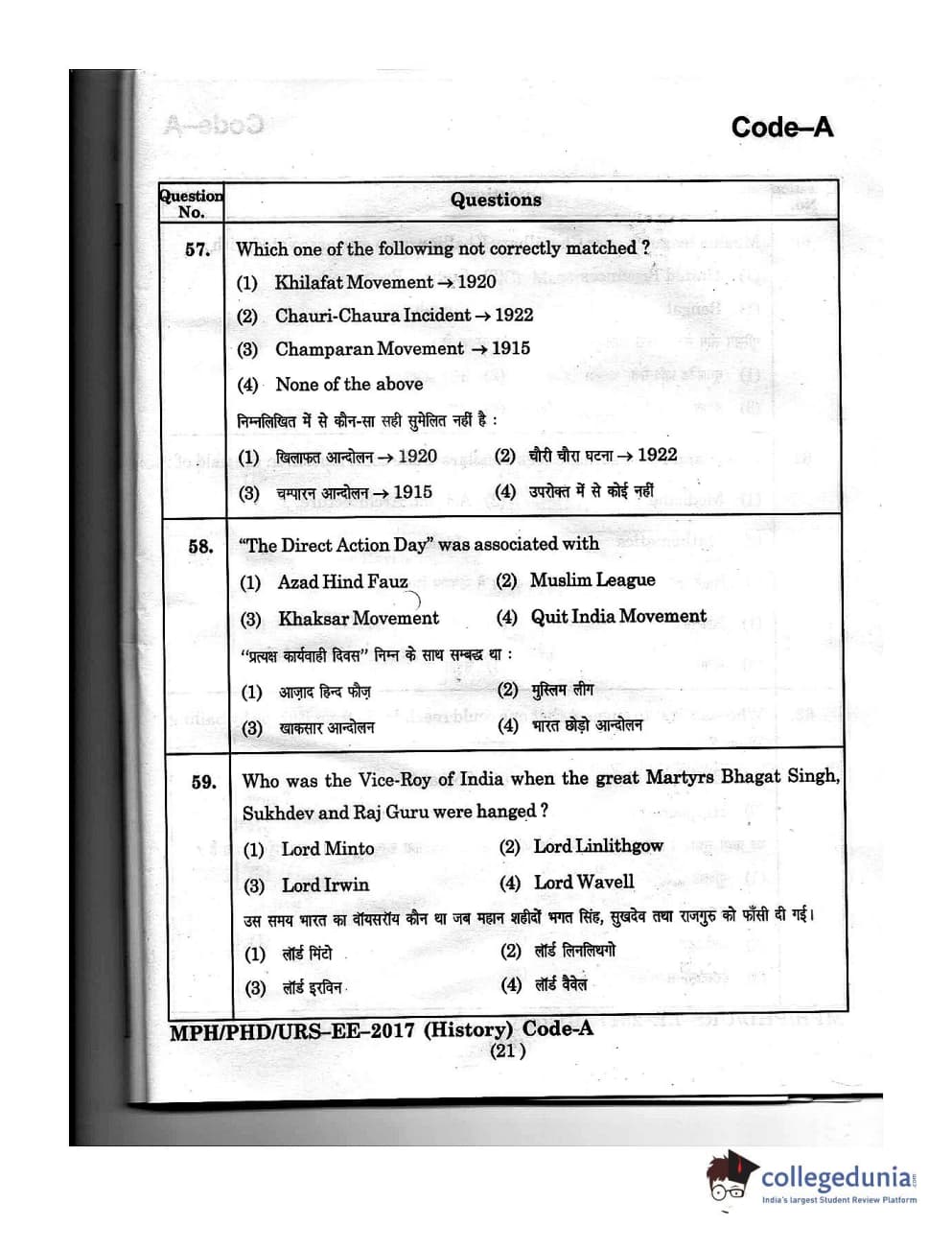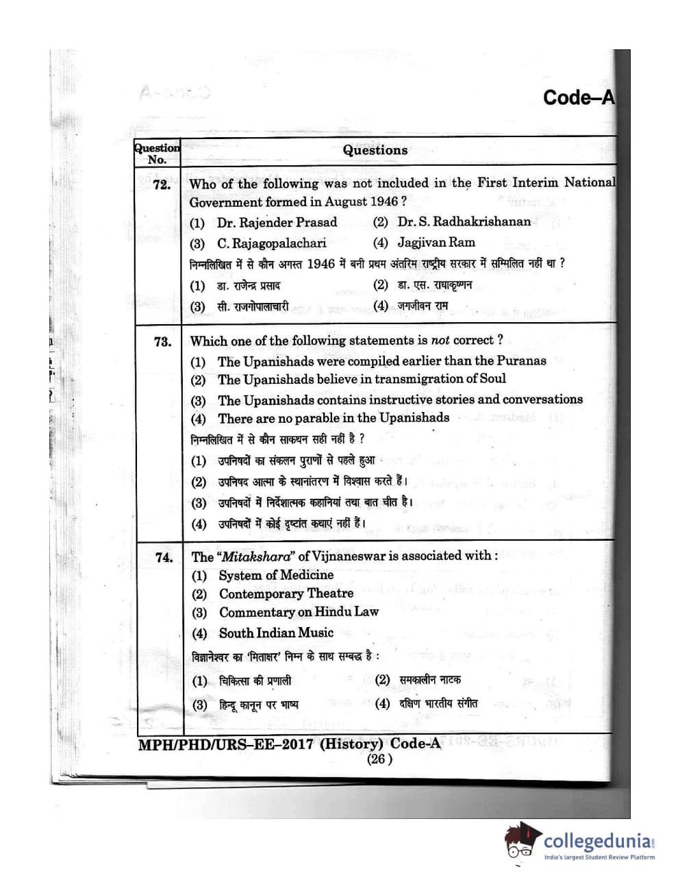 MDUCEE 2016 Ph.D/URS/M.Phil (History) Set A Question Paper with Answer Key PDFs