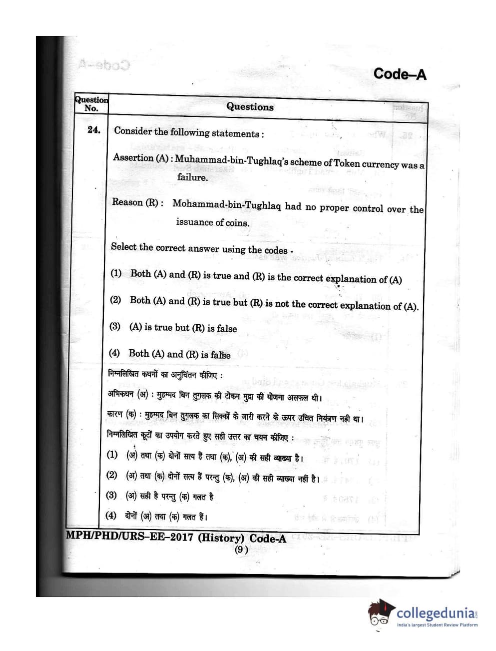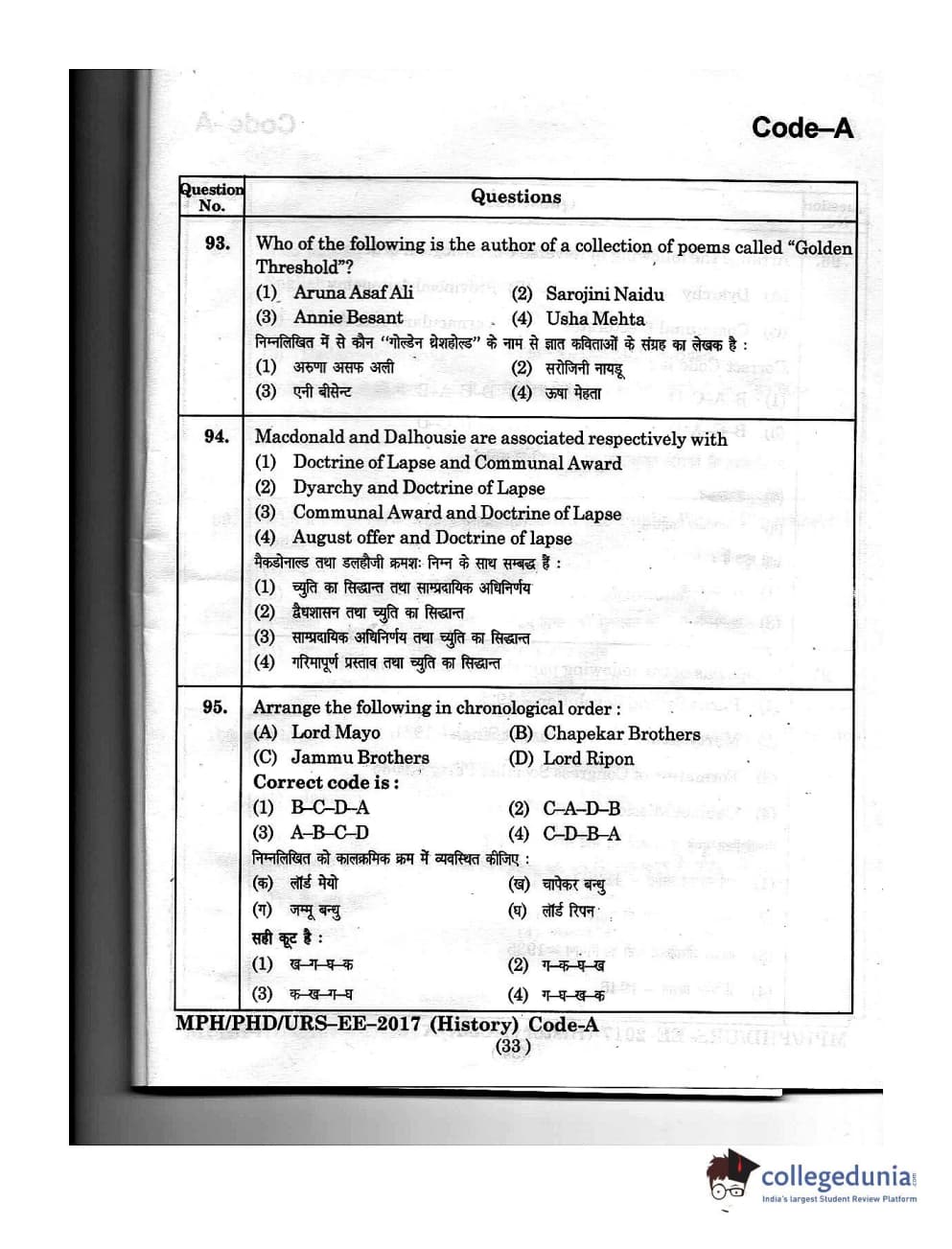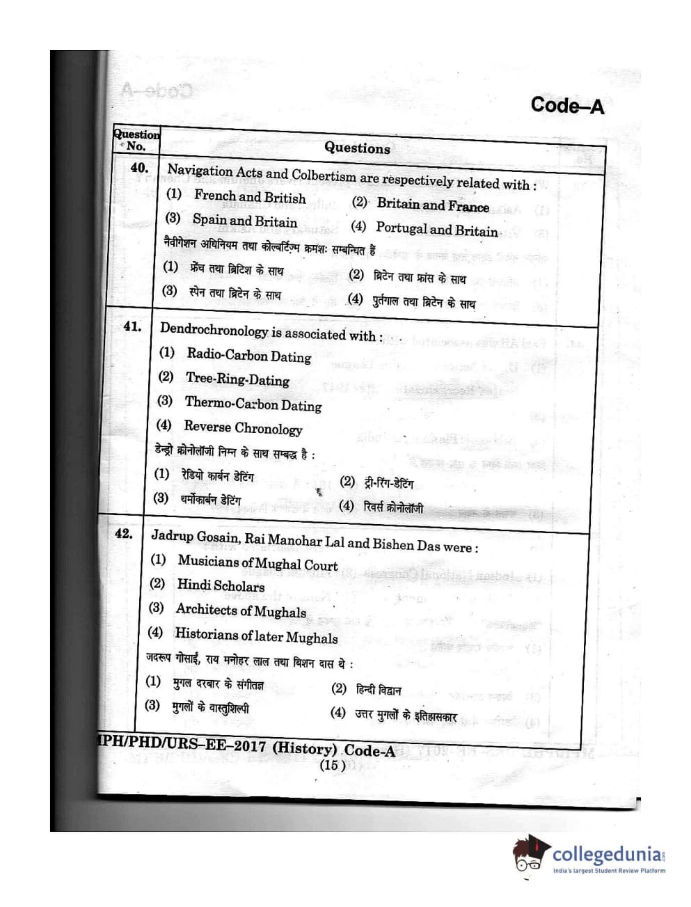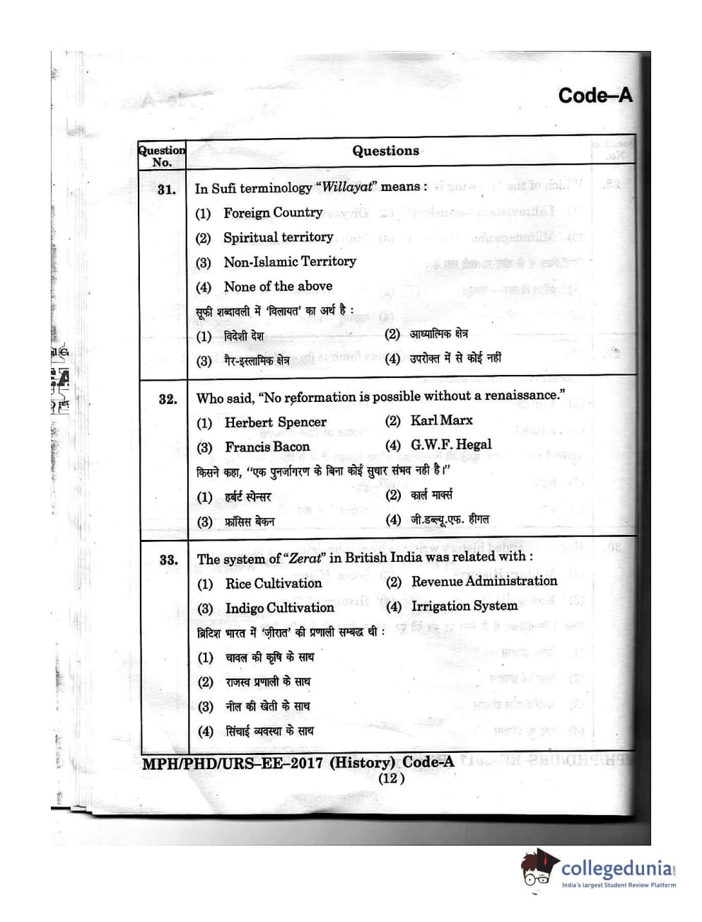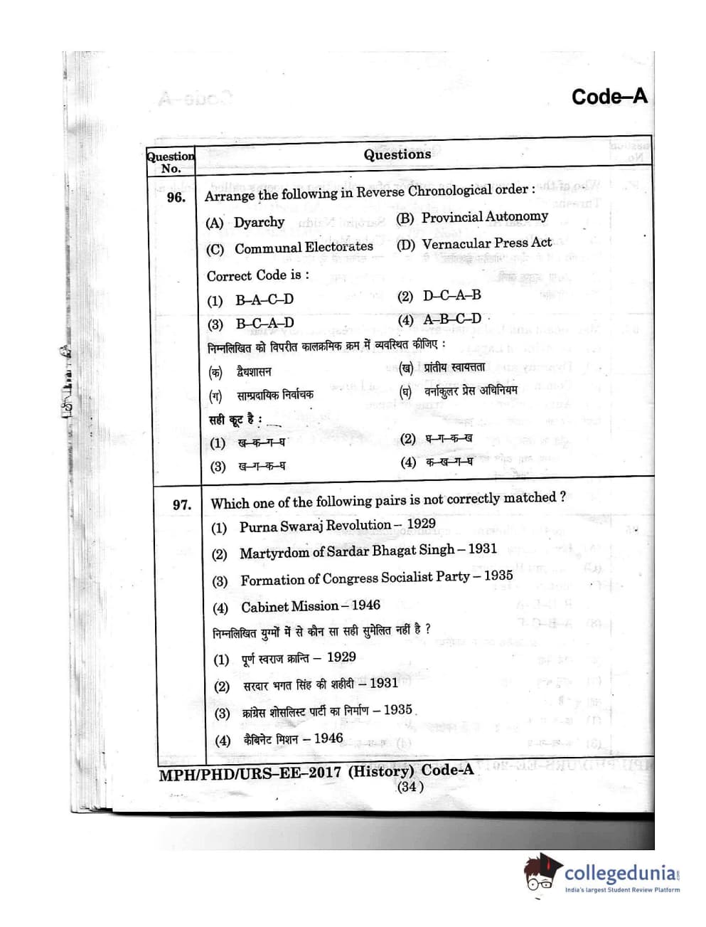 MDUCEE 2016 Ph.D/URS/M.Phil (History) Set A Question Paper with Answer Key PDFs