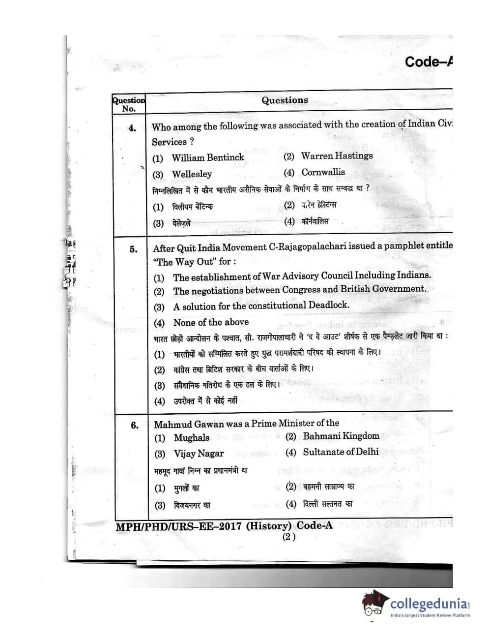 | MDUCEE 2016 Ph.D/URS/M.Phil (History) Set A Question Paper PDF | MDUCEE 2016 Ph.D/URS/M.Phil (History) Set A Answer Key PDF |