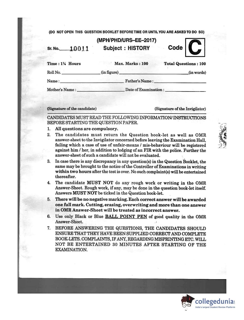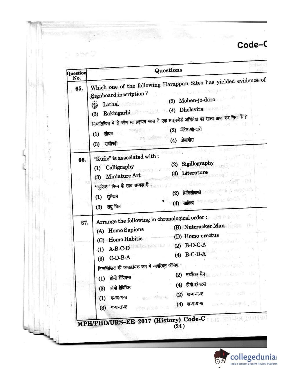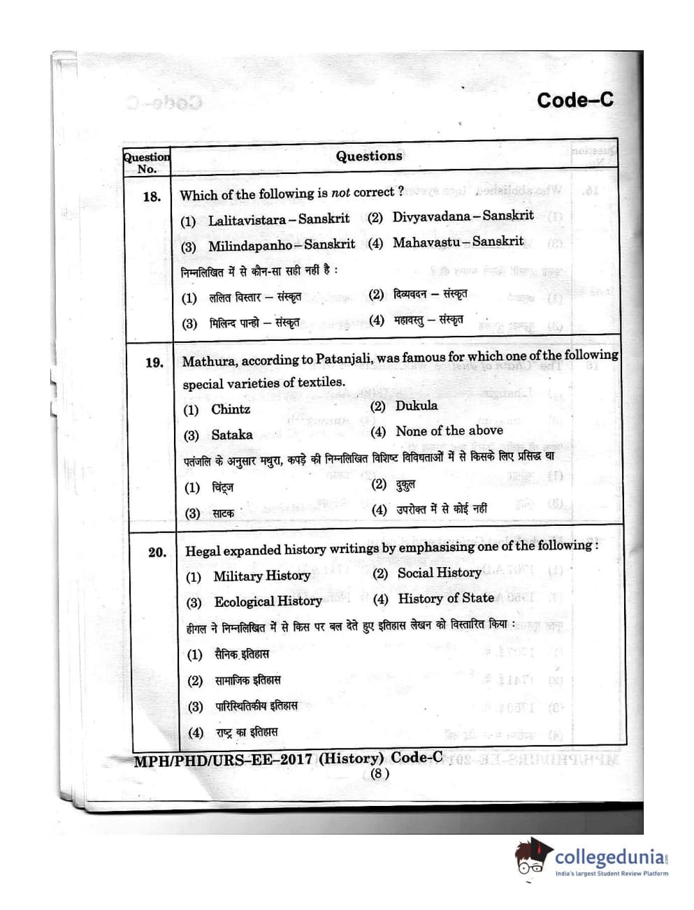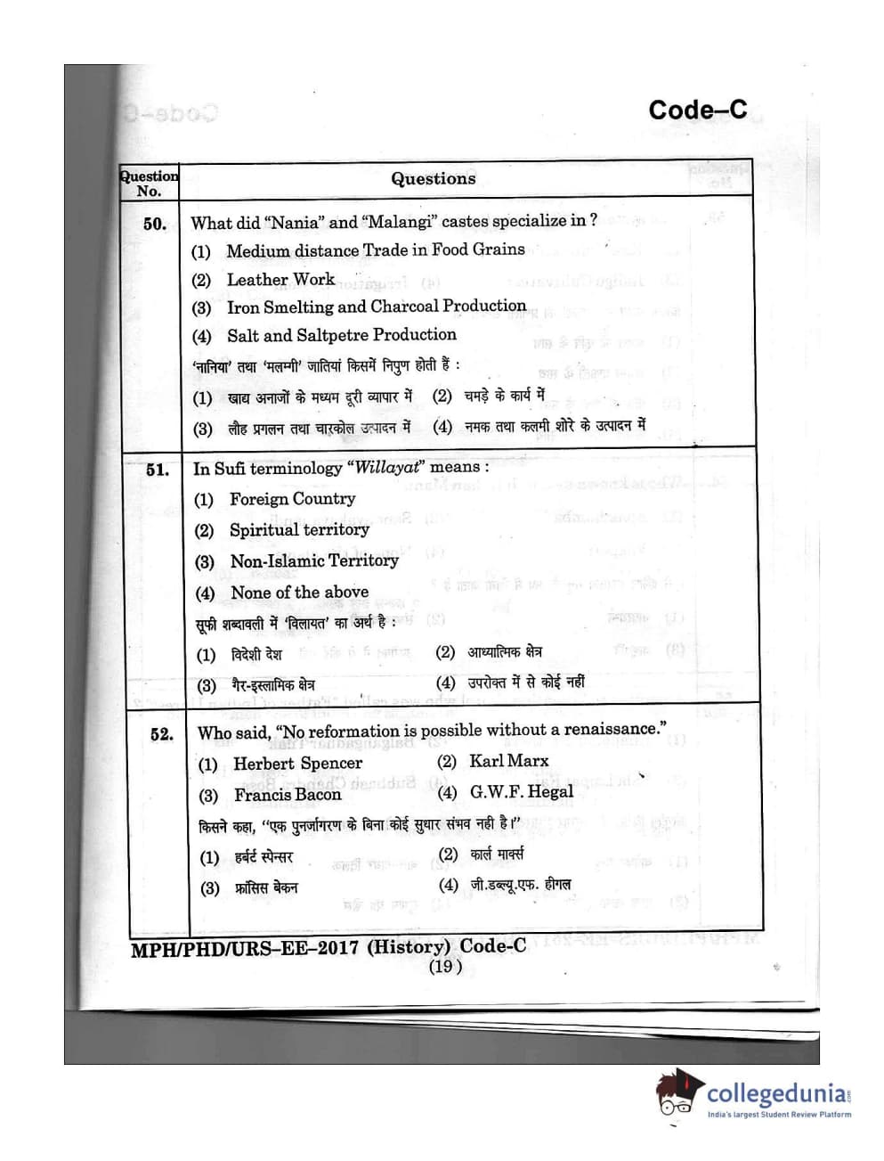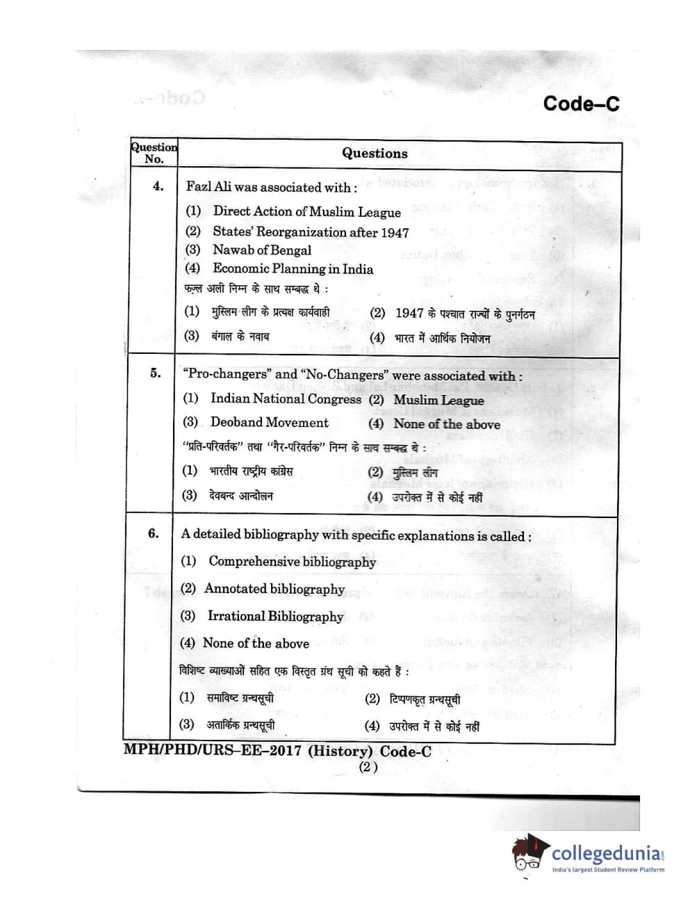 | MDUCEE 2016 Ph.D/URS/M.Phil (History) Set C Question Paper PDF | MDUCEE 2016 Ph.D/URS/M.Phil (History) Set C Answer Key PDF |