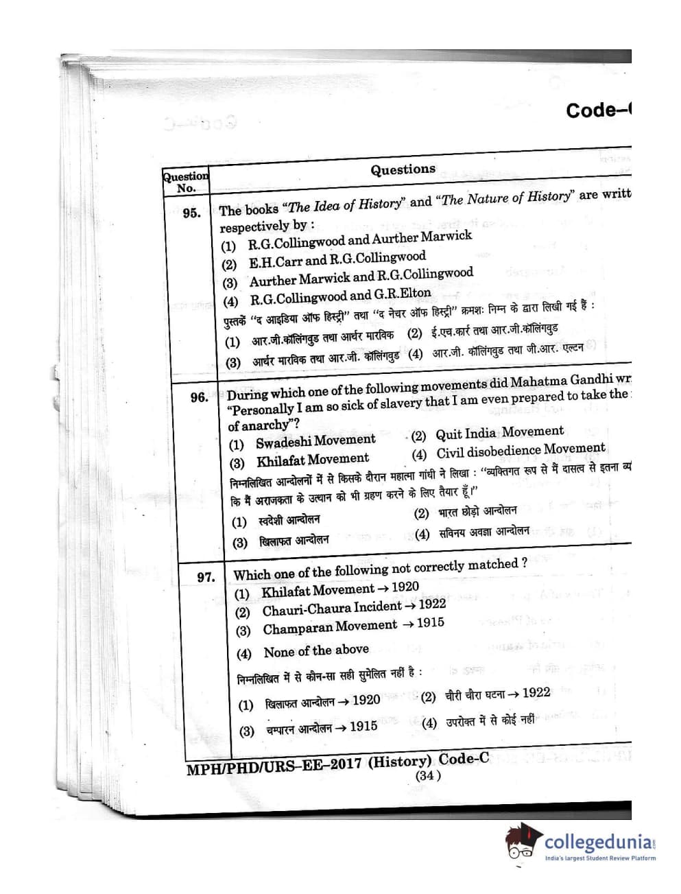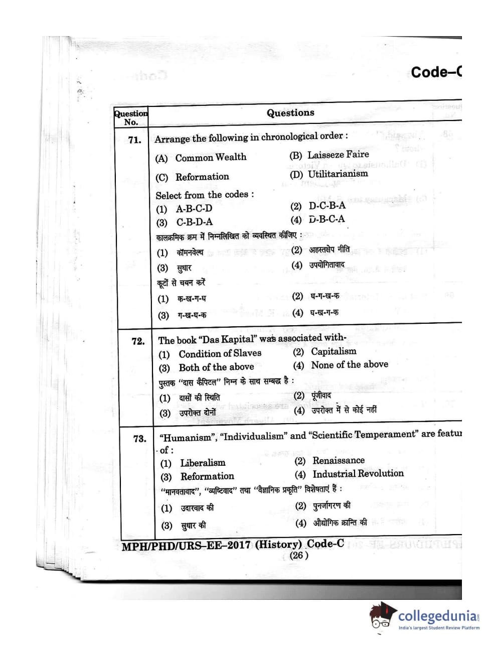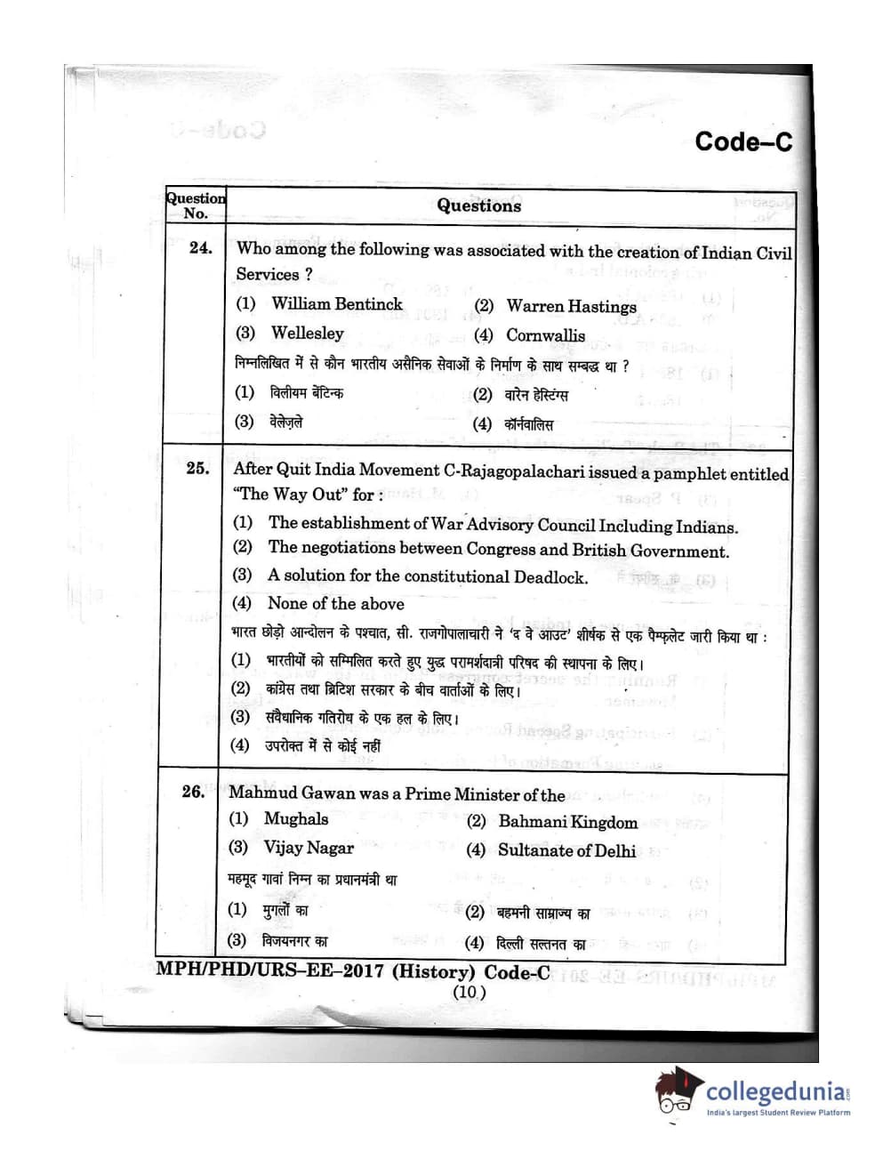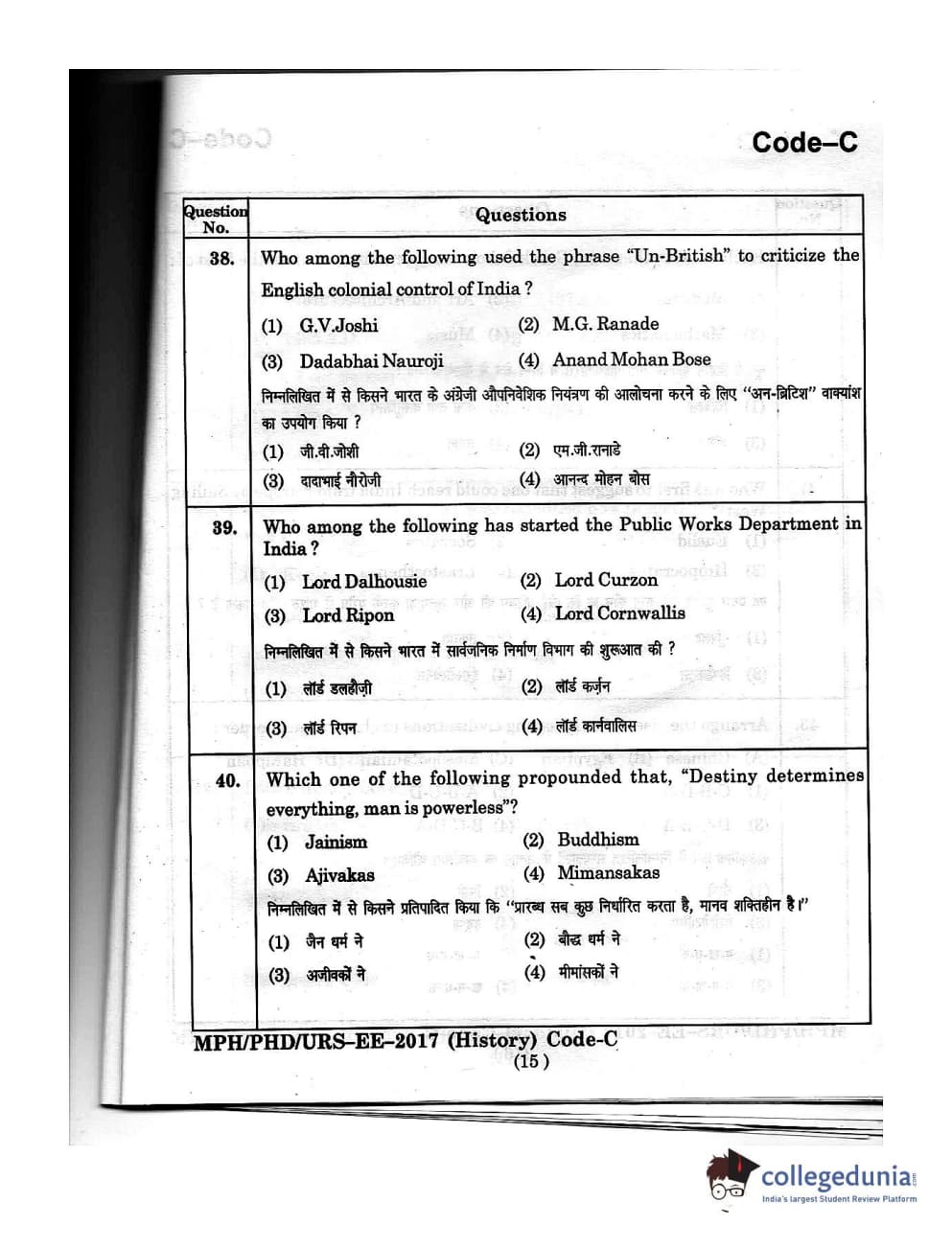 | MDUCEE 2016 Ph.D/URS/M.Phil (History) Set C Question Paper PDF | MDUCEE 2016 Ph.D/URS/M.Phil (History) Set C Answer Key PDF |