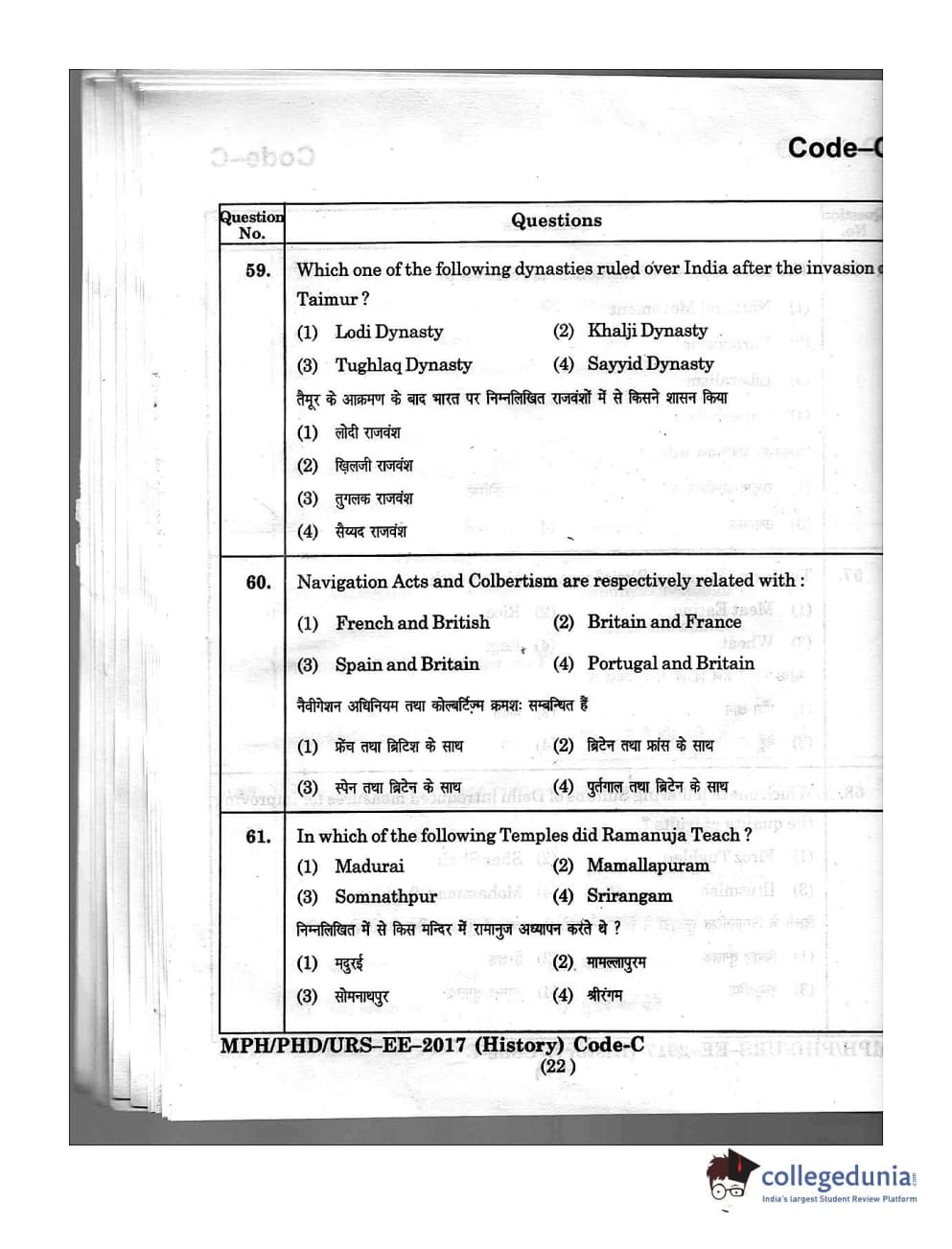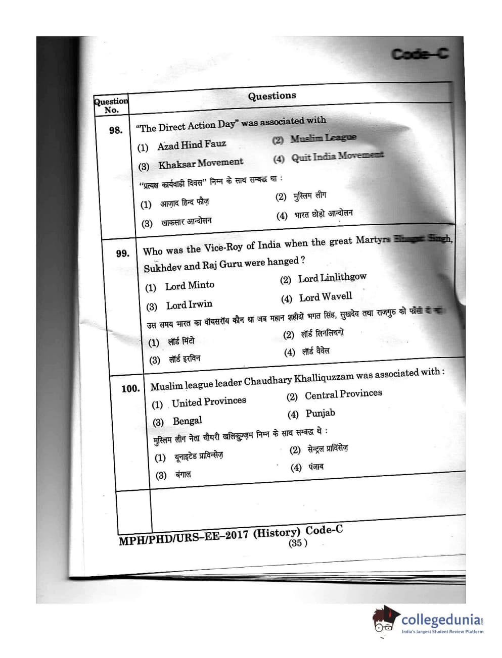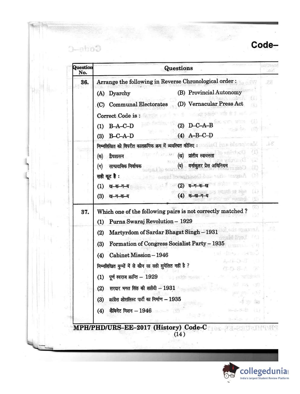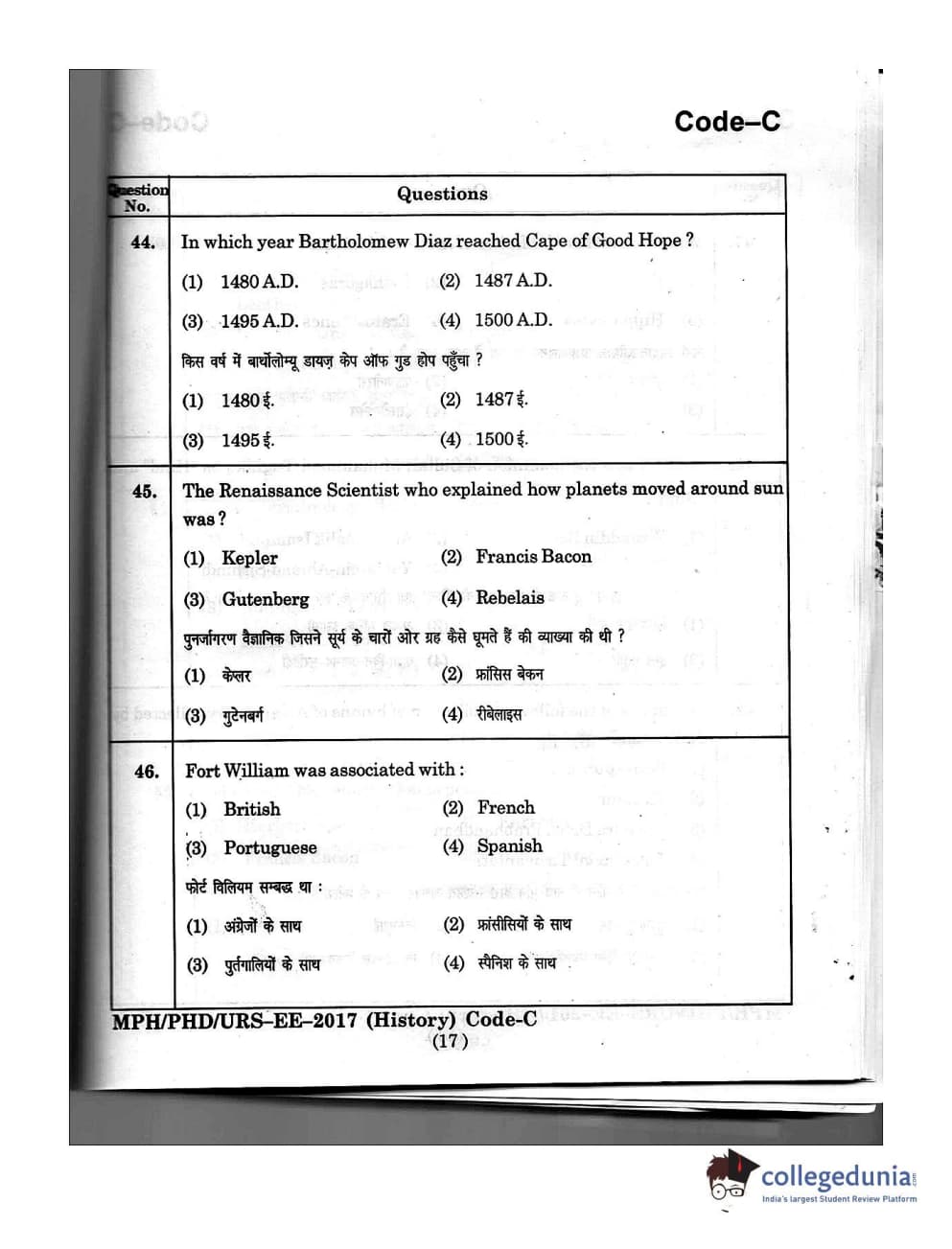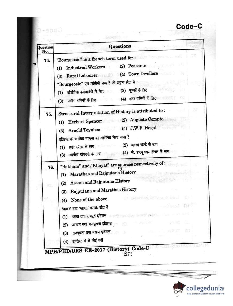 | MDUCEE 2016 Ph.D/URS/M.Phil (History) Set C Question Paper PDF | MDUCEE 2016 Ph.D/URS/M.Phil (History) Set C Answer Key PDF |