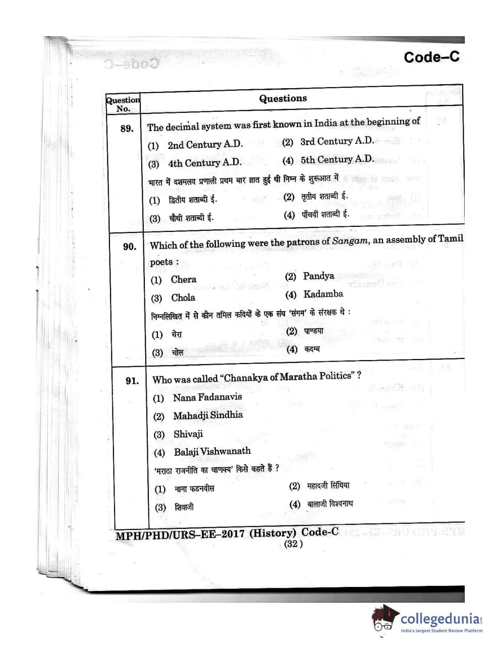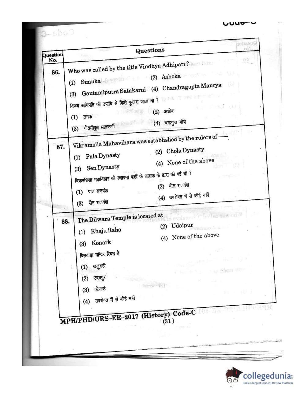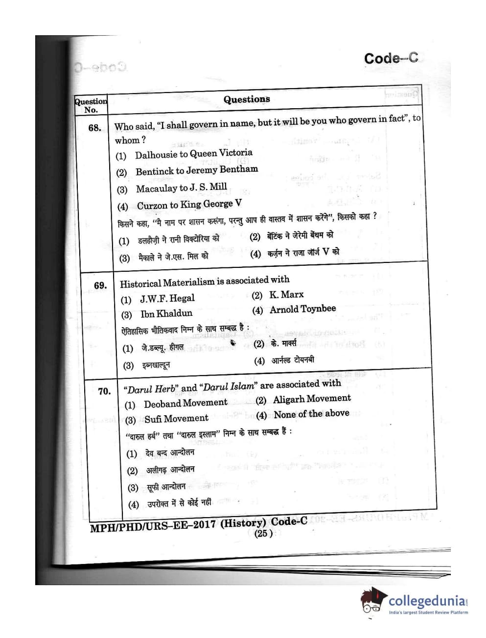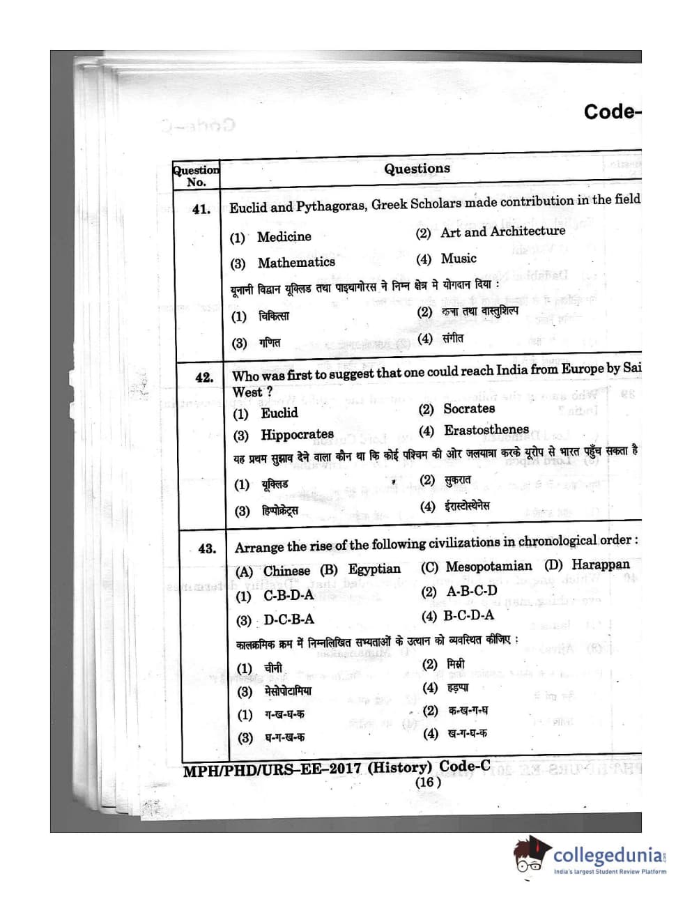 MDUCEE 2016 Ph.D/URS/M.Phil (History) Set C Question Paper with Answer Key PDFs