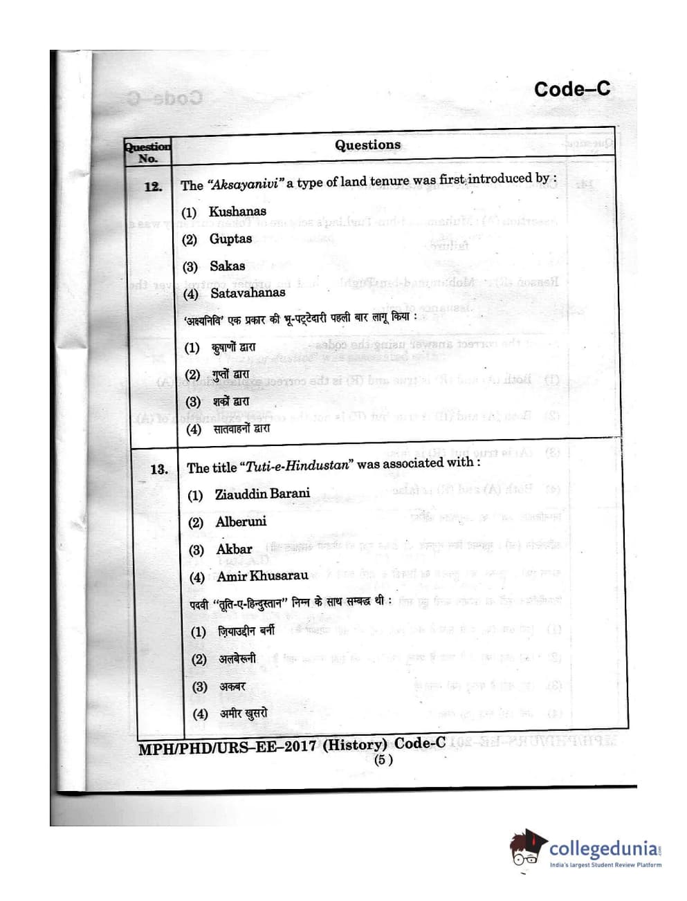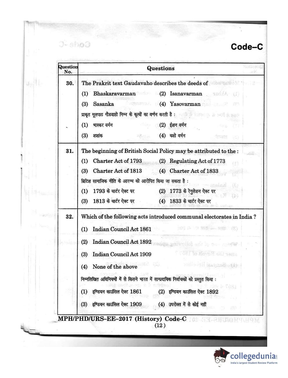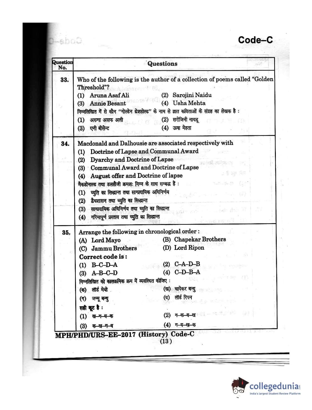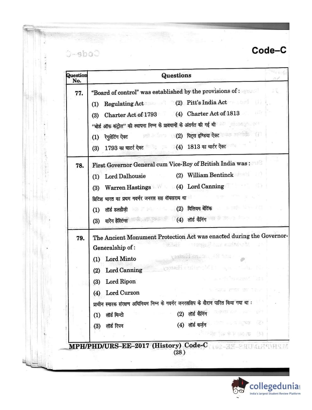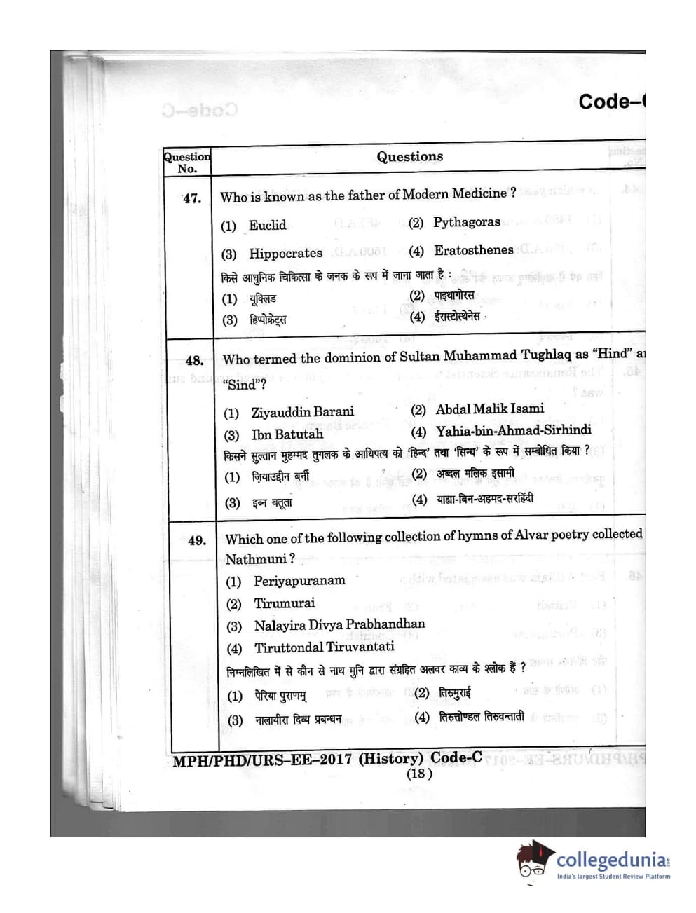 MDUCEE 2016 Ph.D/URS/M.Phil (History) Set C Question Paper with Answer Key PDFs