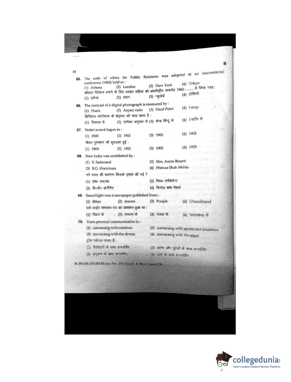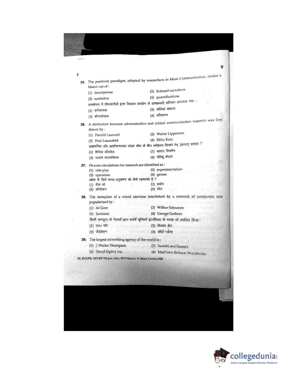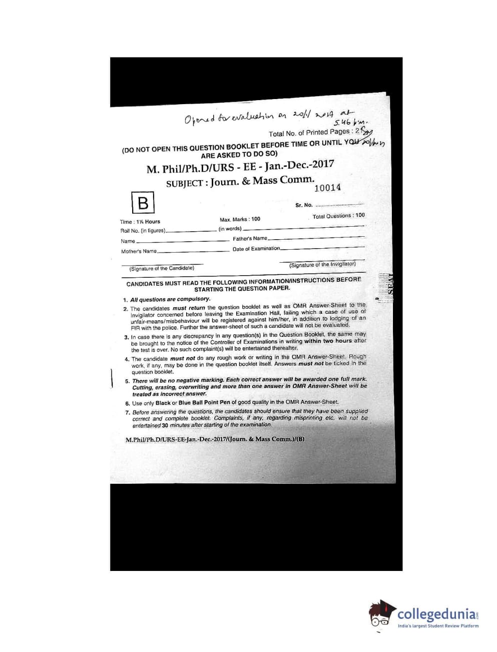 MDUCEE 2016 Ph.D/URS/M.Phil (Journalism and Mass Communication) Set B Question paper with answer key pdf is available for download. The exam was successfully organized by Maharishi Dayanand University. The question paper comprised a total of 100 questions.