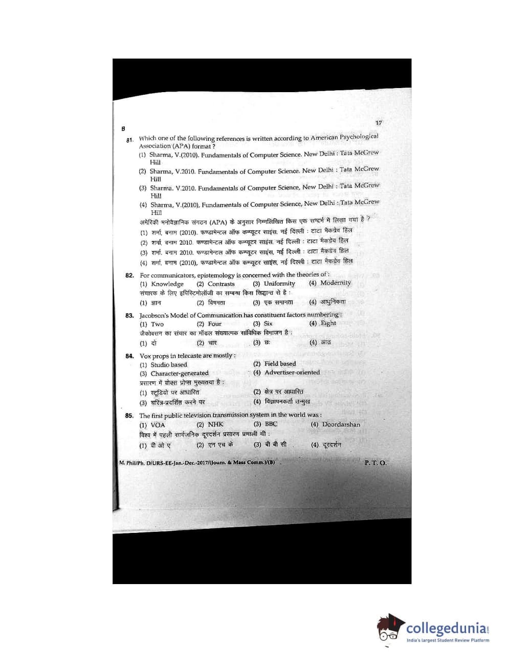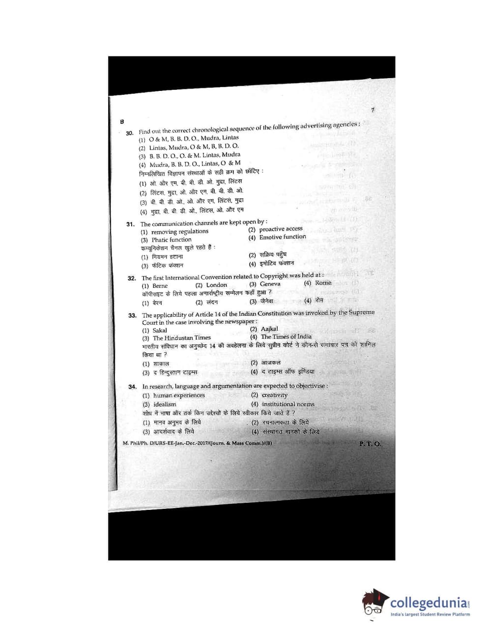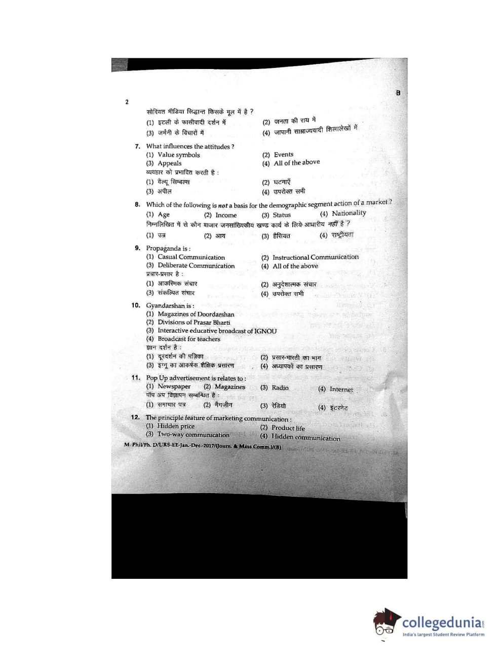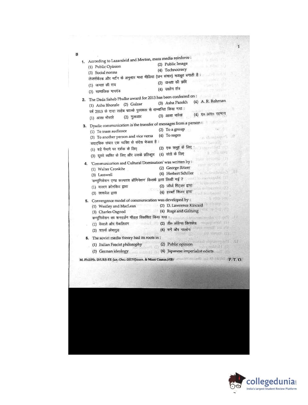 MDUCEE 2016 Ph.D/URS/M.Phil (Journalism and Mass Communication) Set B Question paper with answer key pdf is available for download. The exam was successfully organized by Maharishi Dayanand University. The question paper comprised a total of 100 questions.