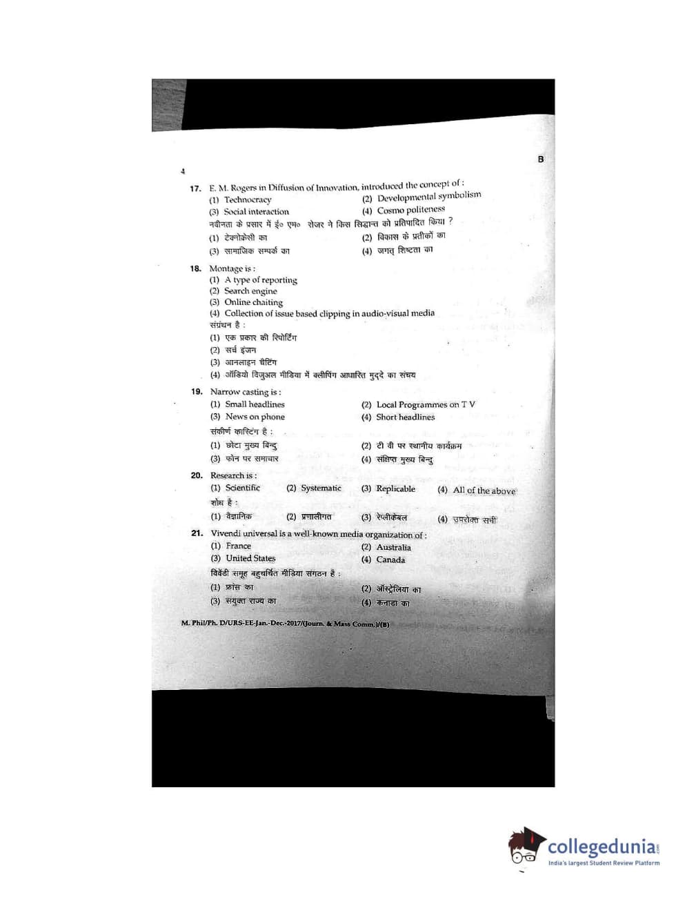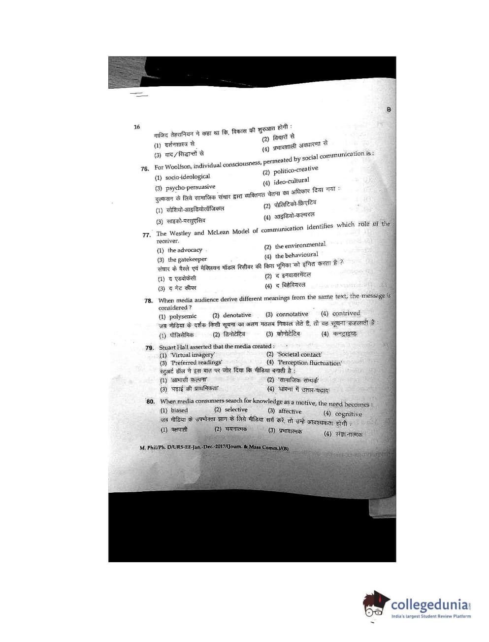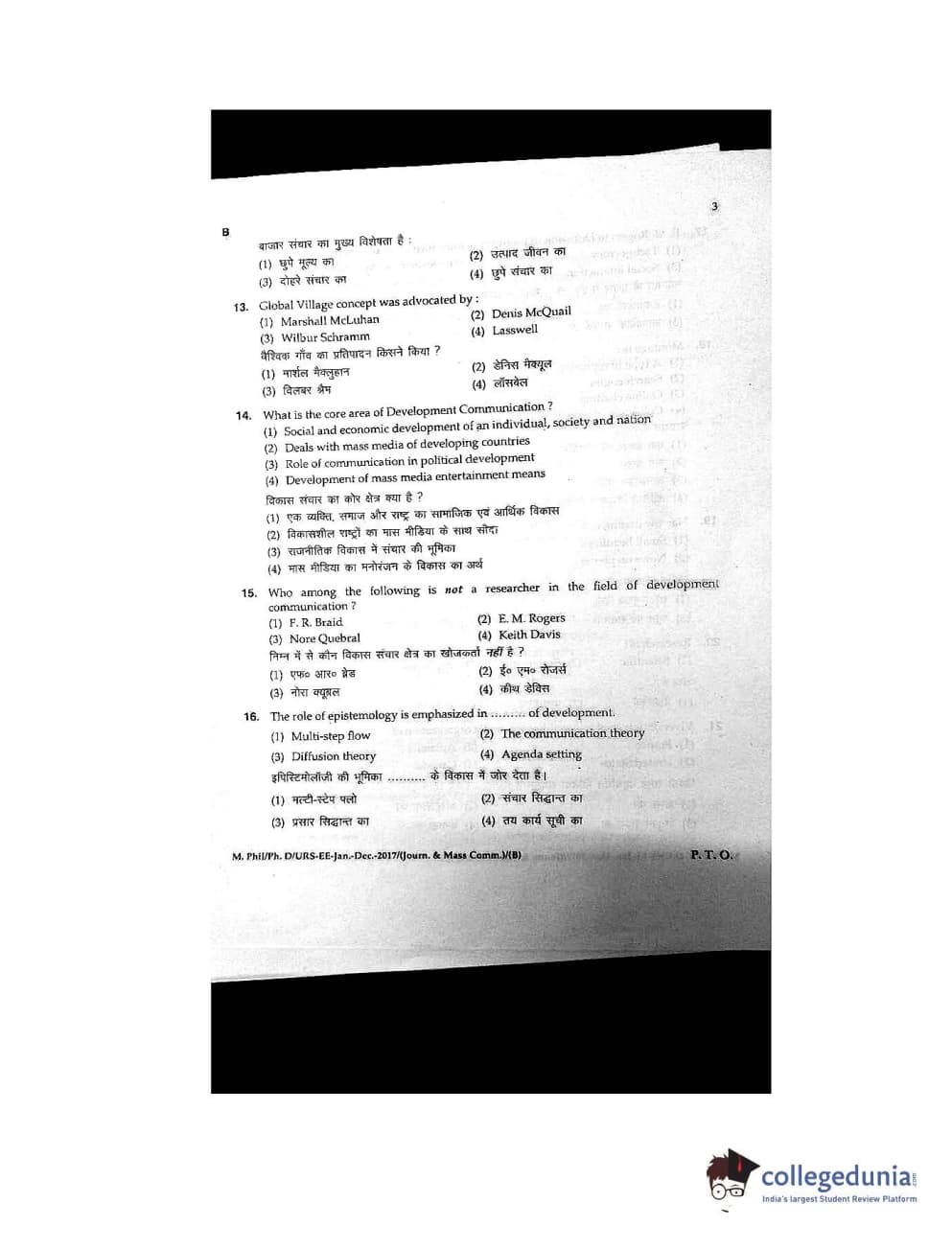 MDUCEE 2016 Ph.D/URS/M.Phil (Journalism and Mass Communication) Set B Question Paper with Answer Key PDFs