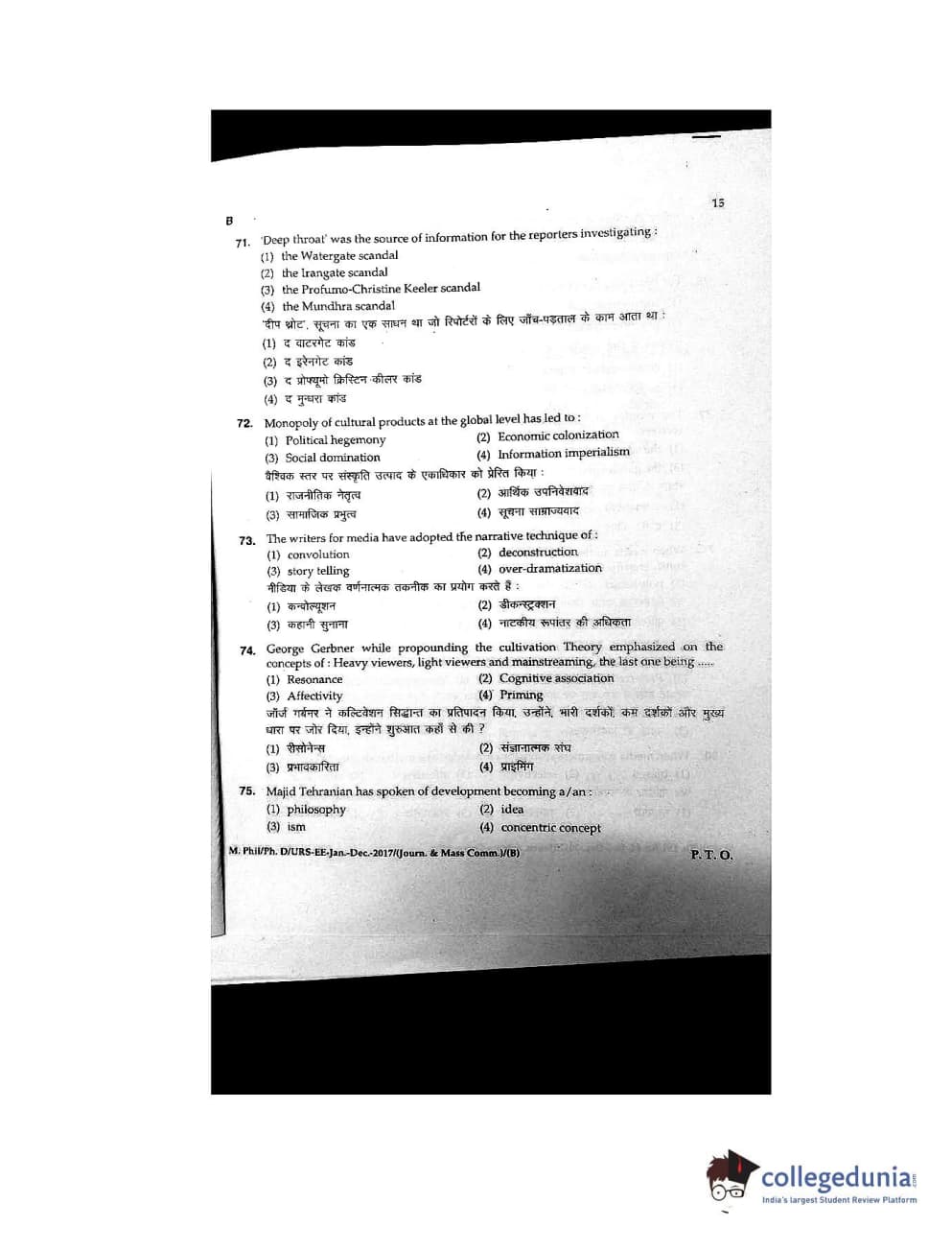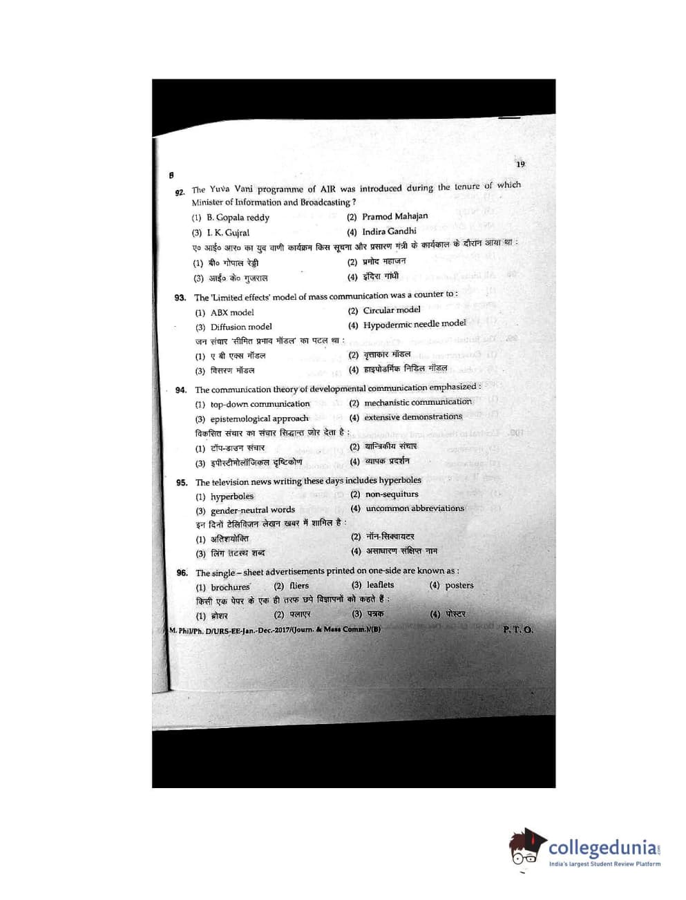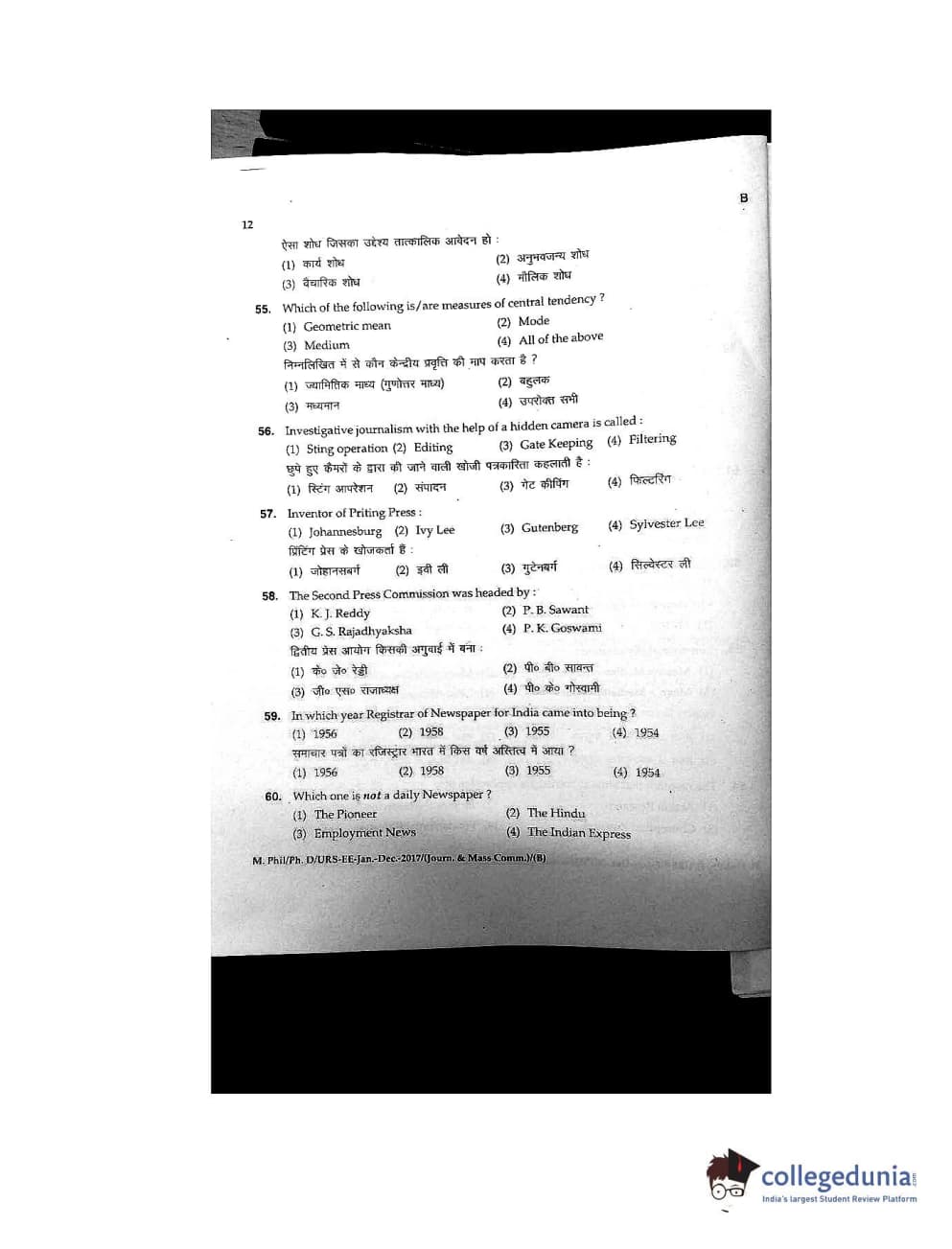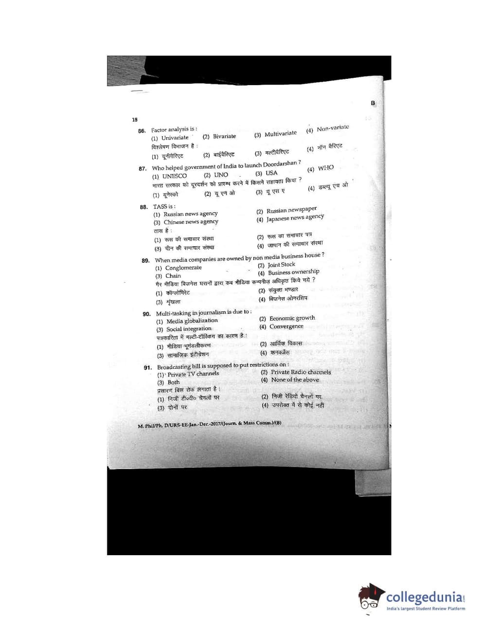 MDUCEE 2016 Ph.D/URS/M.Phil (Journalism and Mass Communication) Set B Question Paper with Answer Key PDFs
