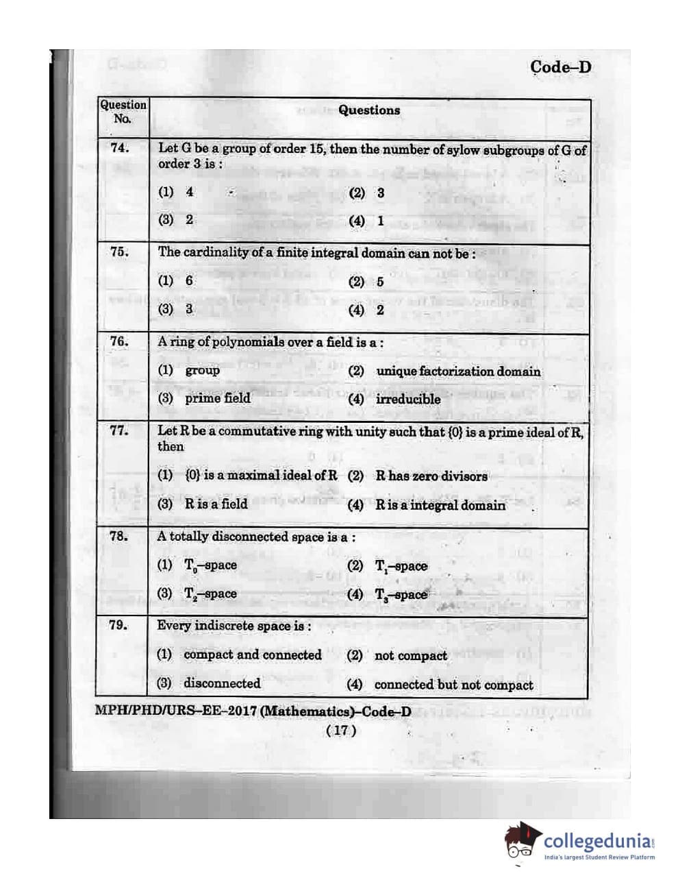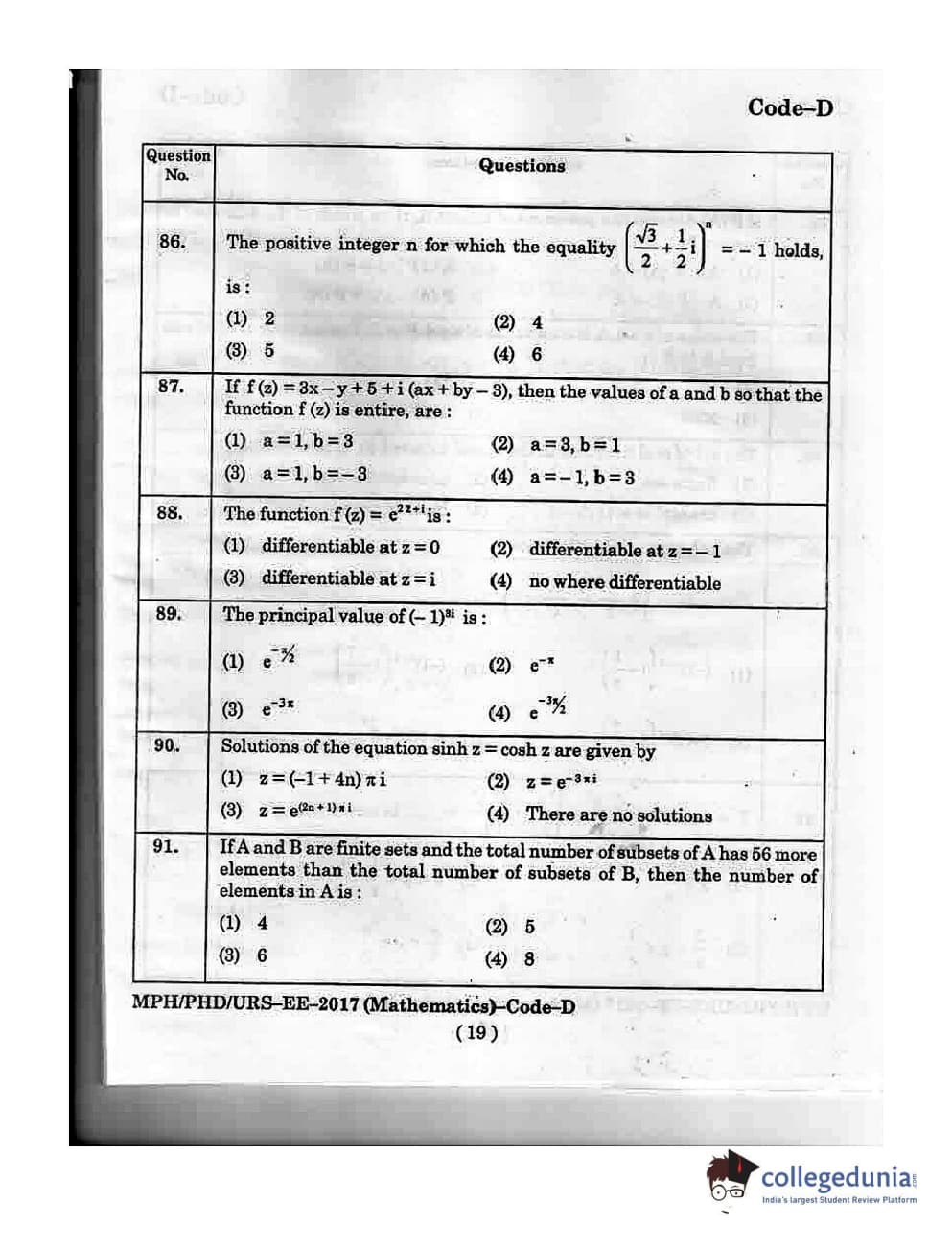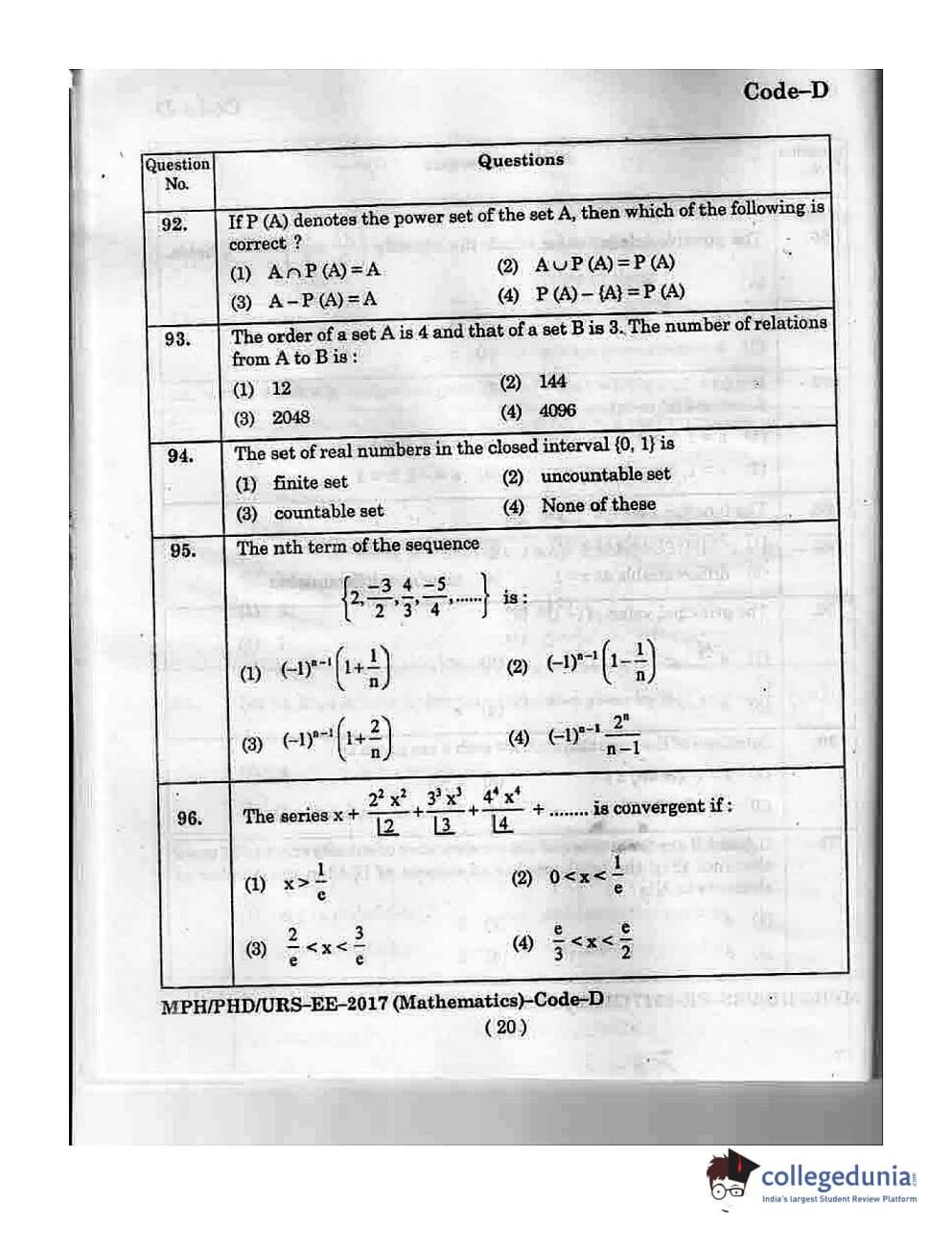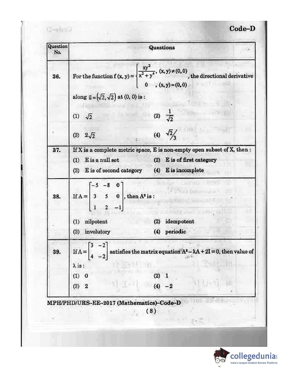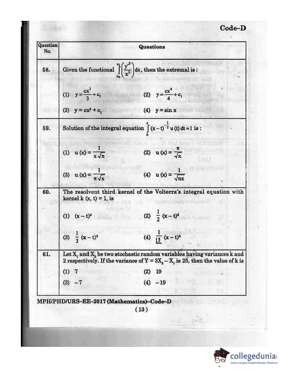 MDUCEE 2016 Ph.D/URS/M.Phil (Mathematics) Set D Question Paper with Answer Key PDFs