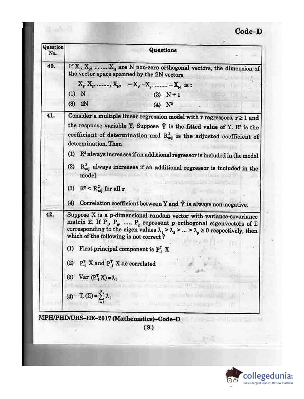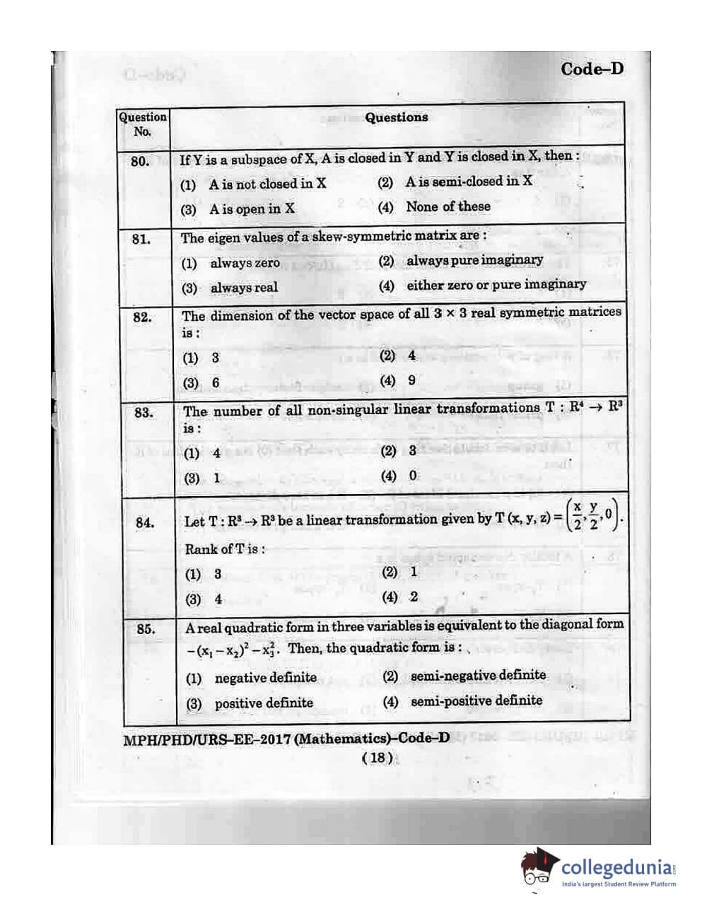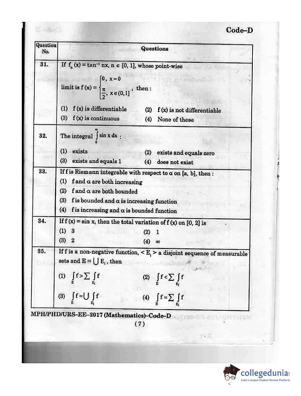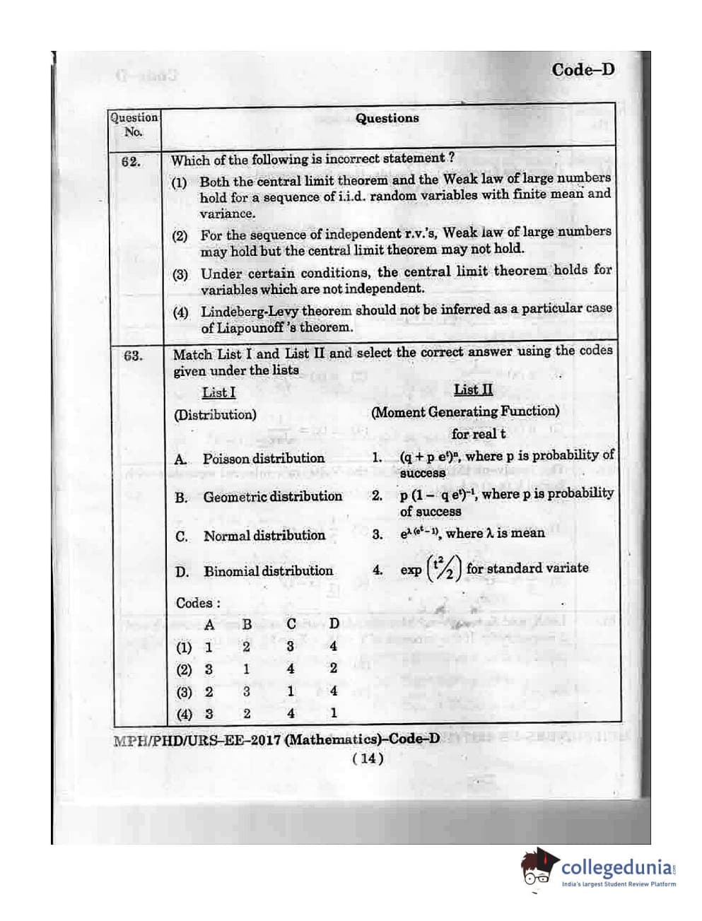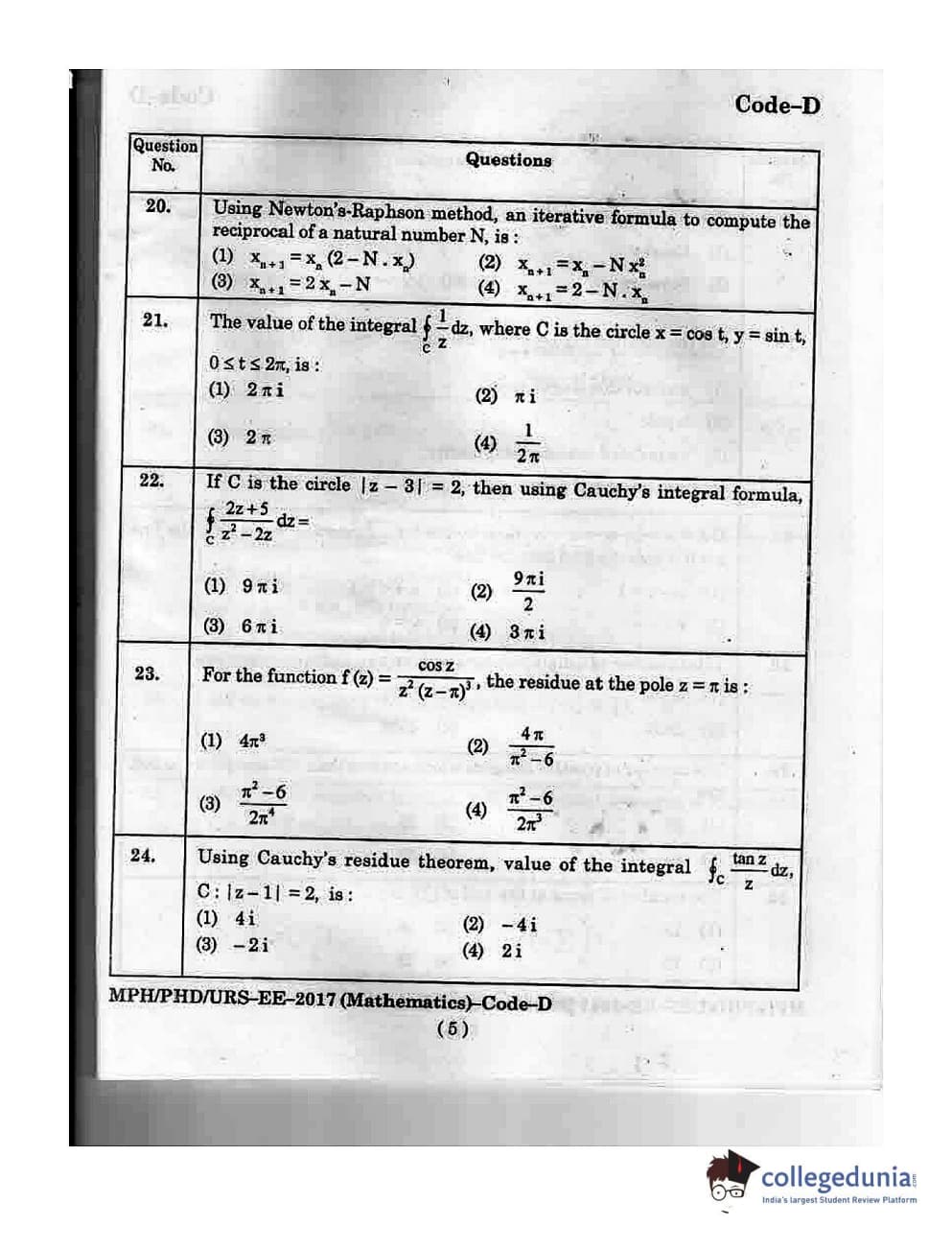 MDUCEE 2016 Ph.D/URS/M.Phil (Mathematics) Set D Question Paper with Answer Key PDFs